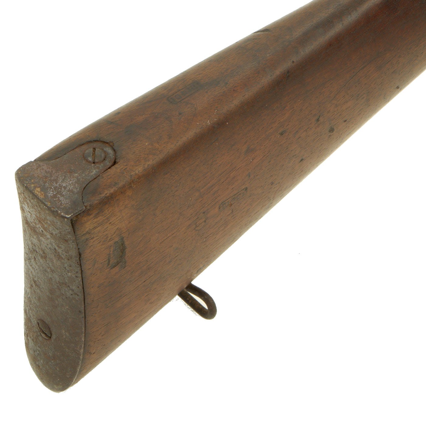 Offered in very good condition, this was a rifle serving at the time of Britain's legendary Martini-Henry Single Shot Rifle, also introduced in 1871 and not replaced with a magazine rifle until 1888. Wood stock is in very good condition, with some minor dents and scrapes, with a few stains, as well as some non structural cracking on the fore stock. There is definitely some staining near the receiver, from past oxidation of the metal components.