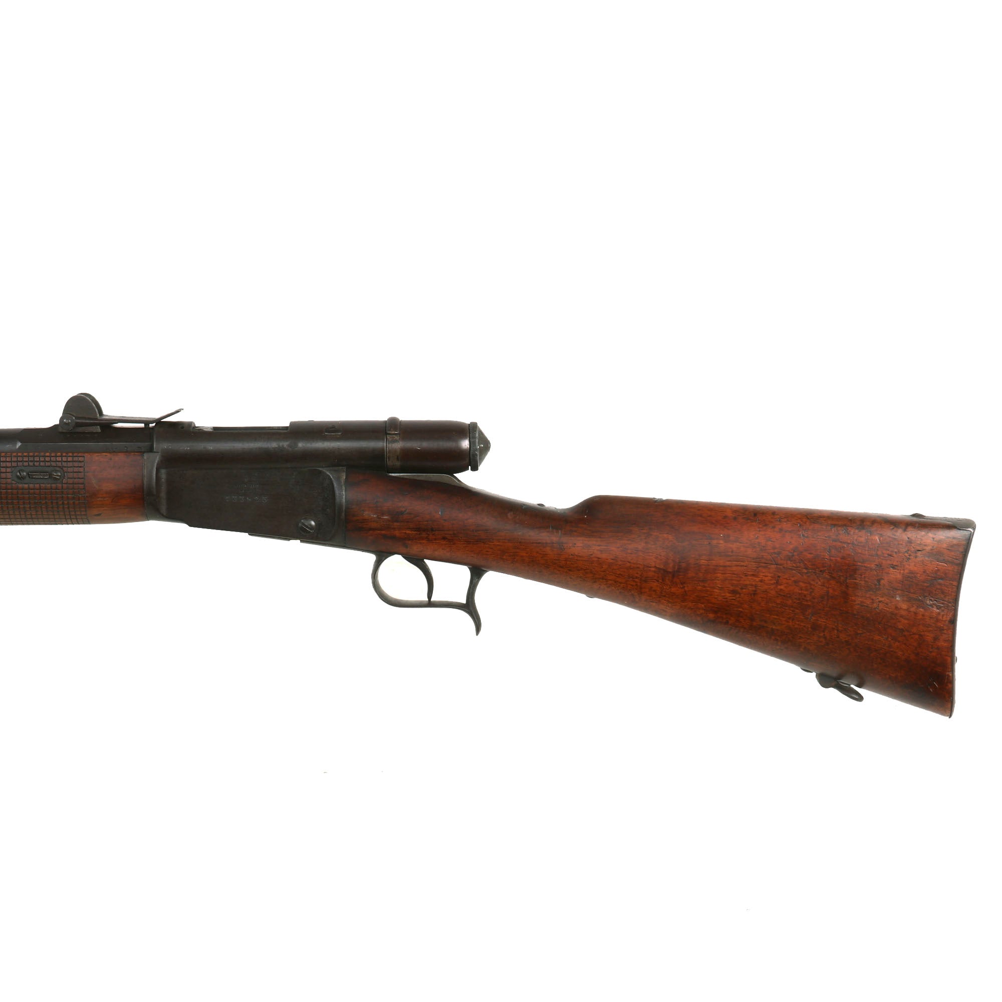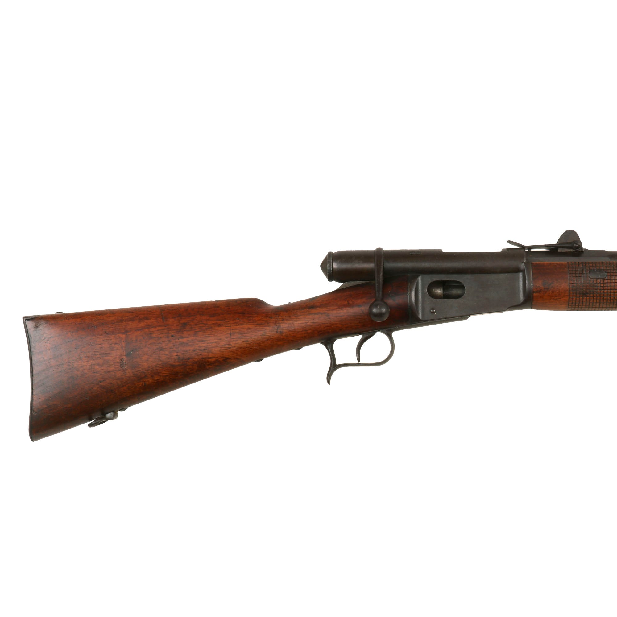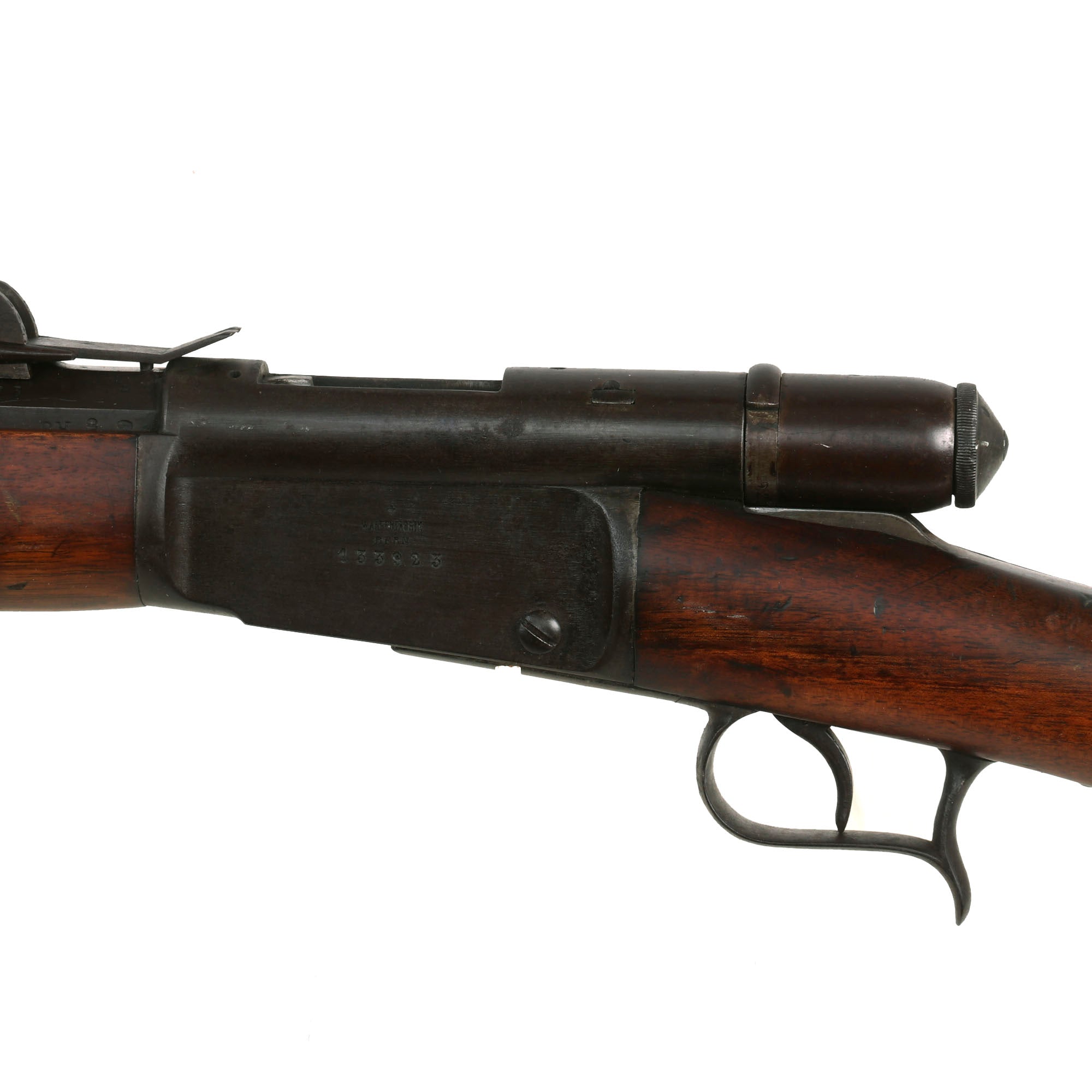 Original Item: Only One Available. Introduced in 1867, the Vetterli rifle system utilized the "Winchester" tube magazine system for cartridge storage under the barrel. The original 1867 model had an external hammer, like a Winchester, but in 1868 this was changed to an internal cocking bolt spring. The cleaning rod was moved to the side of the rifle, but this proved problematic, so the model of 1869 moved it back to the under barrel position. In 1871, the loading gate cover on the right side of the receiver and the magazine cutoff on the left side were deemed to be redundant, so a new model 1871 was introduced without them. It also featured strengthened barrel rings and a much thicker and sturdier rear sight leaf. Later models after this changed over to the box Magazine found on most rifles of the WWI era.
