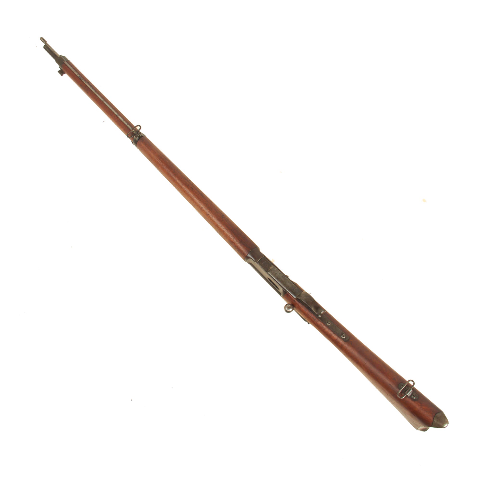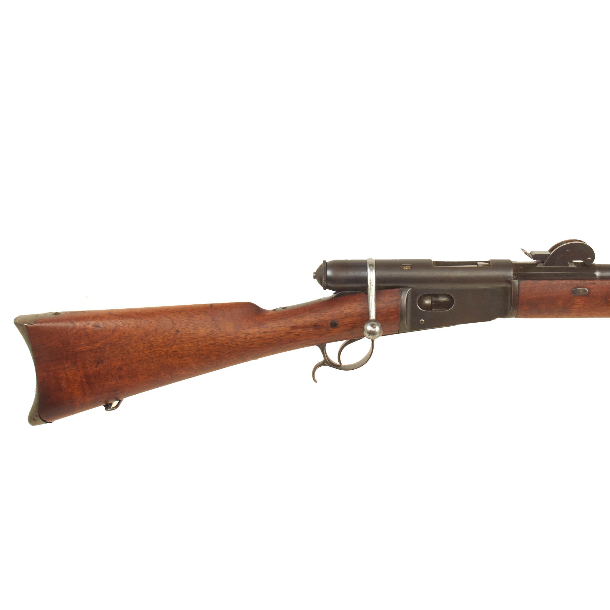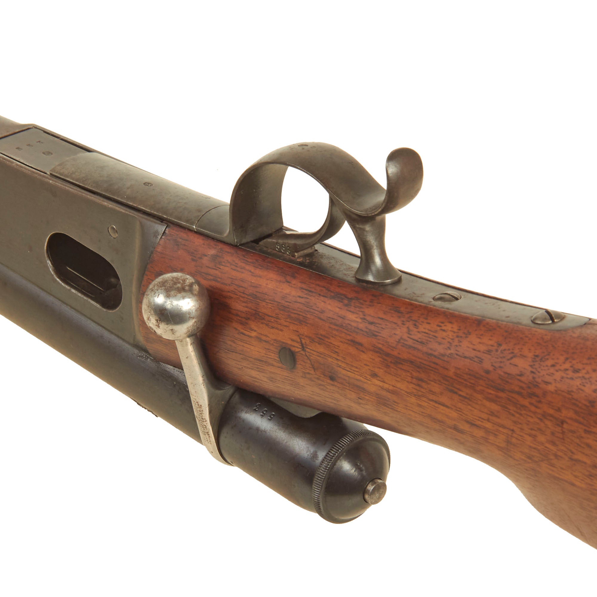 Original Item: Only One Available. Introduced in 1867, the Vetterli rifle system utilized the "Winchester" tube magazine system for cartridge storage under the barrel. The original 1867 model had an external hammer, like a Winchester, but in 1868 this was changed to an internal cocking bolt spring. The cleaning rod was moved to the side of the rifle, but this proved problematic, so the model of 1869 moved it back to the under barrel position. In 1871, the loading gate cover on the right side of the receiver and the magazine cutoff on the left side were deemed to be redundant, so a new model 1871 was introduced without them. It also featured strengthened barrel rings and a much thicker and sturdier rear sight leaf.