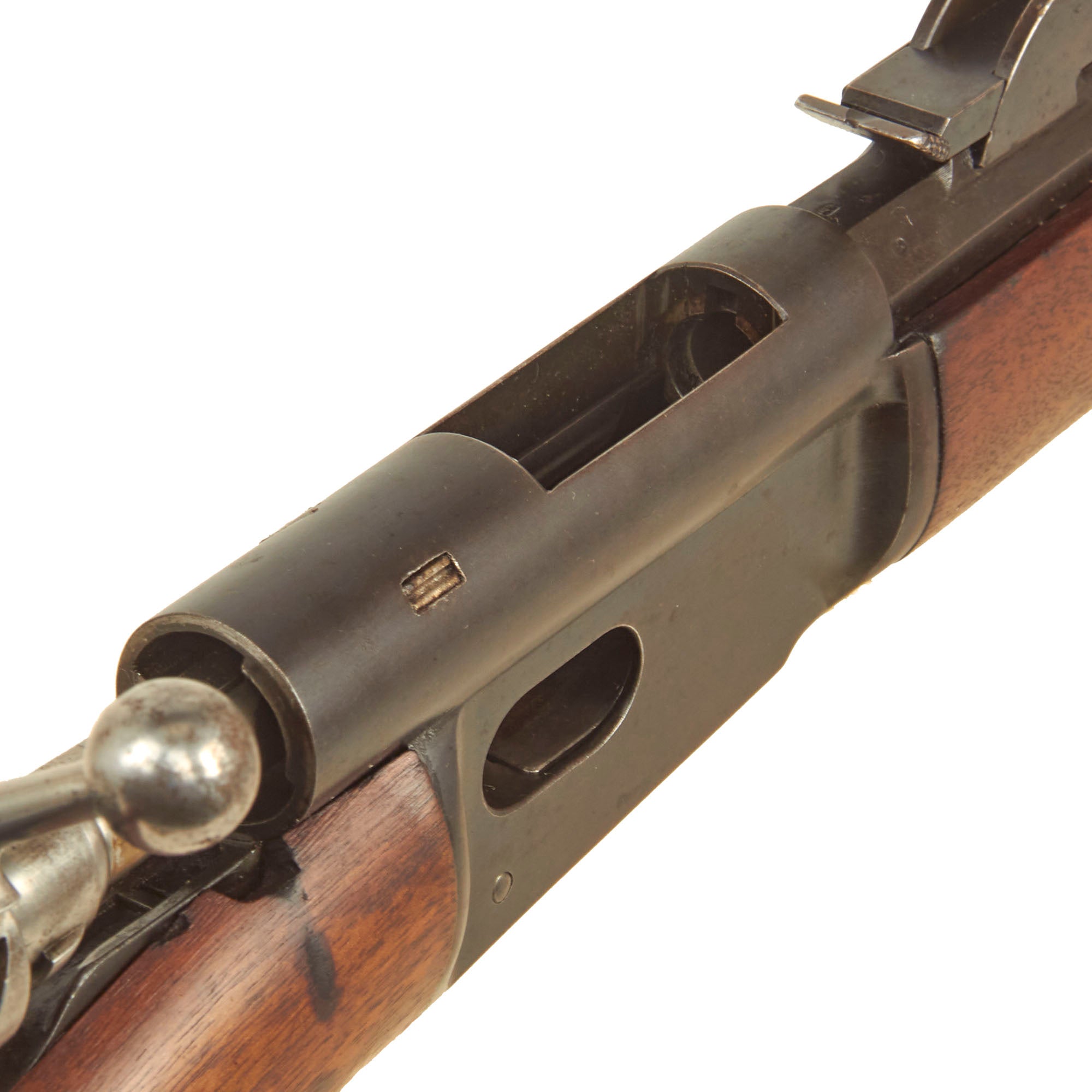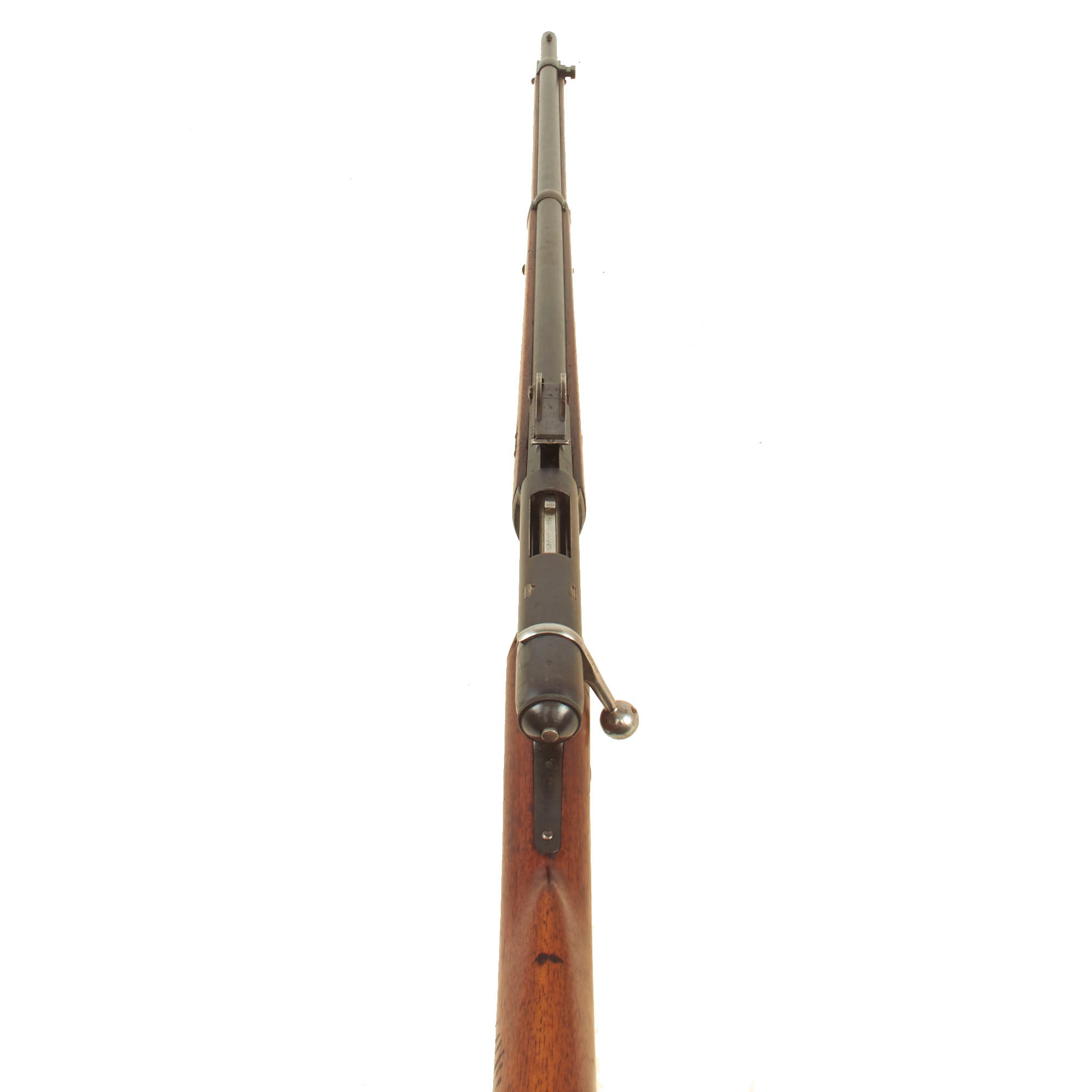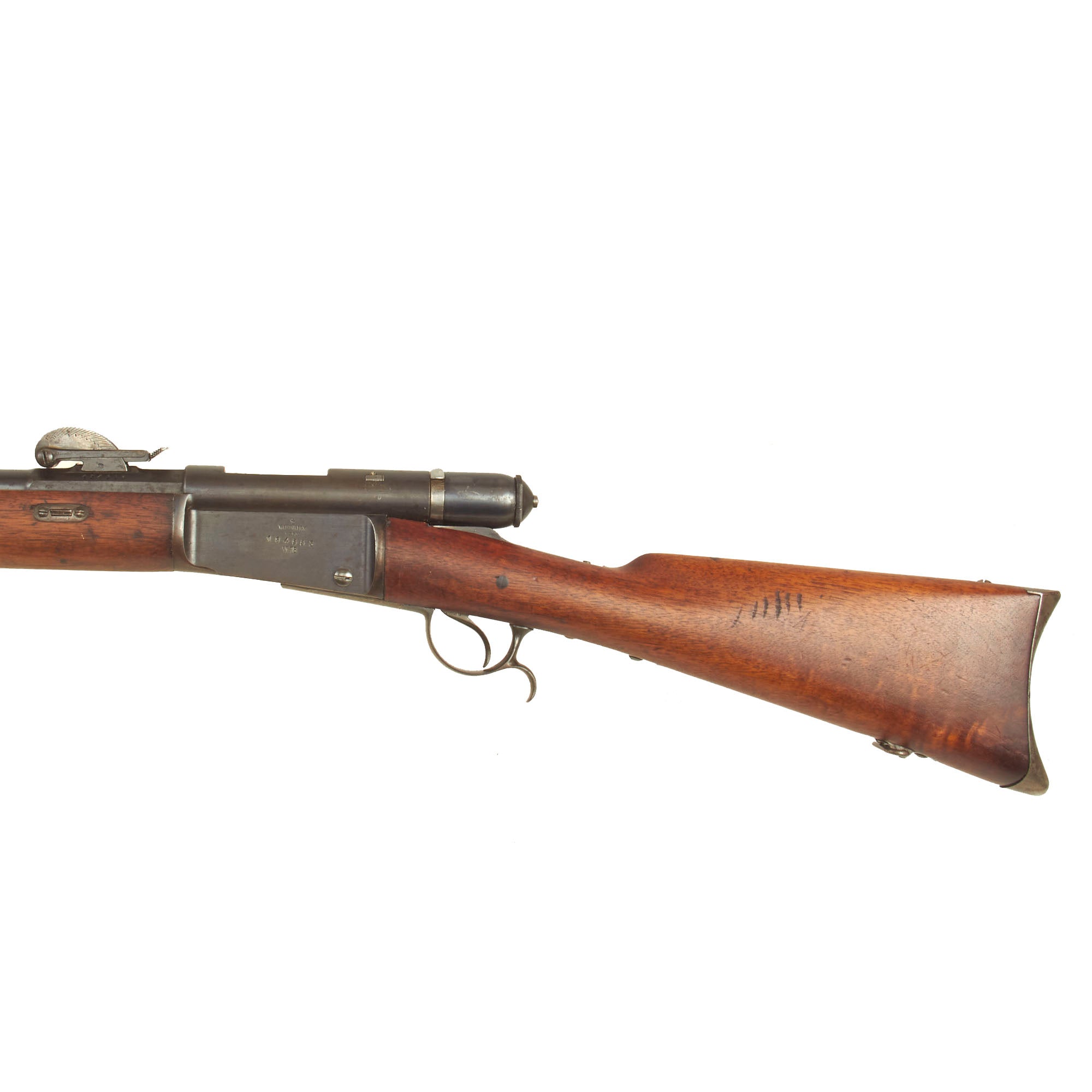 Original Item: Only One Available. Introduced in 1867, the Vetterli rifle system utilized the "Winchester" tube magazine system for cartridge storage under the barrel. The original 1867 model had an external hammer, like a Winchester, but in 1868 this was changed to an internal cocking bolt spring. The cleaning rod was moved to the side of the rifle, but this proved problematic, so the model of 1869 moved it back to the under barrel position. In 1871, the loading gate cover on the right side of the receiver and the magazine cutoff on the left side were deemed to be redundant, so a new model 1871 was introduced without them. It also featured strengthened barrel rings and a much thicker and sturdier rear sight leaf.