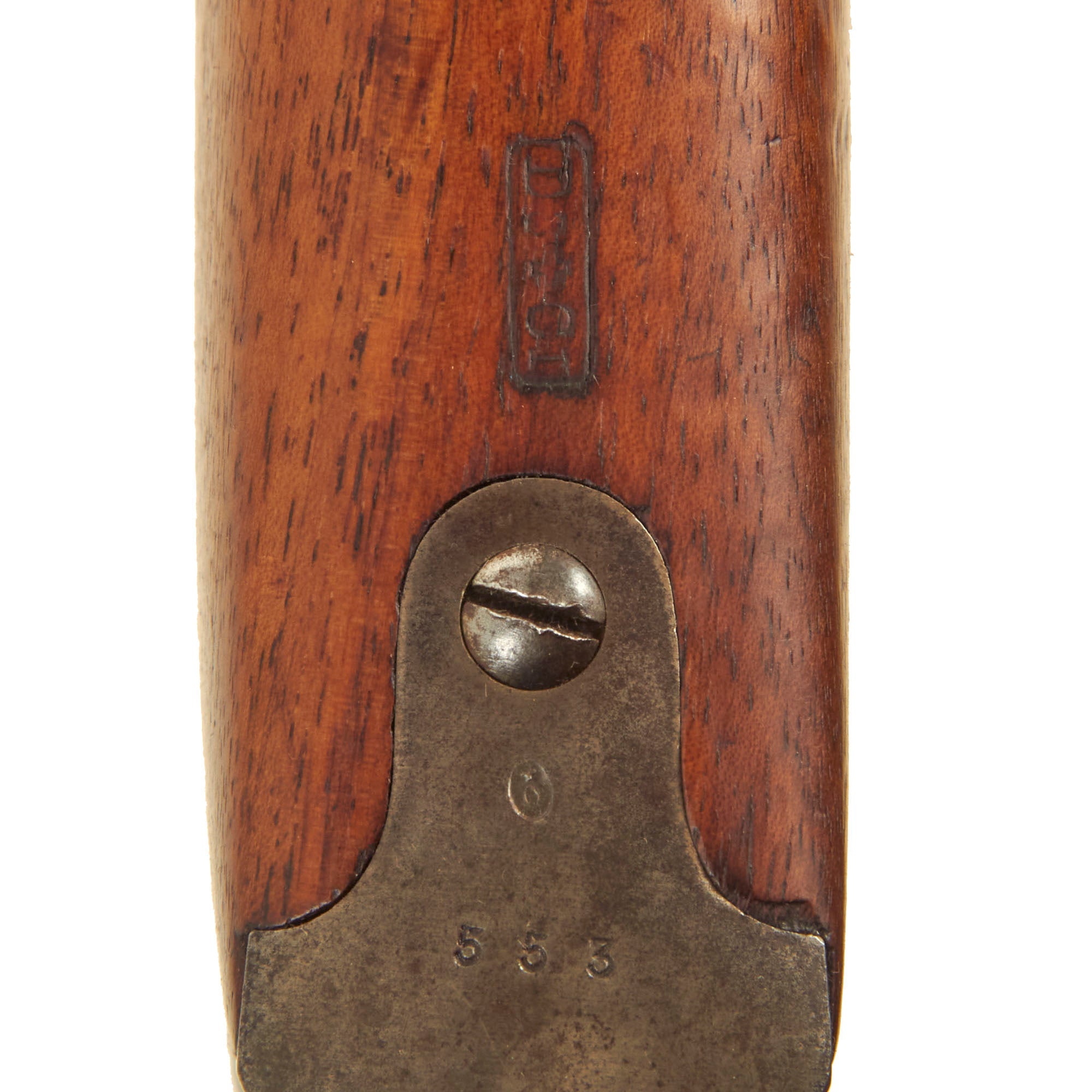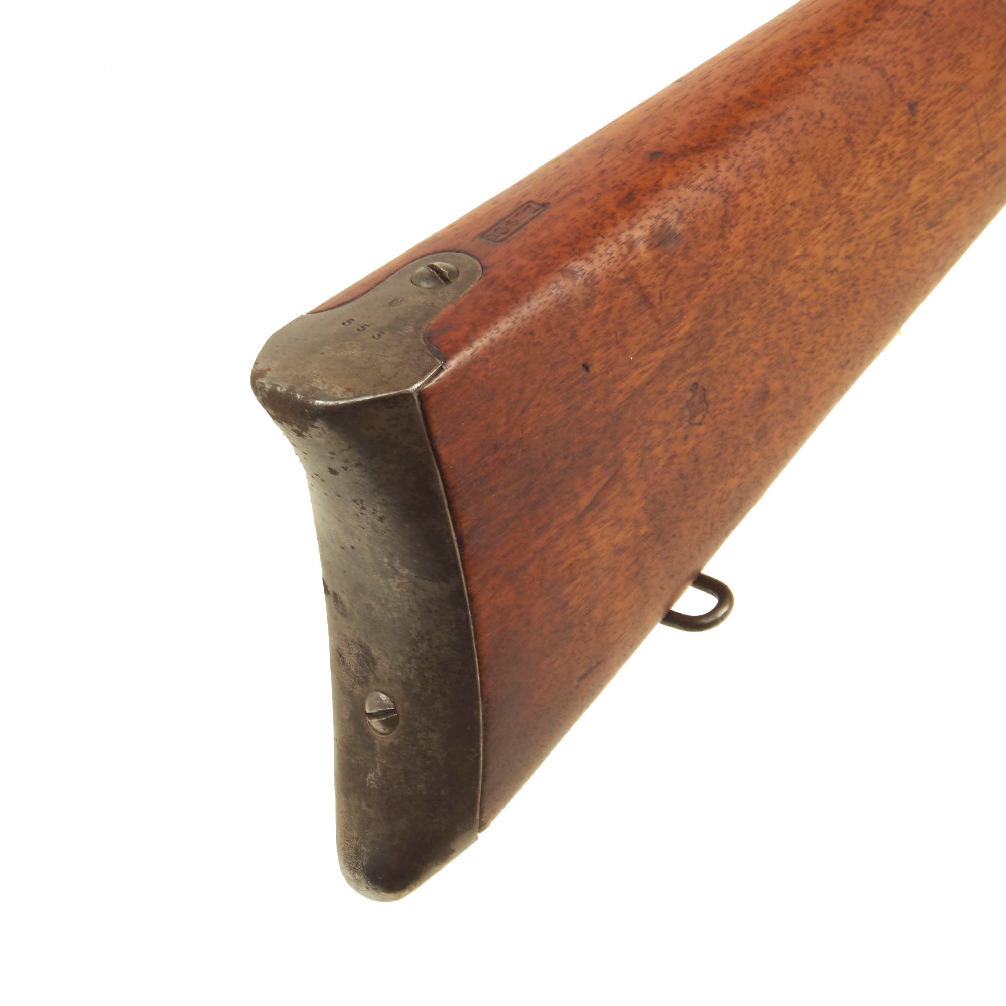 Offered in excellent condition, this was a rifle serving at the time of Britain's legendary Martini-Henry Single Shot Rifle, also introduced in 1871 and not replaced with a magazine rifle until 1888. The metalwork still has lots of the original blued finish, with some wear on the bottom of the receiver and on the rear sight. Wood stock is also in very good condition, with just a few dents and scrapes, and lovely color and grain on both the butt stock and fore stock. Nothing out of line with being a well cared for service rifle.