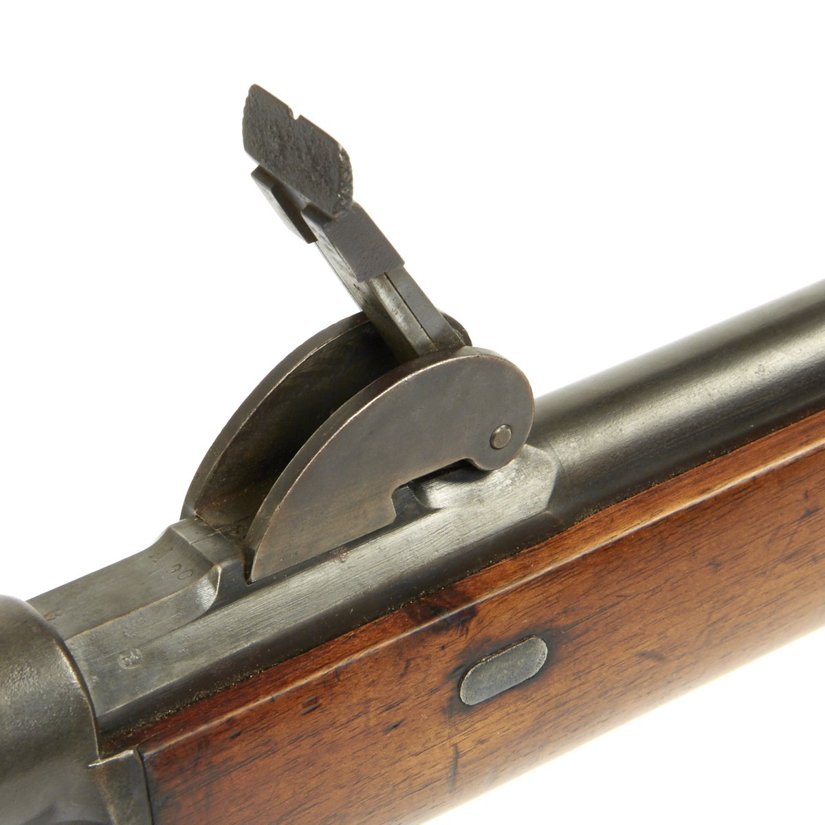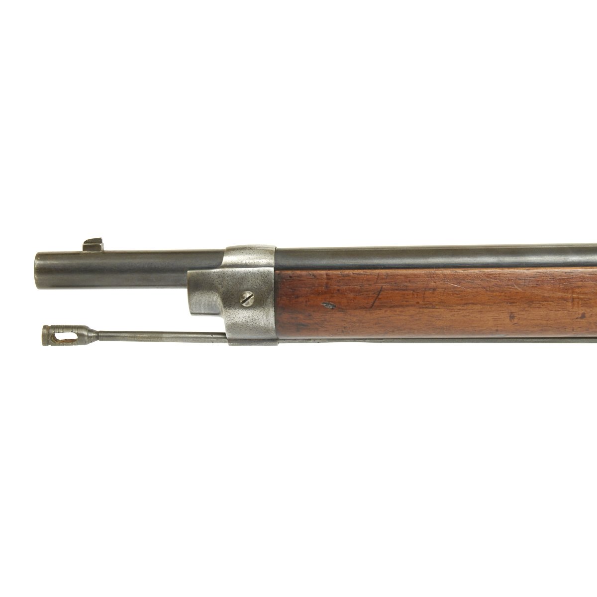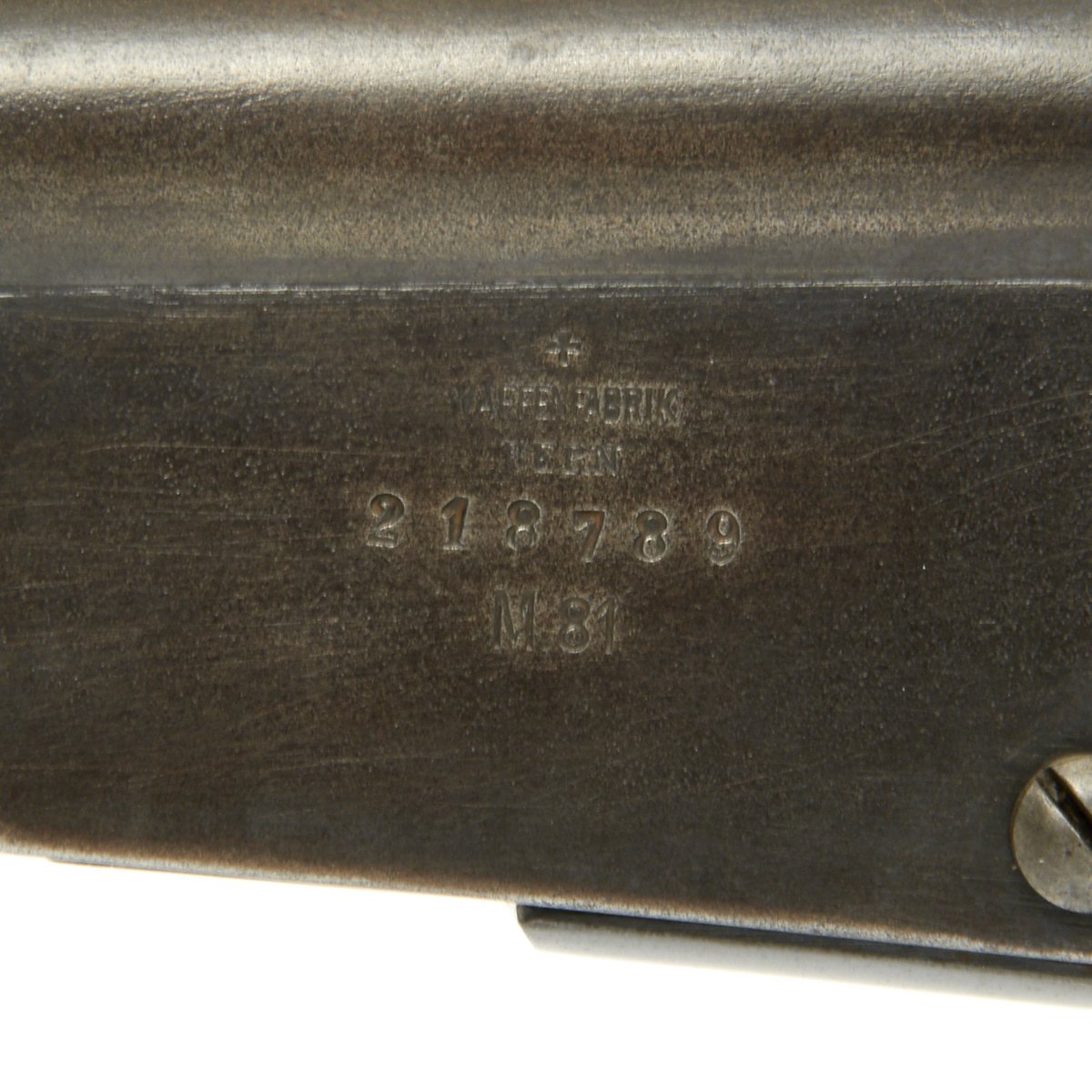Offered in very good condition, this was a rifle serving at the time of Britain's legendary Martini-Henry Single Shot Rifle, also introduced in 1871 and not replaced with a magazine rifle until 1888. Wood stock is in good condition, with the expected wear and dents of age. There are Swiss proof marks on various parts of the stock. Bore is very good with clear lands and grooves, and mostly finish, with just small spots of fouling. Cleaning rod is in great shape, with good threads and just a bit of corrosion.