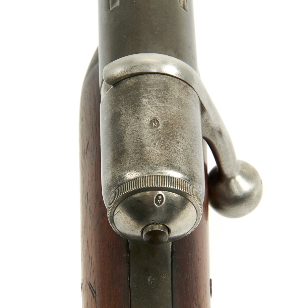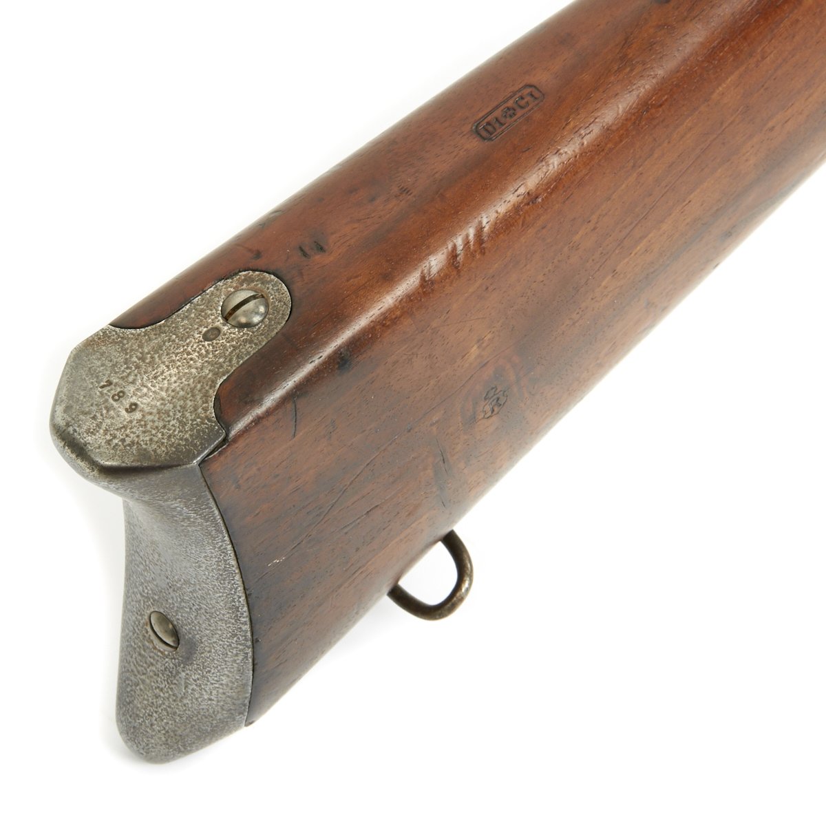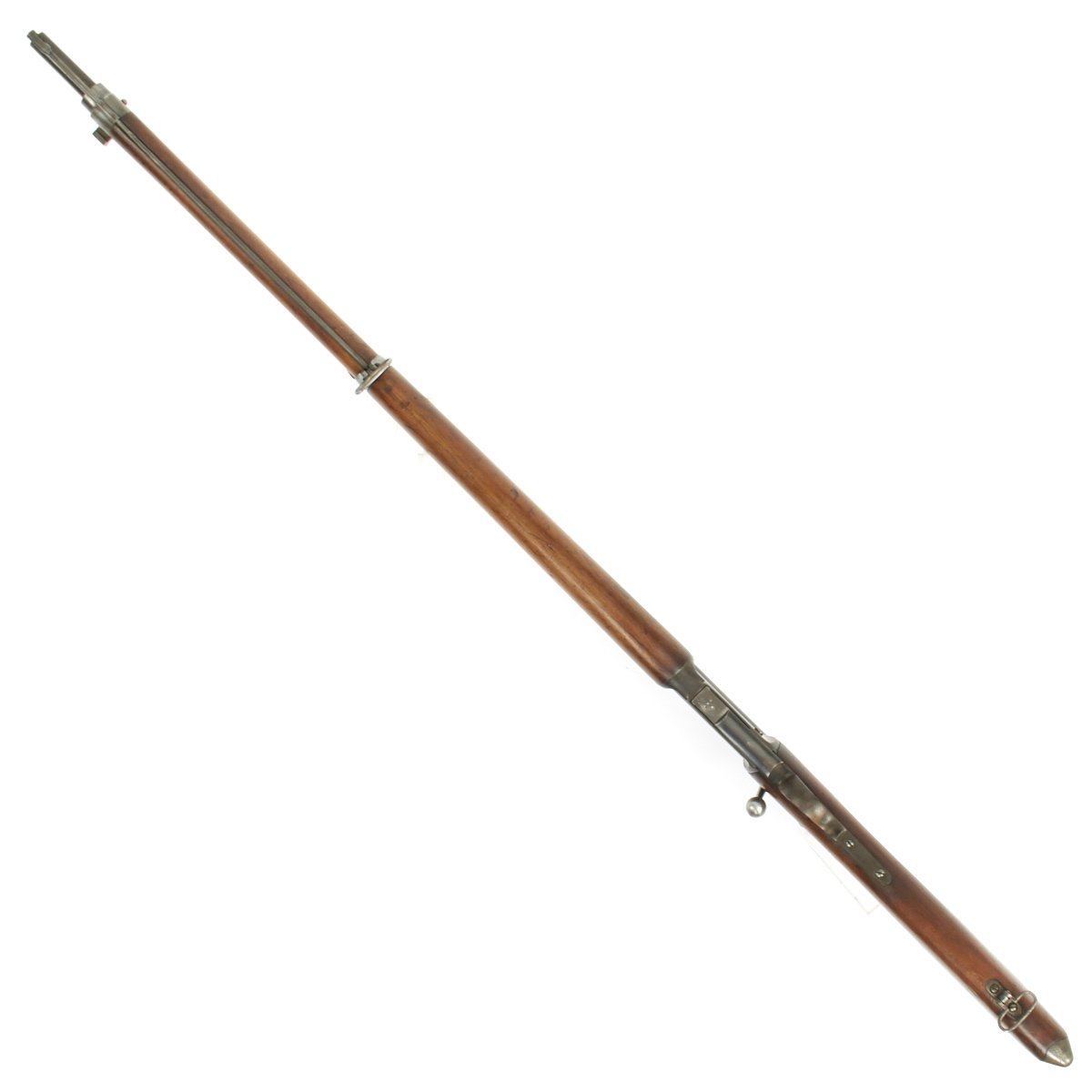 Offered in very good condition, this was a rifle serving at the time of Britain's legendary Martini-Henry Single Shot Rifle, also introduced in 1871 and not replaced with a magazine rifle until 1888. Wood stock is in good condition, with the expected wear and dents of age. There are Swiss proof marks on various parts of the stock. Bore is very good with clear lands and grooves, and mostly finish, with just small spots of fouling. Cleaning rod is in great shape, with good threads and just a bit of corrosion.