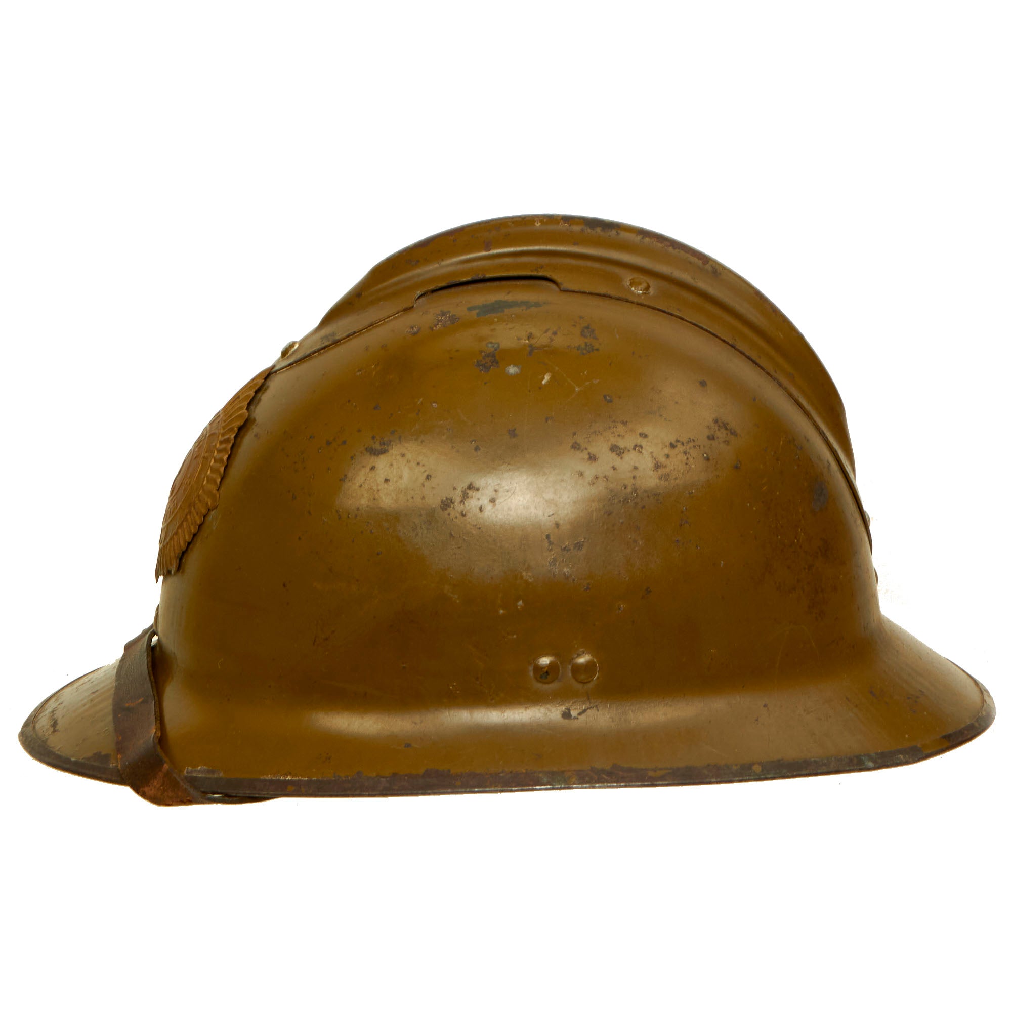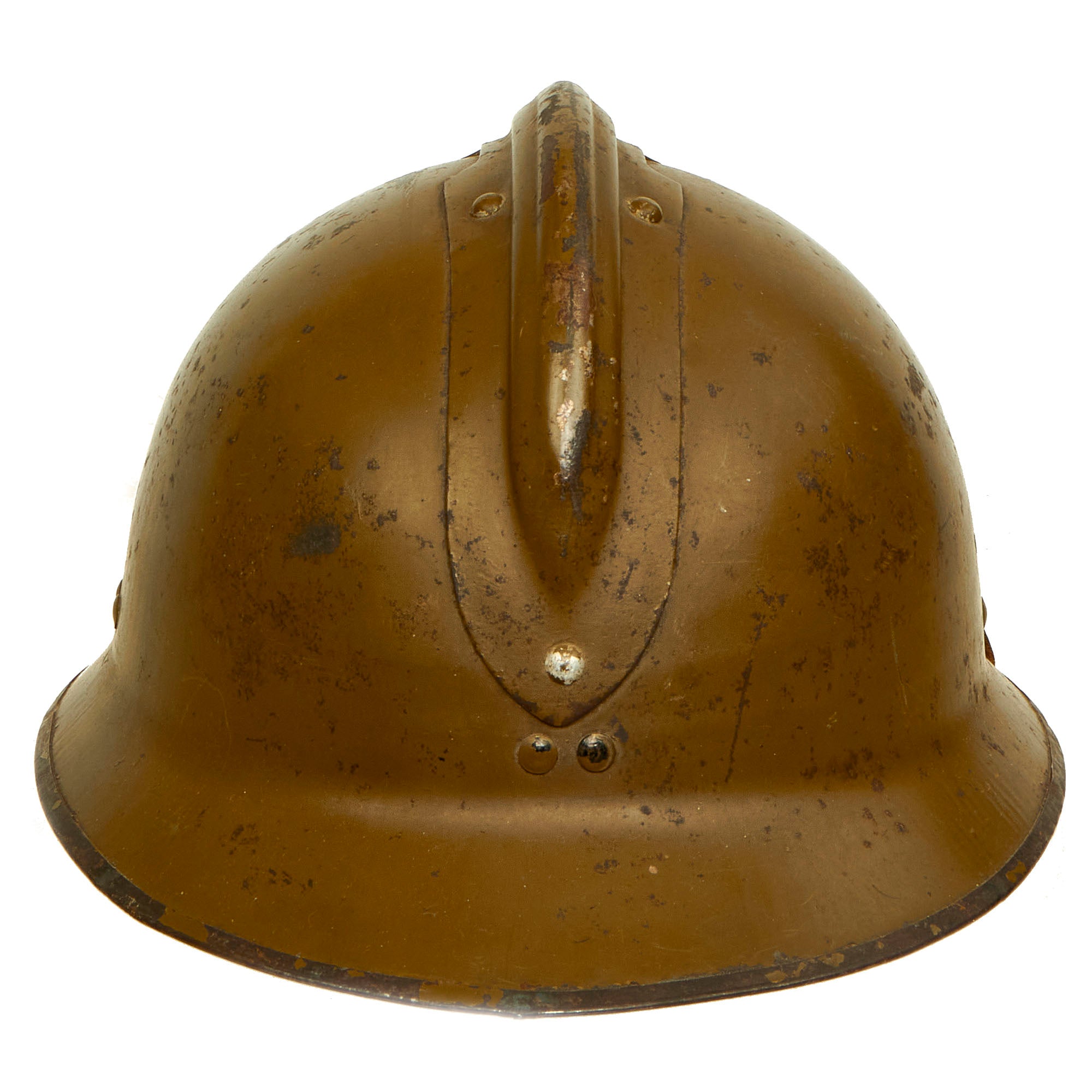 Original Item: Only One Available. The Adrian helmet was an influential design of combat helmet originally produced for the French Army during World War I. Its original version, the M15, was the first standard helmet of the French Army and was designed when millions of French troops were engaged in trench warfare, and head wounds from the falling shrapnel generated by indirect fire became a frequent cause of battlefield casualties. Introduced in 1915, it was the first modern steel helmet and it served as the basic helmet of many armies well into the 1930s. Initially issued to infantry soldiers, in modified form they were also issued to cavalry and tank crews. A subsequent version, the M26, was used during World War II.