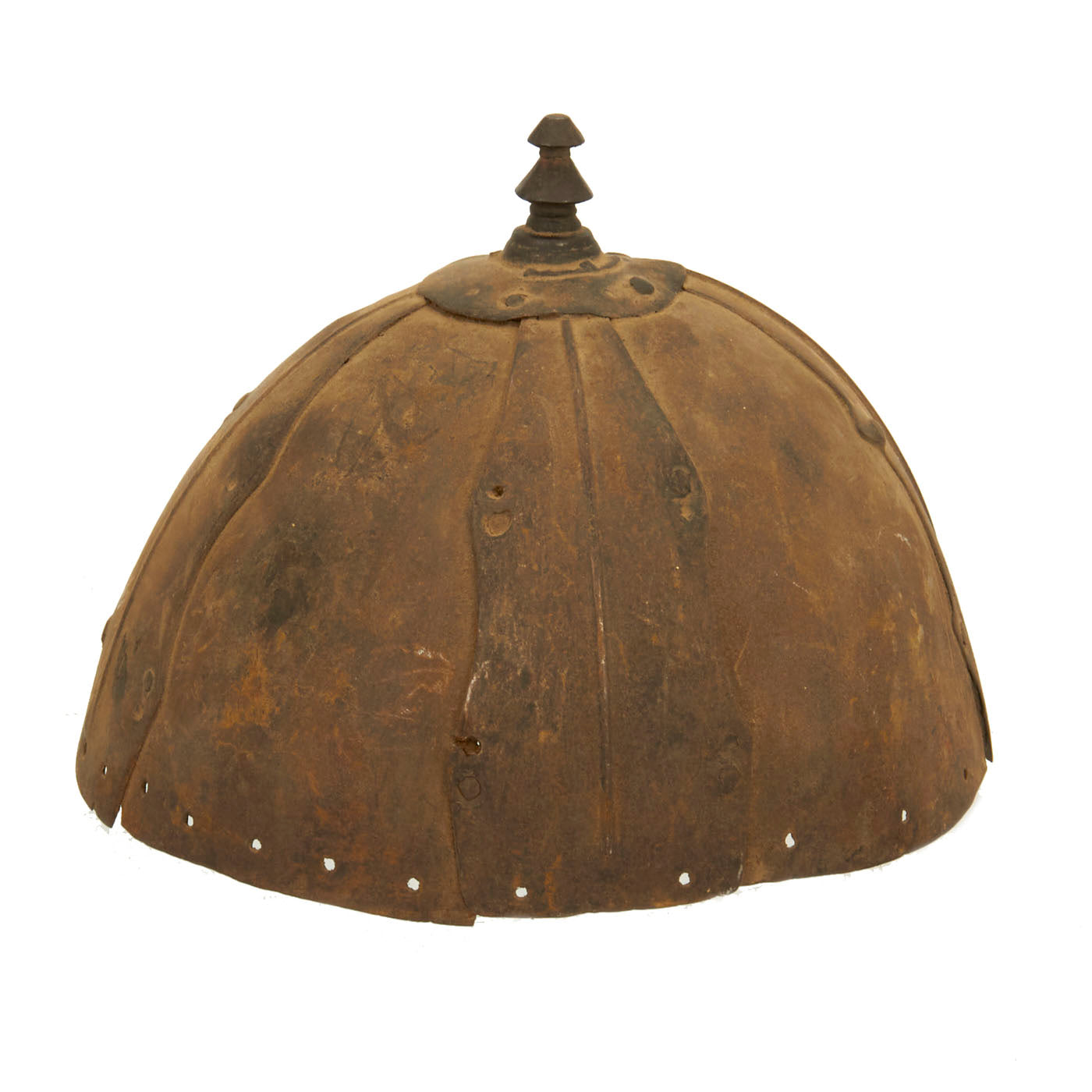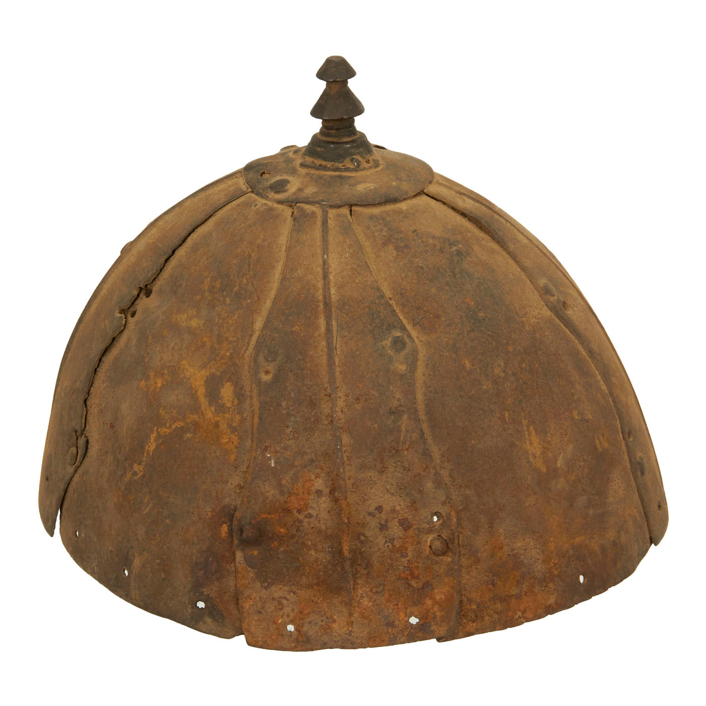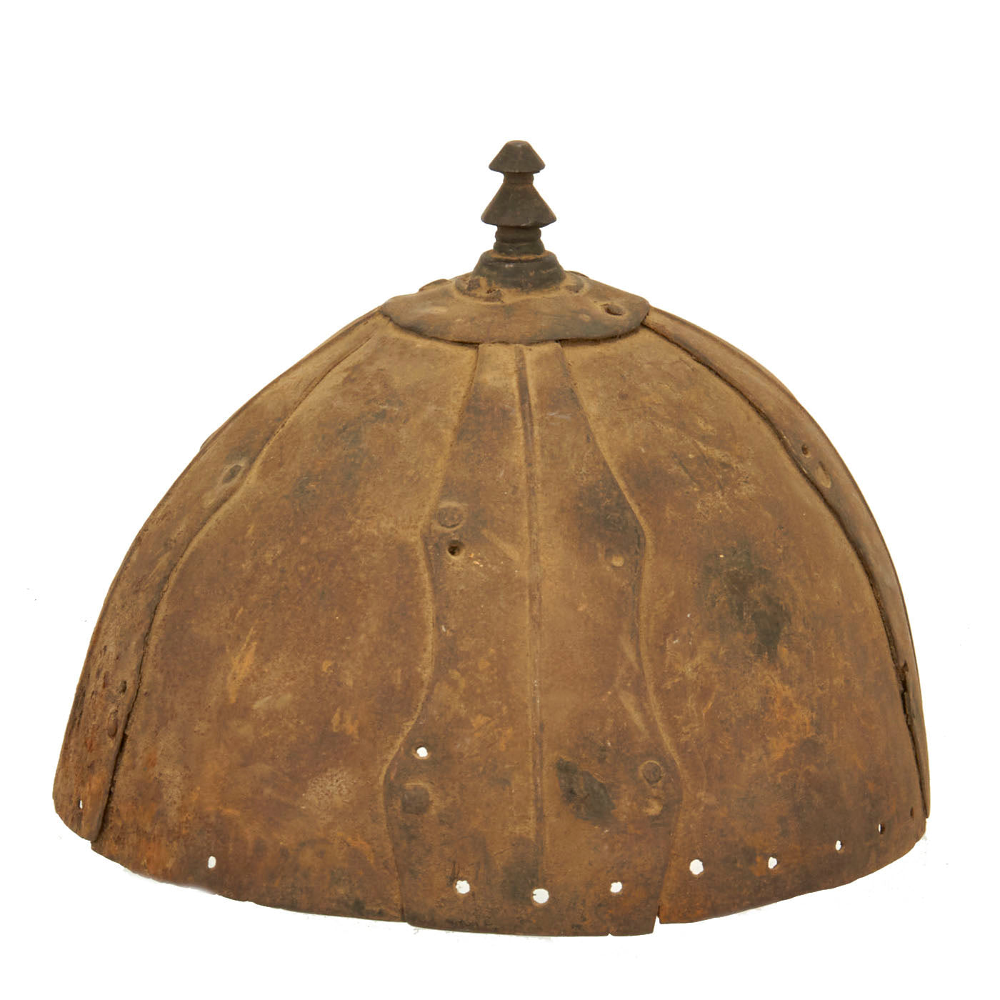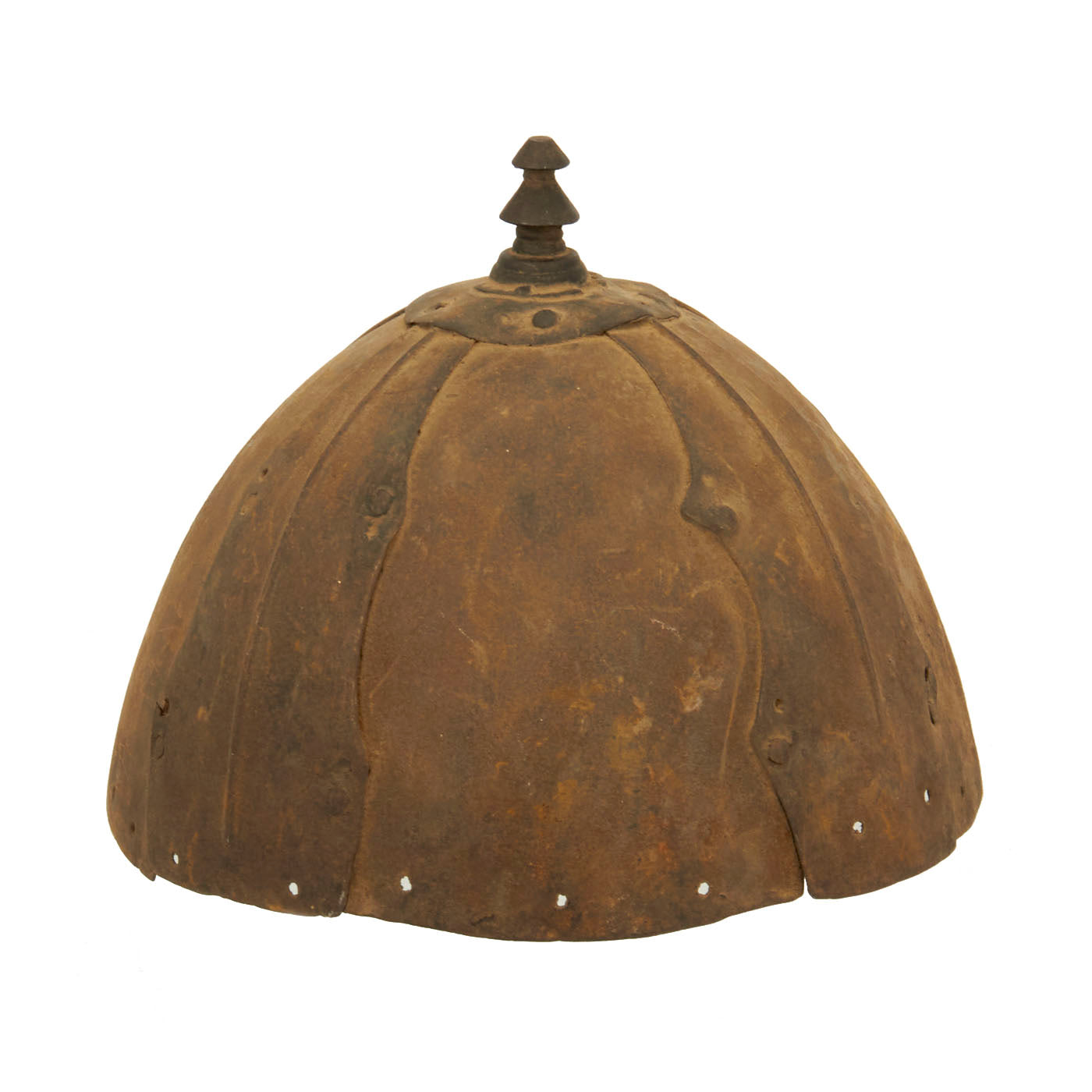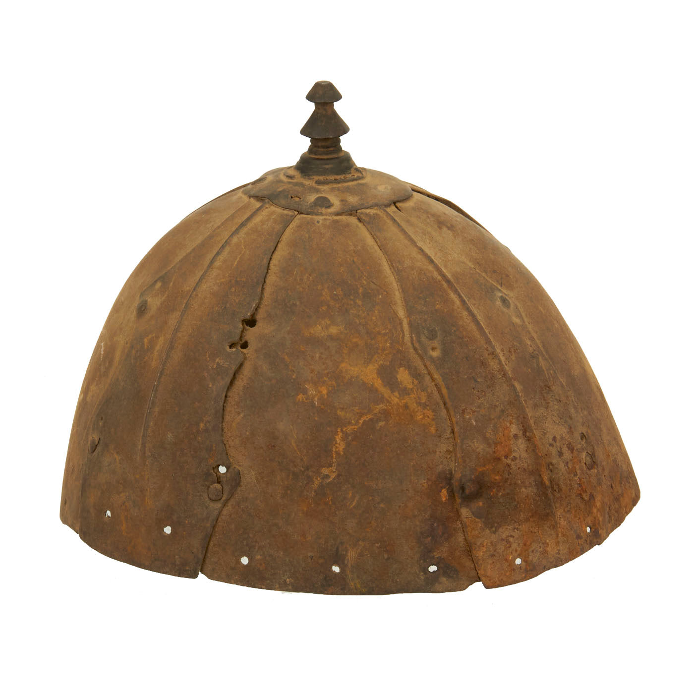 The leather lacing of lamellar armor in the Metropolitan Museum was carbon dated to 1480 - 1660 with 95% reliability, indicating just how old some of these pieces can be. We believe a tentative 16th to 17th century dating for this helmet is not unreasonable.