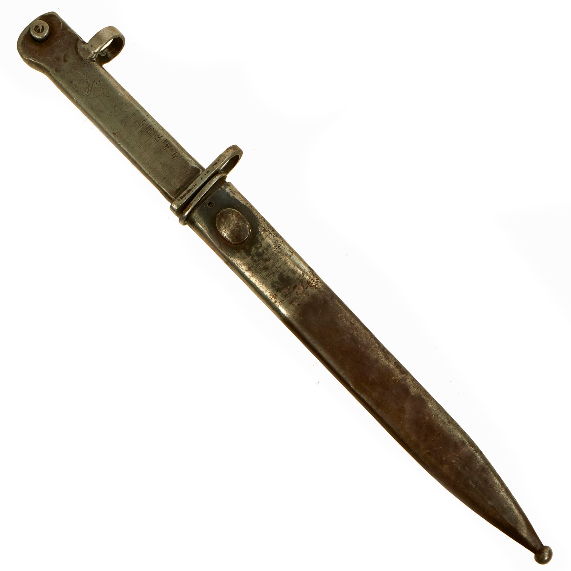 Original Item: Very Few Available. At first glance one could be forgiven for thinking this might be from WWI, but it in fact dates from the 1960s. Of Turkish manufacture, these feature a 9.5" knife blade with a fuller down each side, with an overall length of about 15". Of ALL STEEL construction, the hilt has the characteristic TWO muzzle rings, and is marked with serial numbers by the bayonet catch.