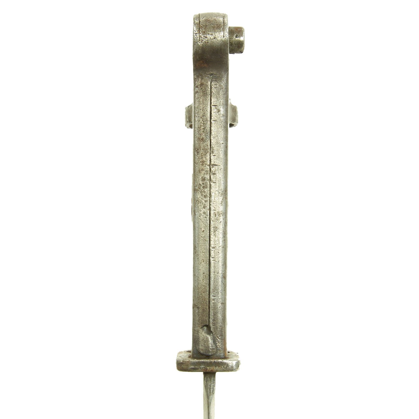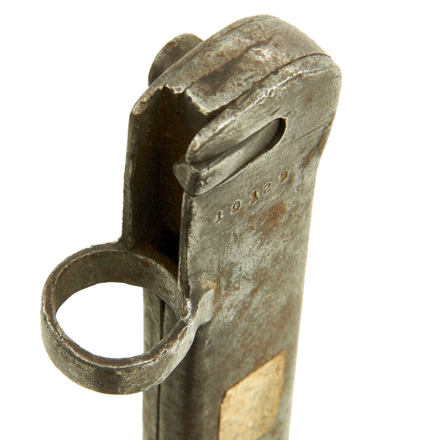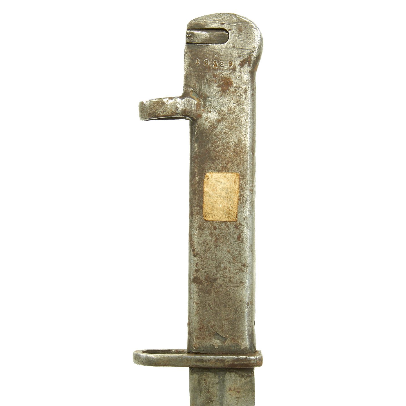 Original Item: Only One Available. At first glance one could be forgiven for thinking this might be from WWI, but it in fact dates from the 1960s. Of Turkish manufacture, these feature a 9.5" knife blade with a fuller down each side, with an overall length of about 15". Of ALL STEEL construction, the hilt has the characteristic TWO muzzle rings, and is marked with serial number 10129 by the bayonet catch.