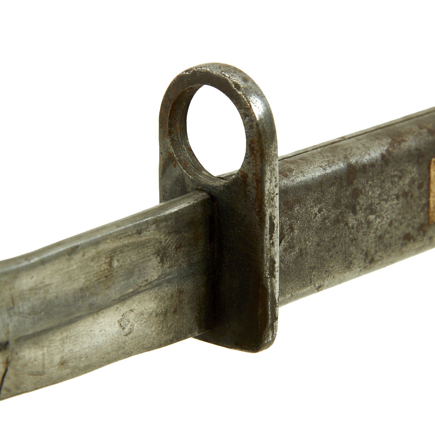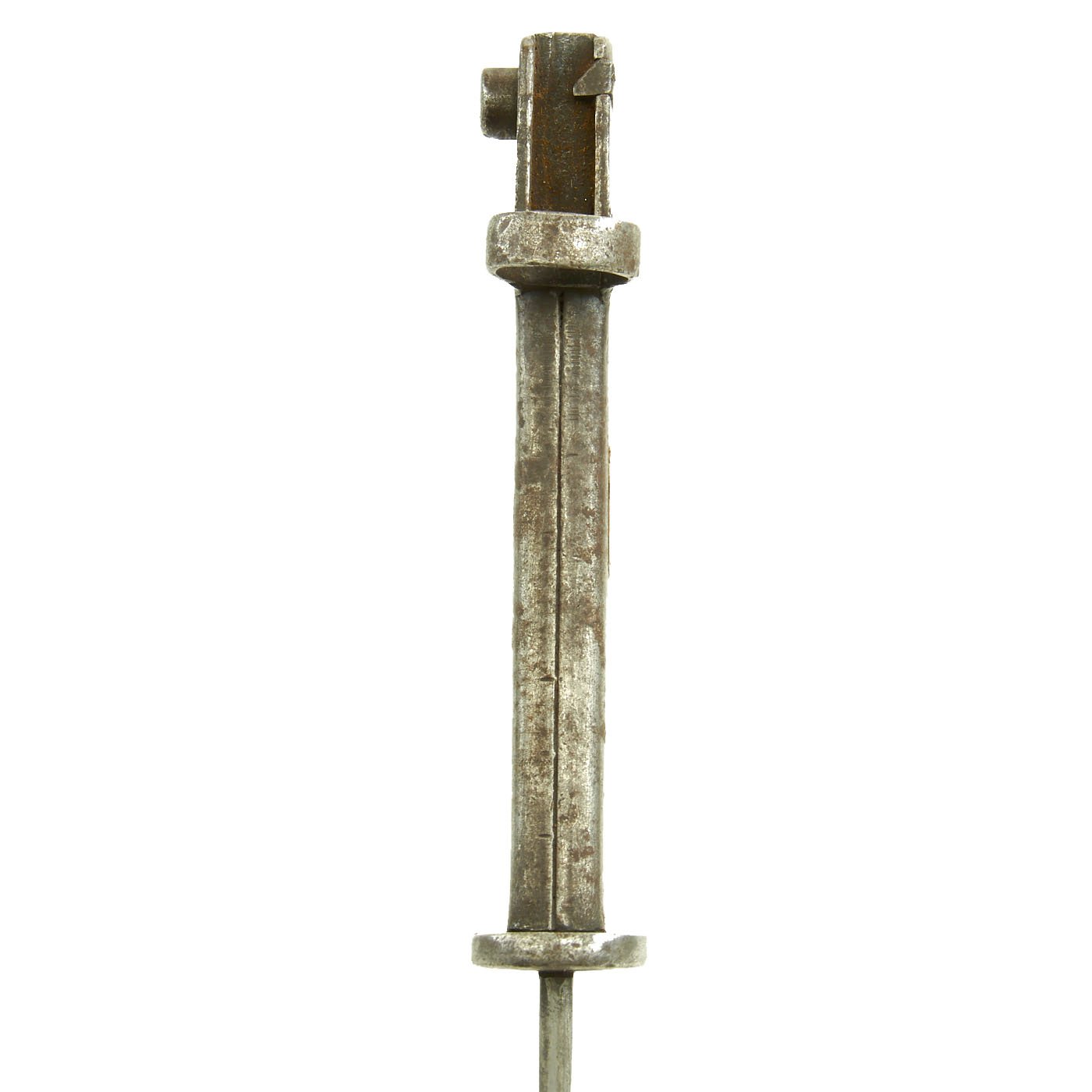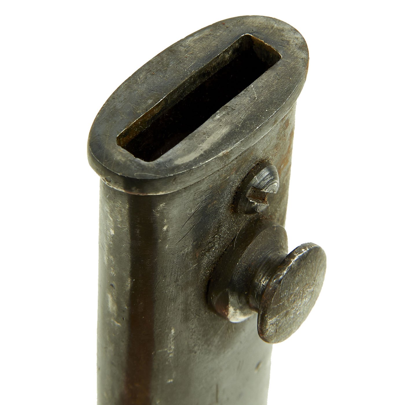 Original Item: Only One Available. At first glance one could be forgiven for thinking this might be from WWI, but it in fact dates from the 1960s. Of Turkish manufacture, these feature a 9.5" knife blade with a fuller down each side, with an overall length of about 15". Of ALL STEEL construction, the hilt has the characteristic TWO muzzle rings, and is marked with serial number 10129 by the bayonet catch.