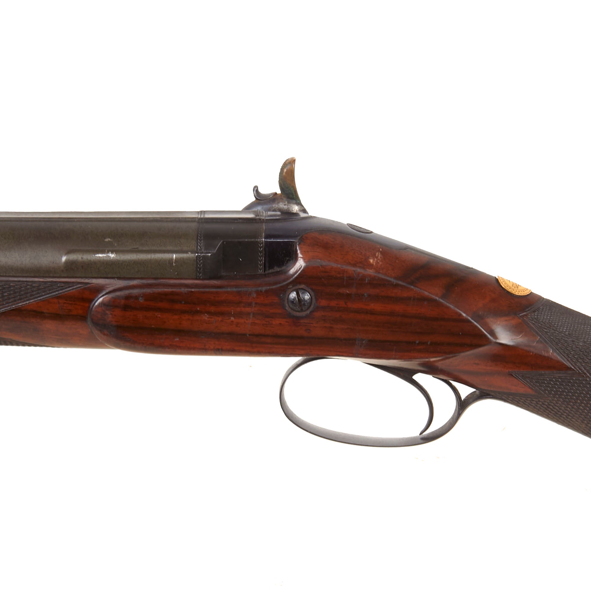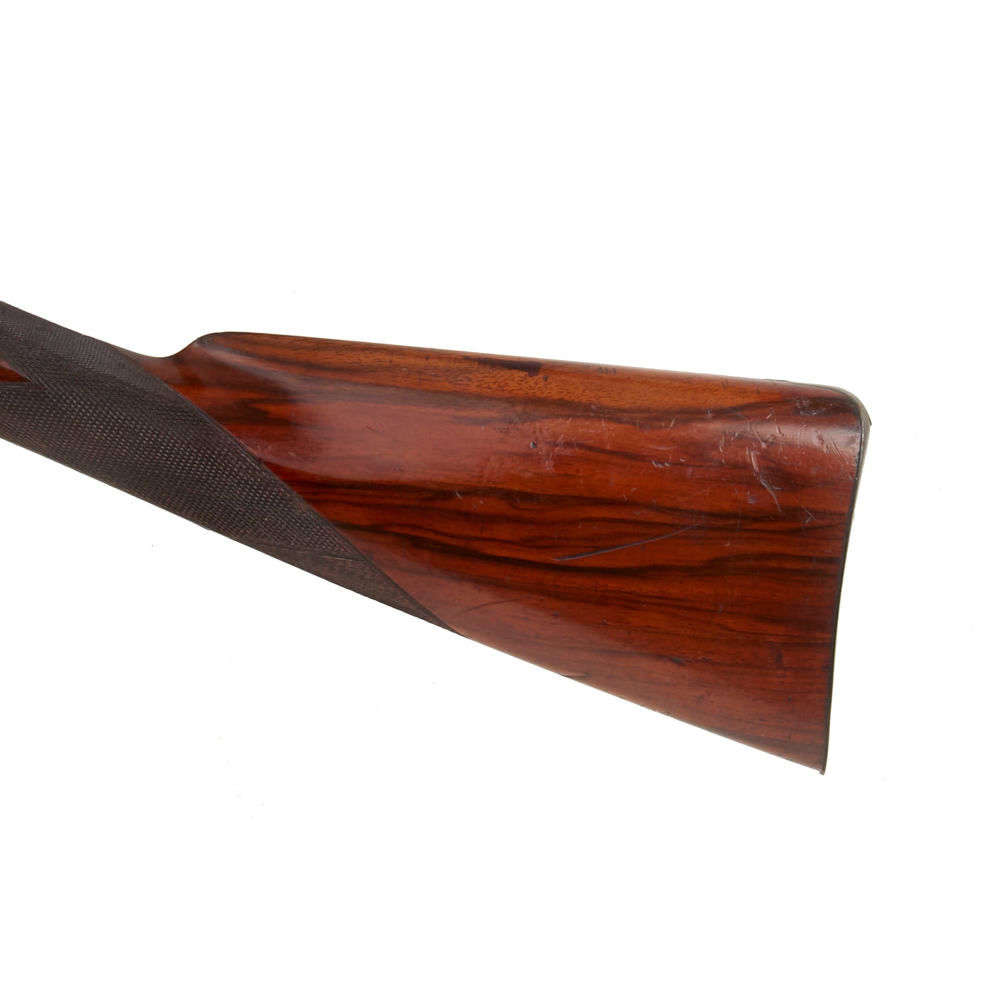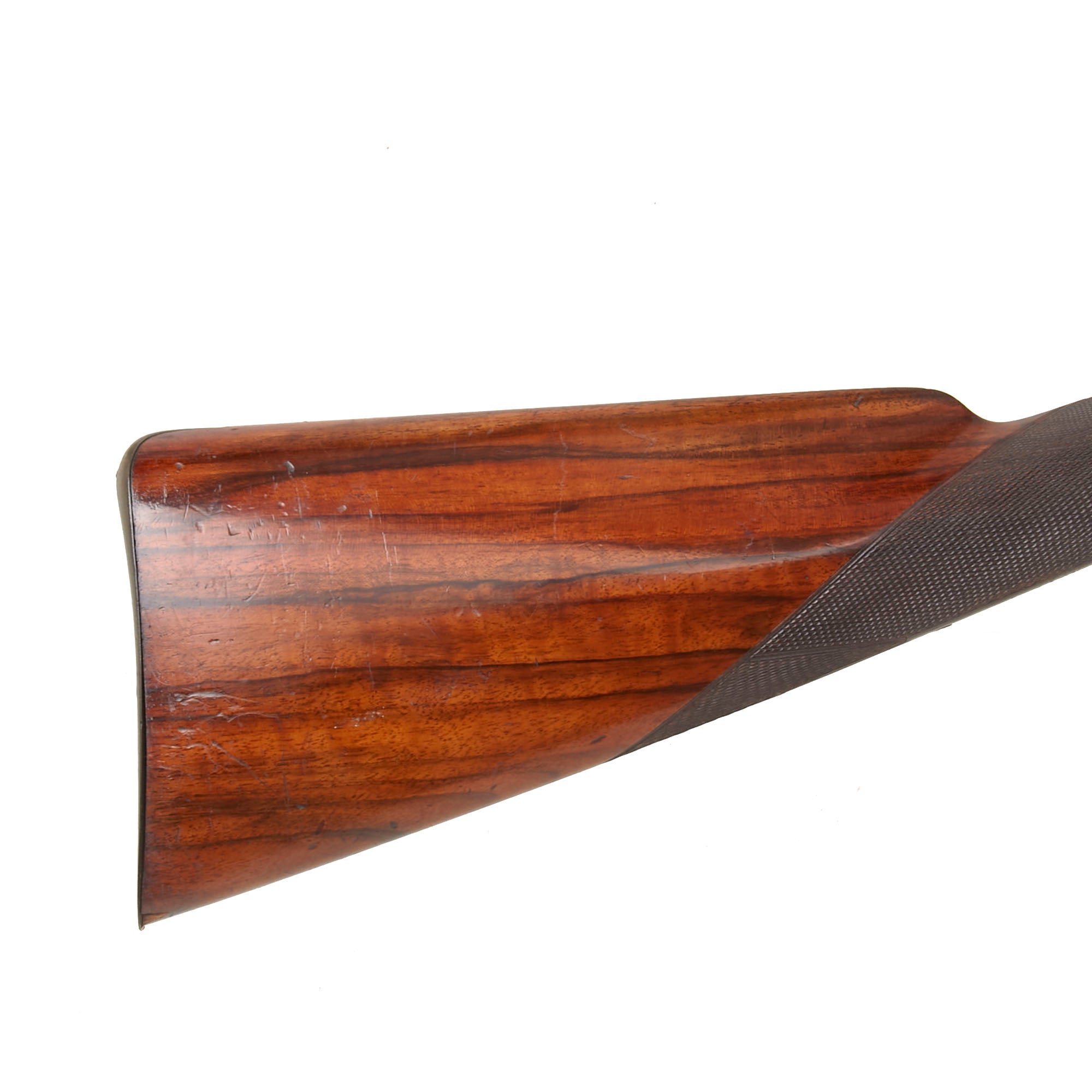 A lovely example of a mid 19th Century Fowling Piece by a notice Boston maker, made with a British barrel. Ready to research and display!