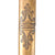 The all-brass scabbard bears lovely floral motifs and etching. The scabbard has a heavy amount of dents and dings which is to be expected from its age, but it still presents rather nicely with a beautiful floral motif on the front, but there may have been a repair in the end of the scabbard at one point. The one suspension ring is also retained, but is heavily dented.