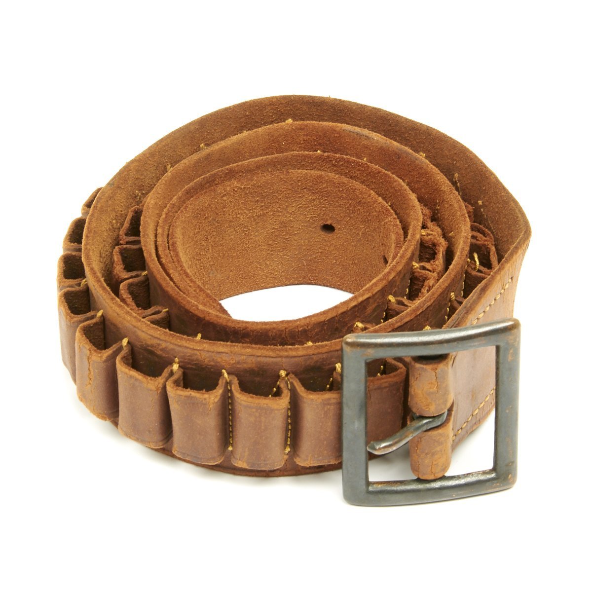 - Original 1880s Cowboy Western .45 caliber 50 round ammunition waist belt with dark patina brass buckle.
