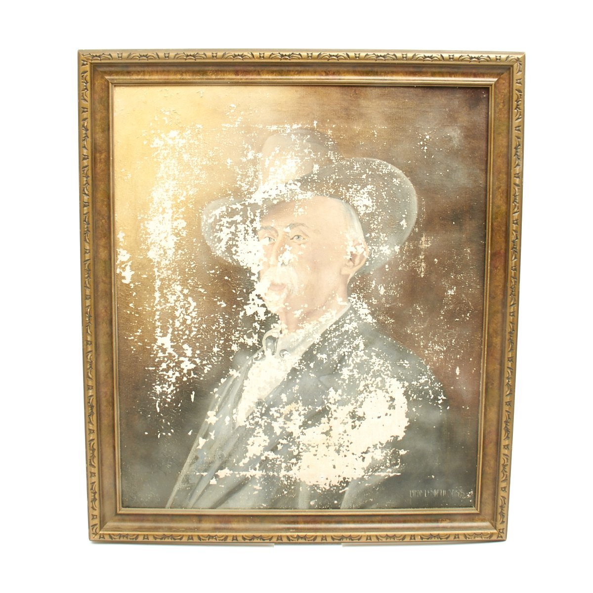 - Original oil on canvas painting of Lambeth, unknown age, approximately turn of the century, signed by Linda Lambeth Jones. Shows wear, age and flaking.