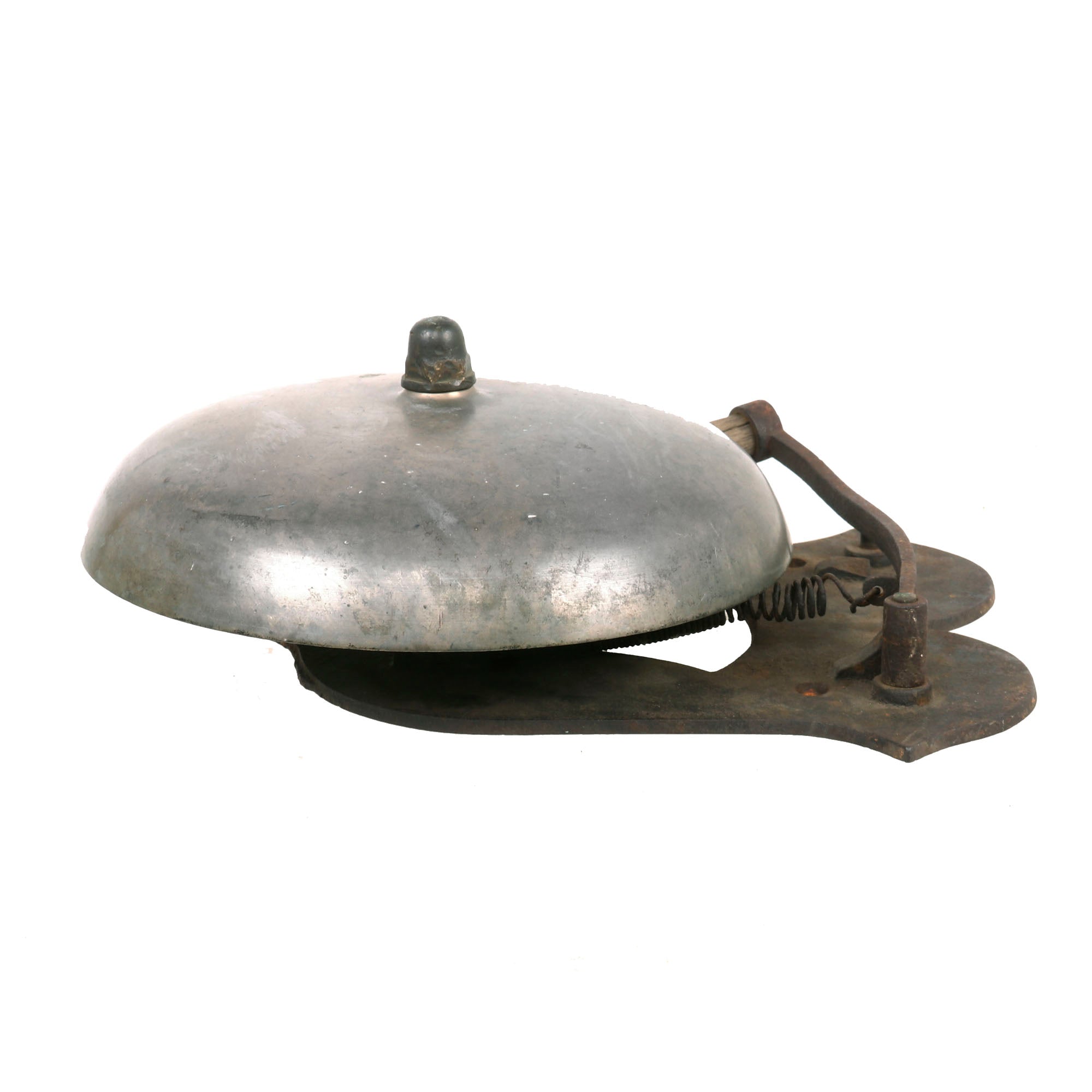 The bell measures approximately 15½ x 12 x 6” and is in rough but fair condition overall. Pulling the hammer back and releasing it causes that classic sound which is synonymous with boxing. There is a loose spring under the bell itself which likely attached to the post below the hammer which would either allow it to hit repeatedly or at a pre-determined time. A great restoration project, ready to start!