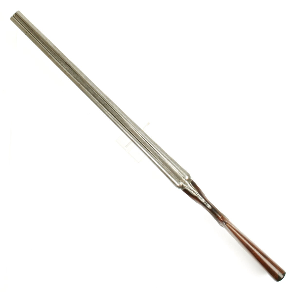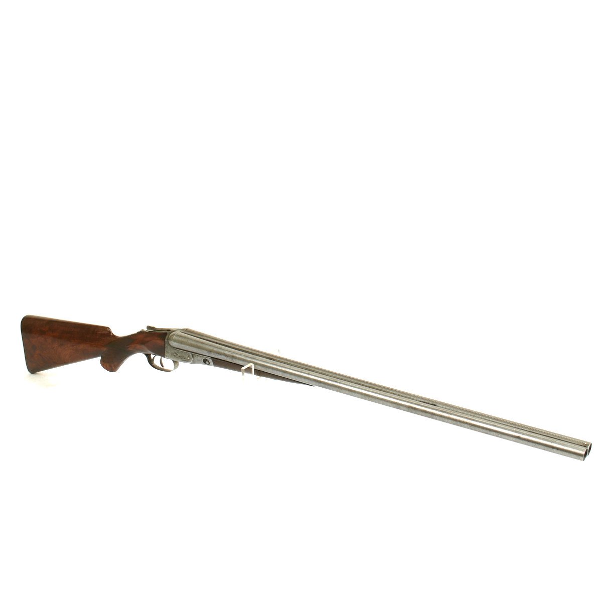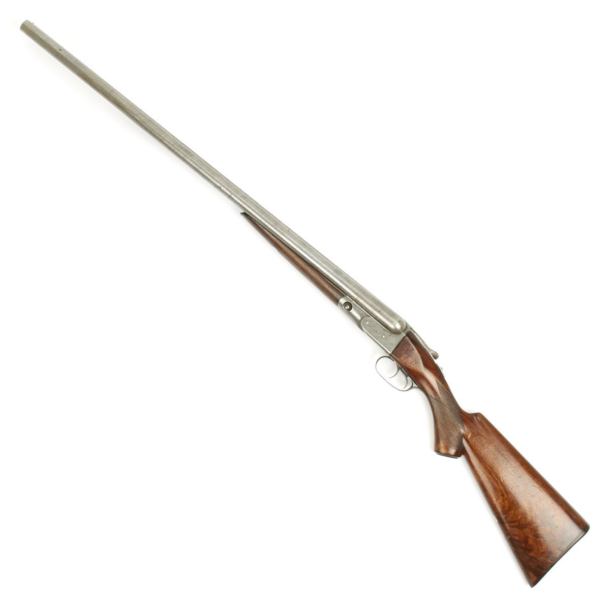This 12 gauge is a grade 2 (GH) with a size 1 frame. The serial number is 68088, which can be clearly seen on the trigger guard, water table, fore-end and barrel lug. The serial number denotes the year of manufacture as 1892. It features a double trigger, fishtail break open lever and fine upgraded Damascus Steel barrels that are in lovely condition with mirror bright bores. Stock has vibrant grain pattern with original finish and shows a few minor dings from use and age. Overall condition of the shotgun is 8+.