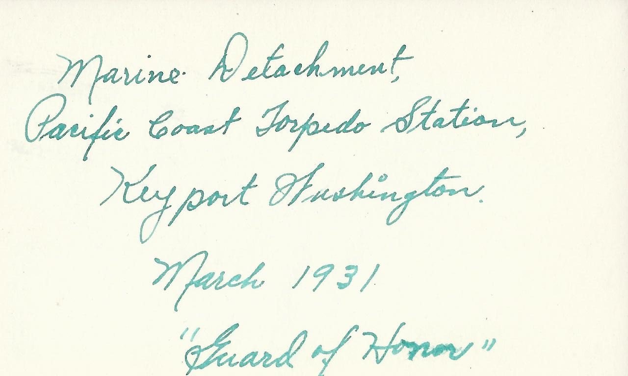 JOINED: GUARD COMPANY, NAVAL TORPEDO STATION, KEYSPORT, WASHINGTON 1 FEB 1931