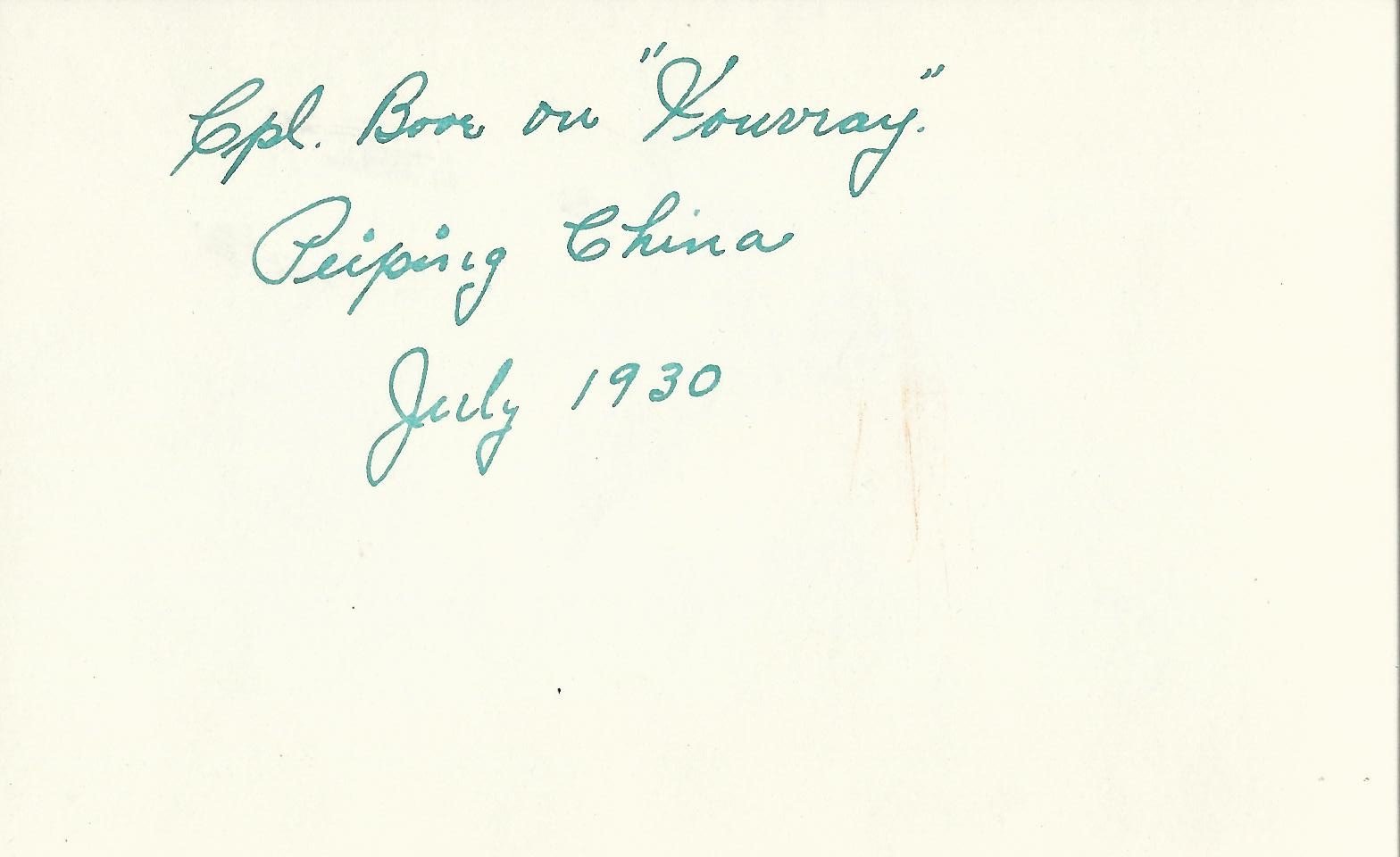 Included in this grouping are photographs and two of the silver cups corporal Boor won in competition in China from 1929 to 1930. Also included are various photographs of corporal boor in locations where he served. This is a small piece of true history of the corps during the banana wars and service on the china station.