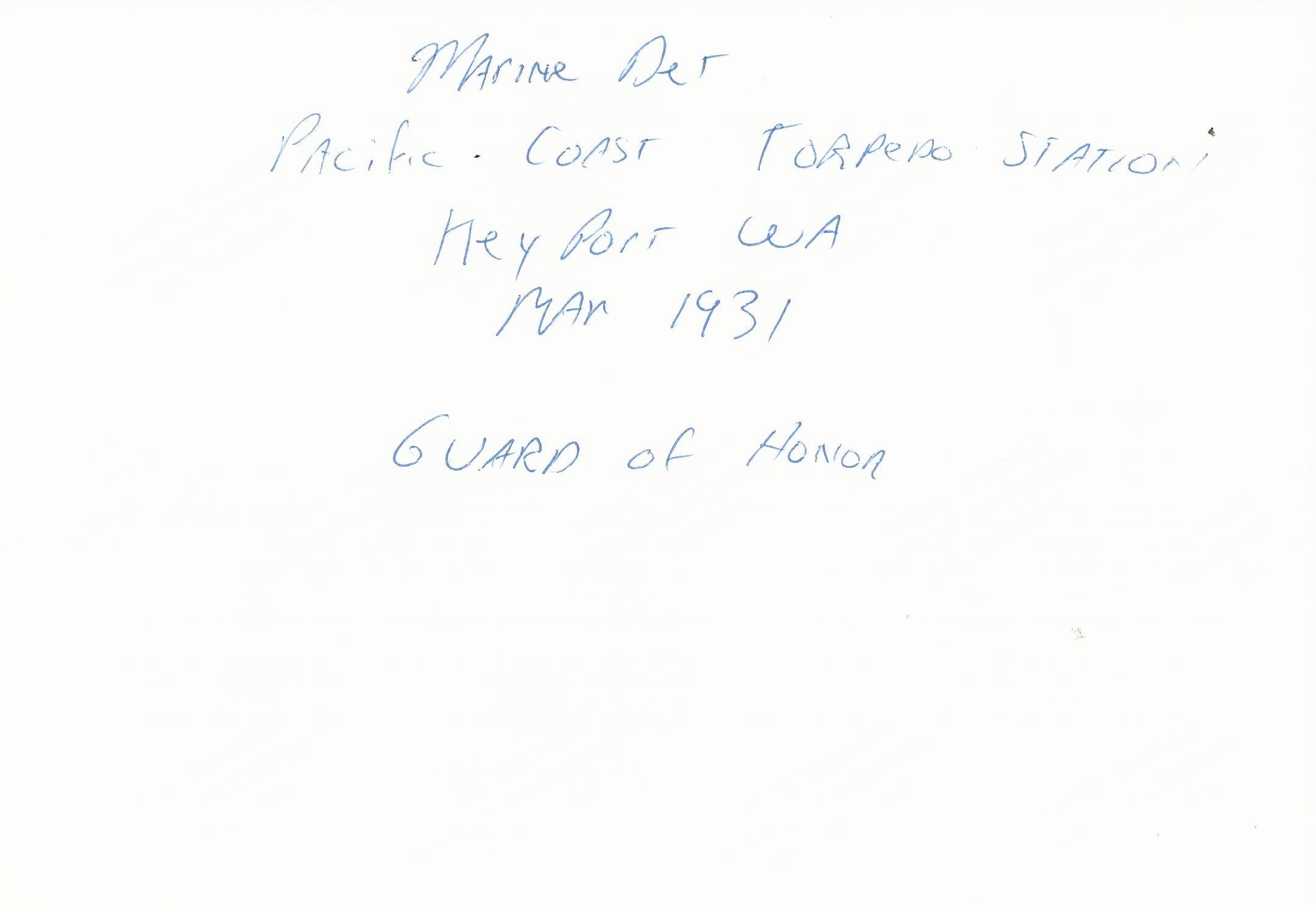 JOINED: GUARD COMPANY, PUGET SOUND, WASHINGTON 79 JANUARY 1931 VIA: "NITRO"