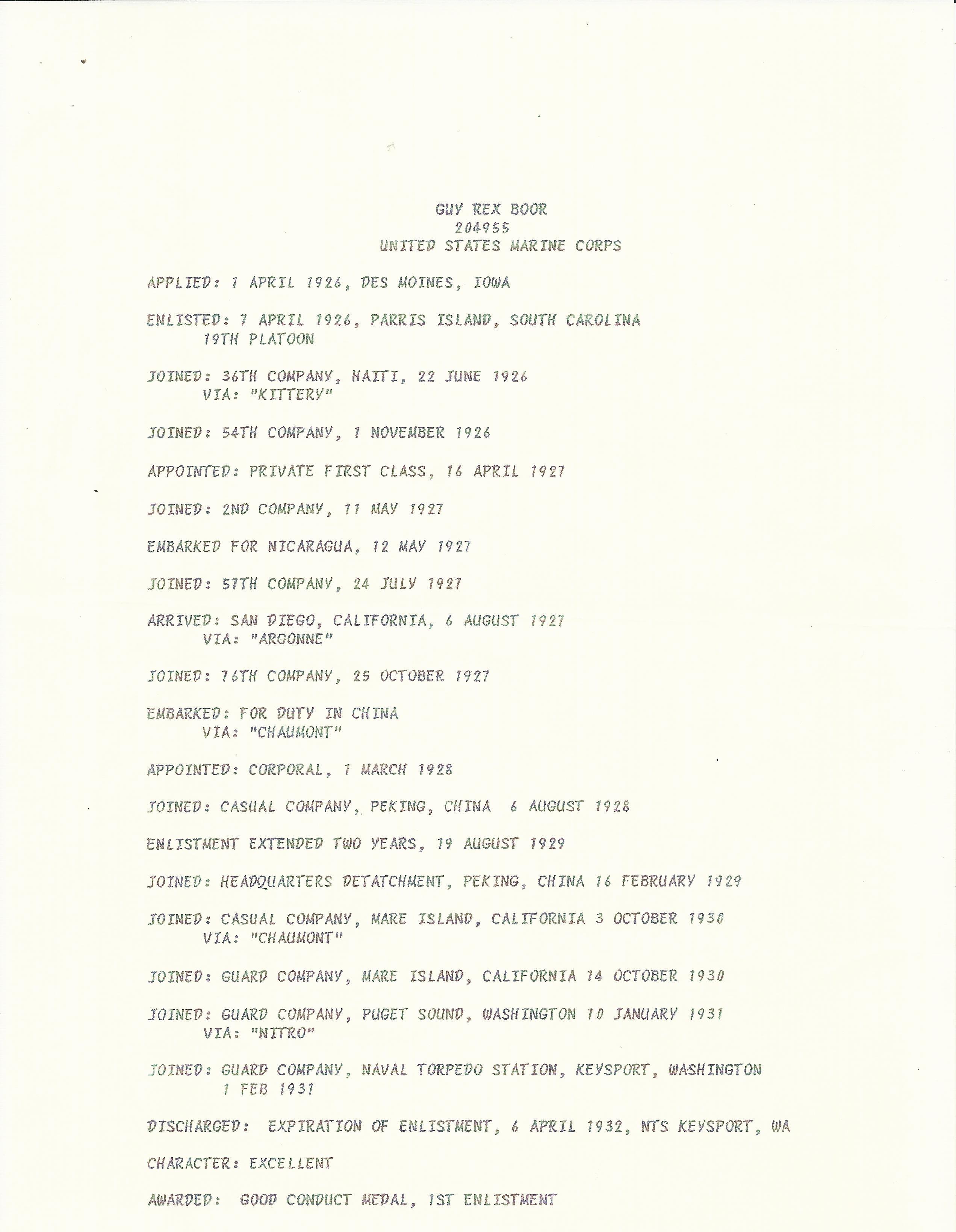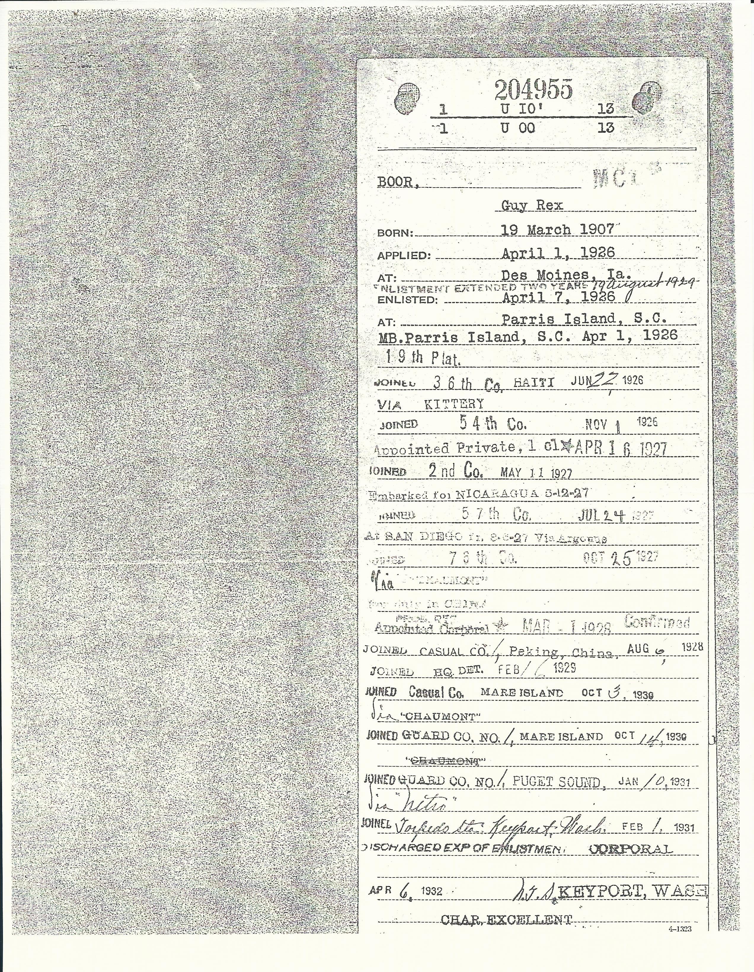 GUY REX BOOR 204955 UNITED STATES MARINE CORPS
