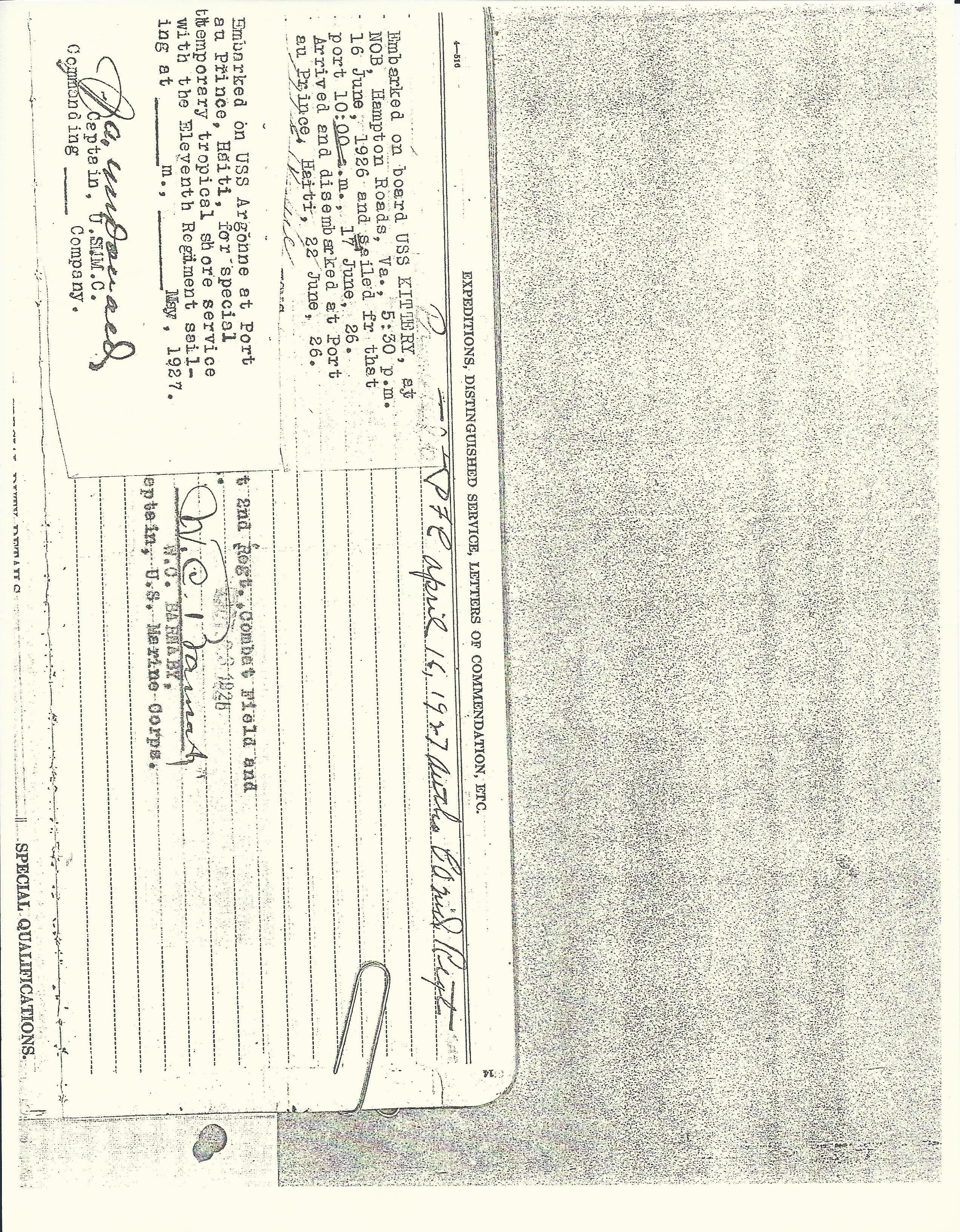 JOINED: 36TH COMPANY, HAITI, 22 JUNE 1926 VIA: "KITTERY"