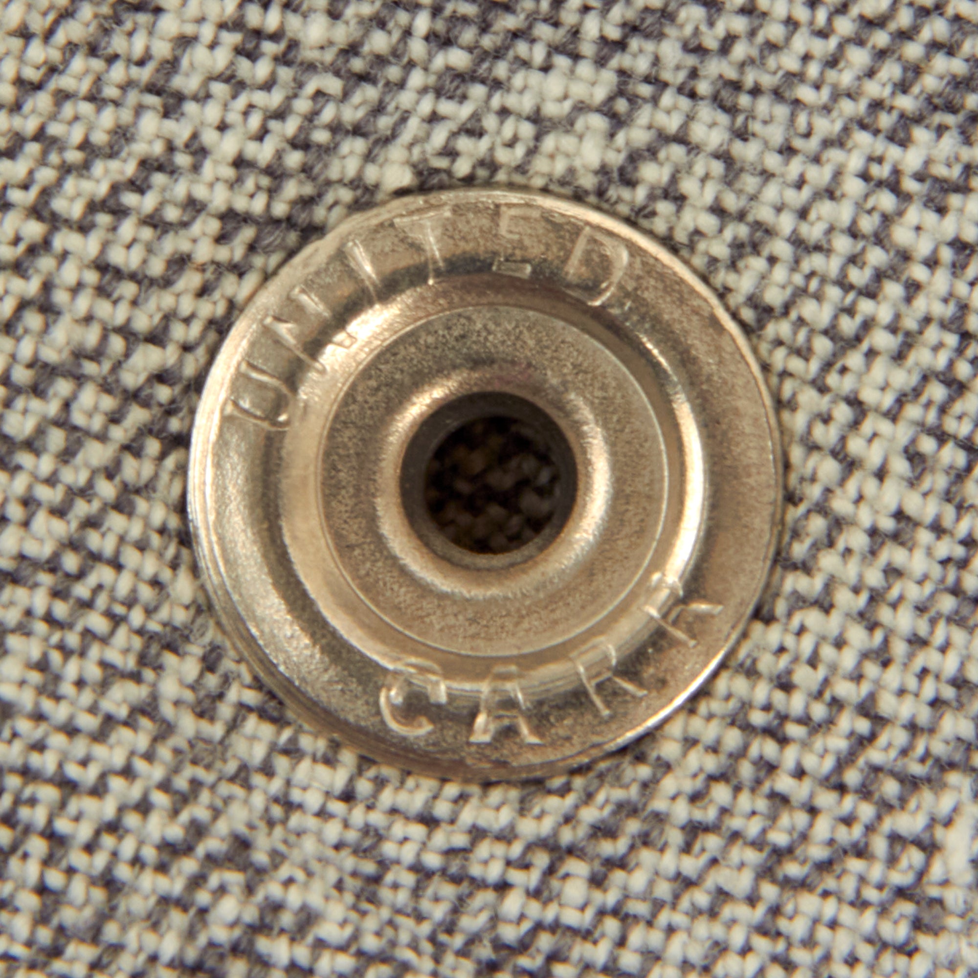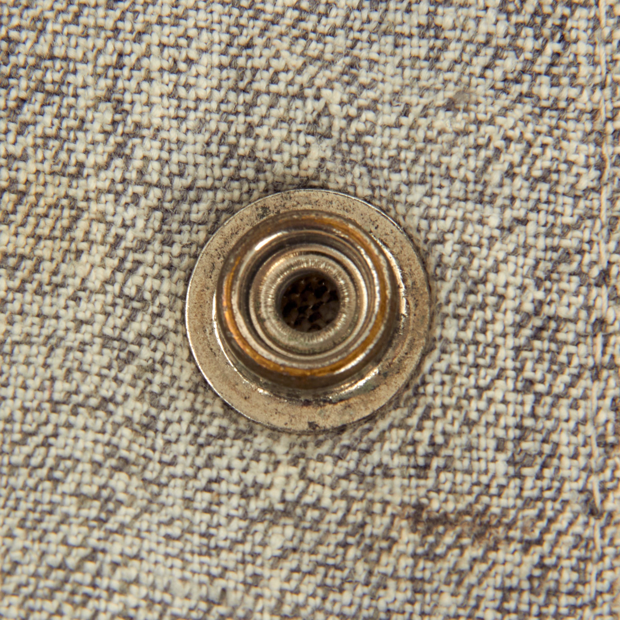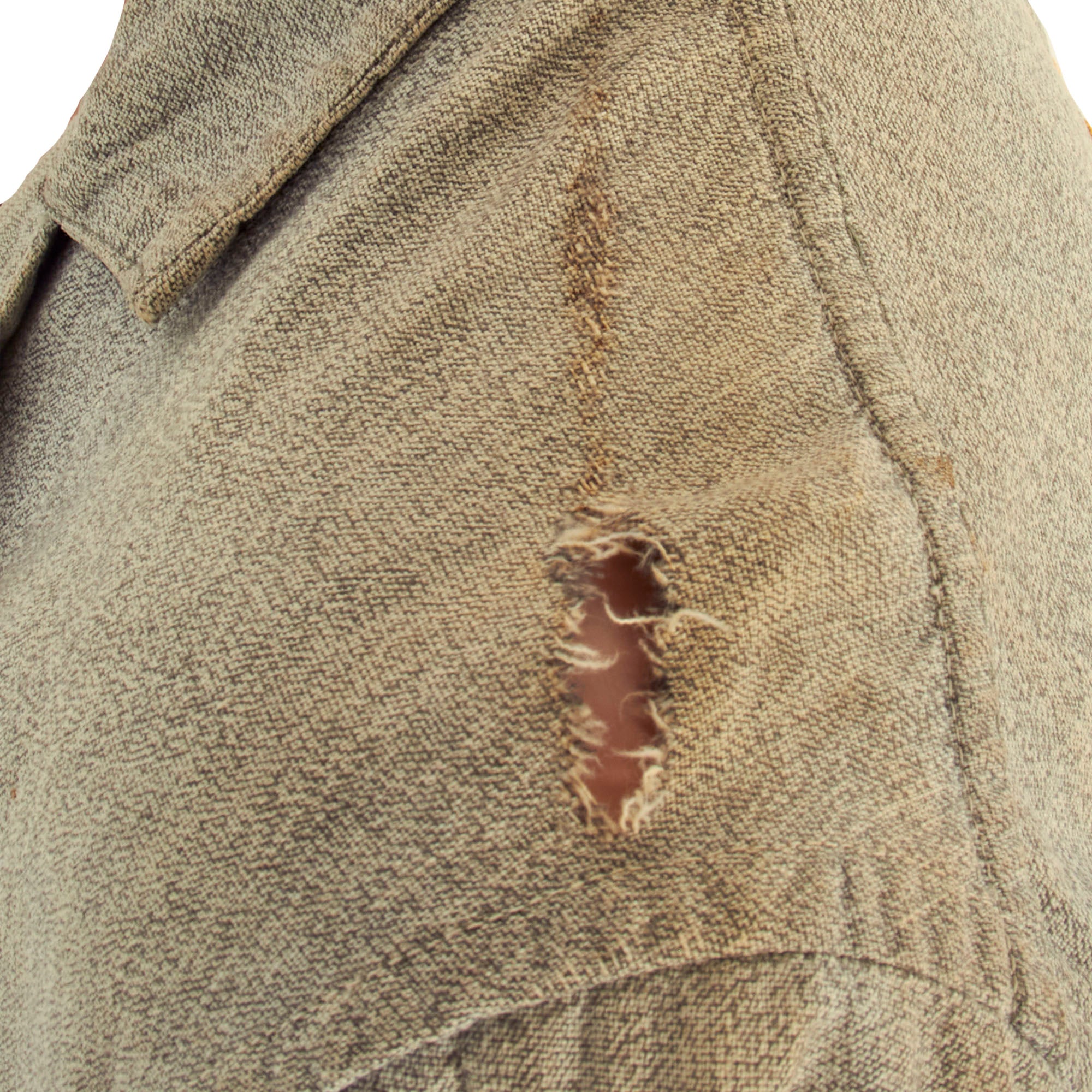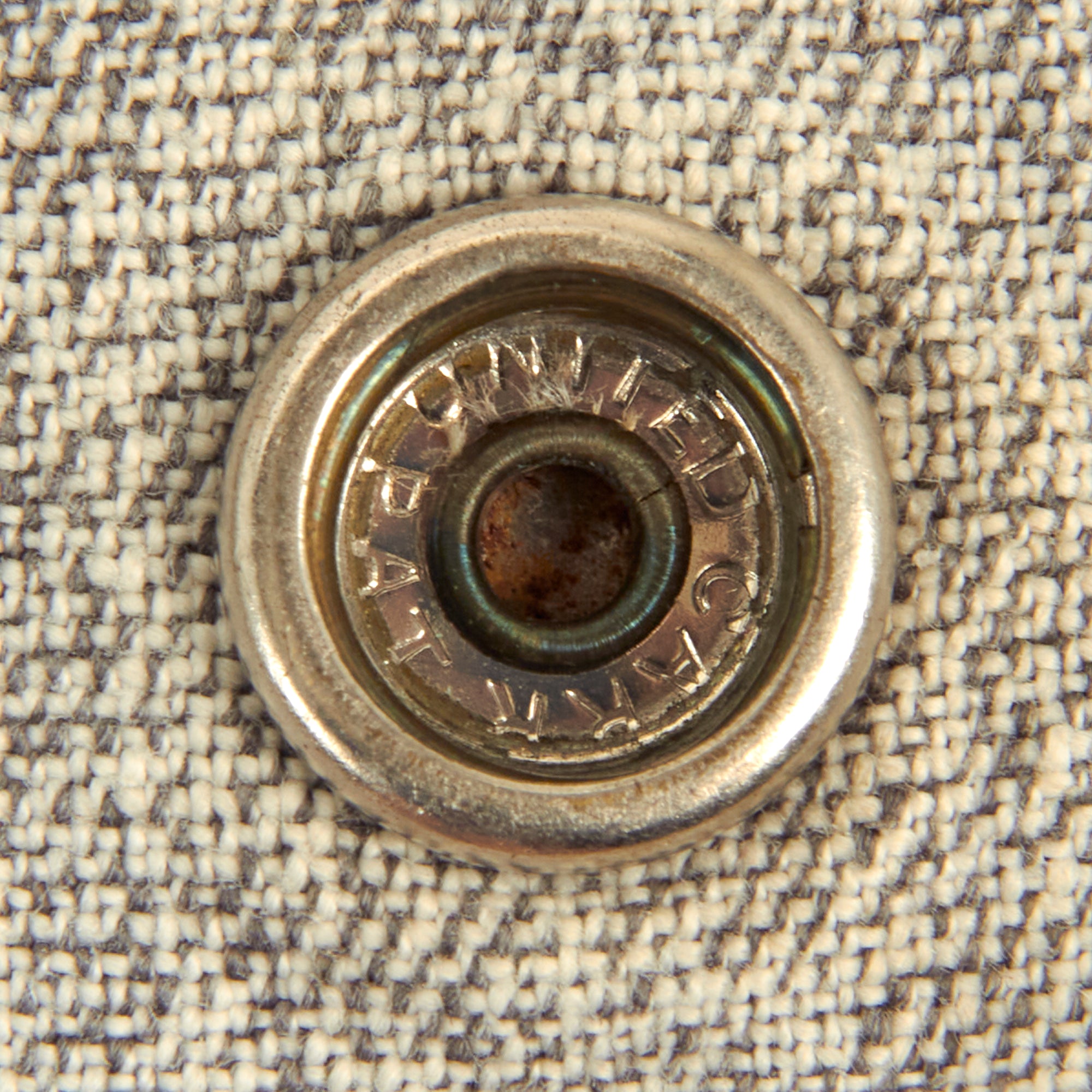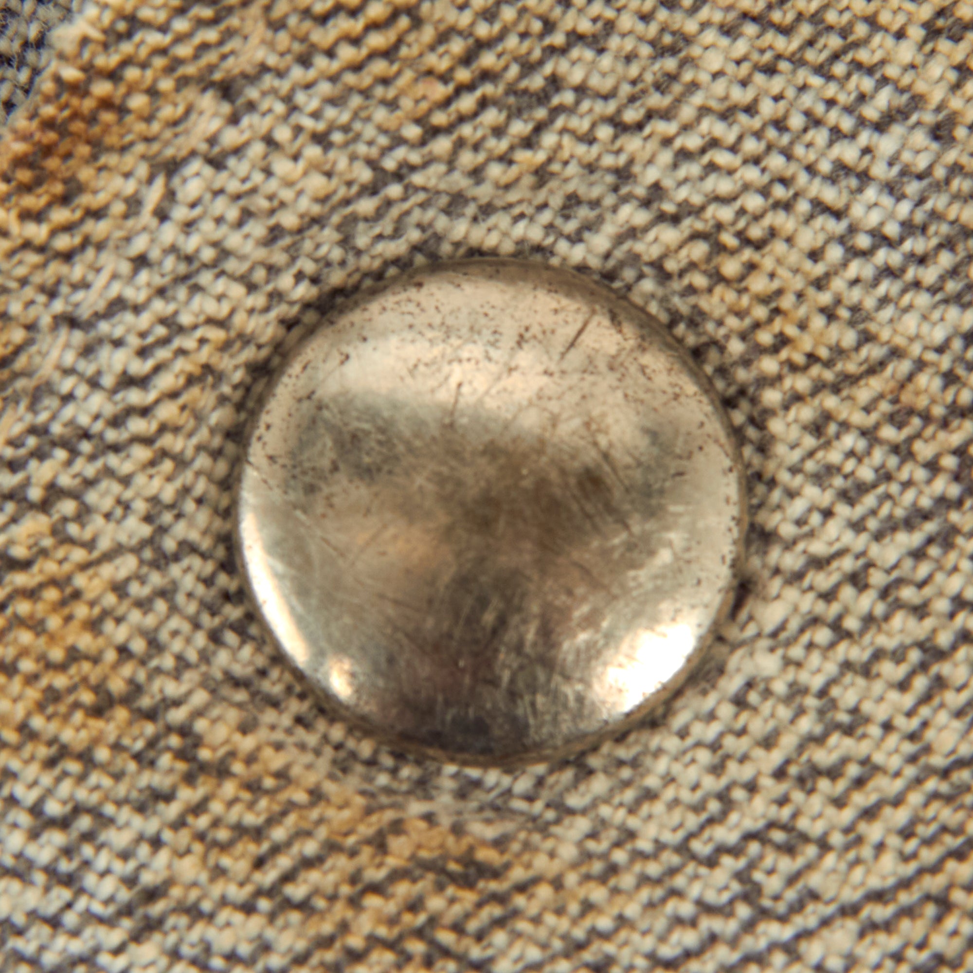 All buttons are Vintage United Carr Snaps and are correctly back marked and date from the 1930s. They are all present and functional and can be used as intended, but as with any clothing of this age, it’s best not to work the hardware too much. Most of the wear present is in the shoulder areas,an some the tearing is present in these locations. There are oil and grease stains scattered throughout which adds to how beautiful the work smock is and what it was used for.