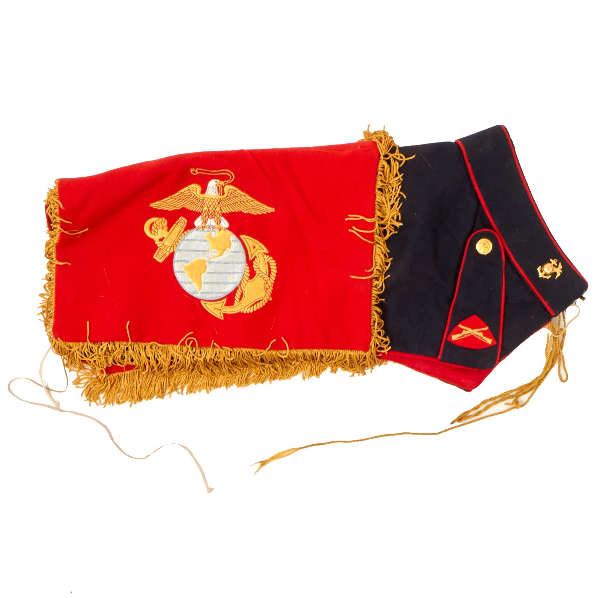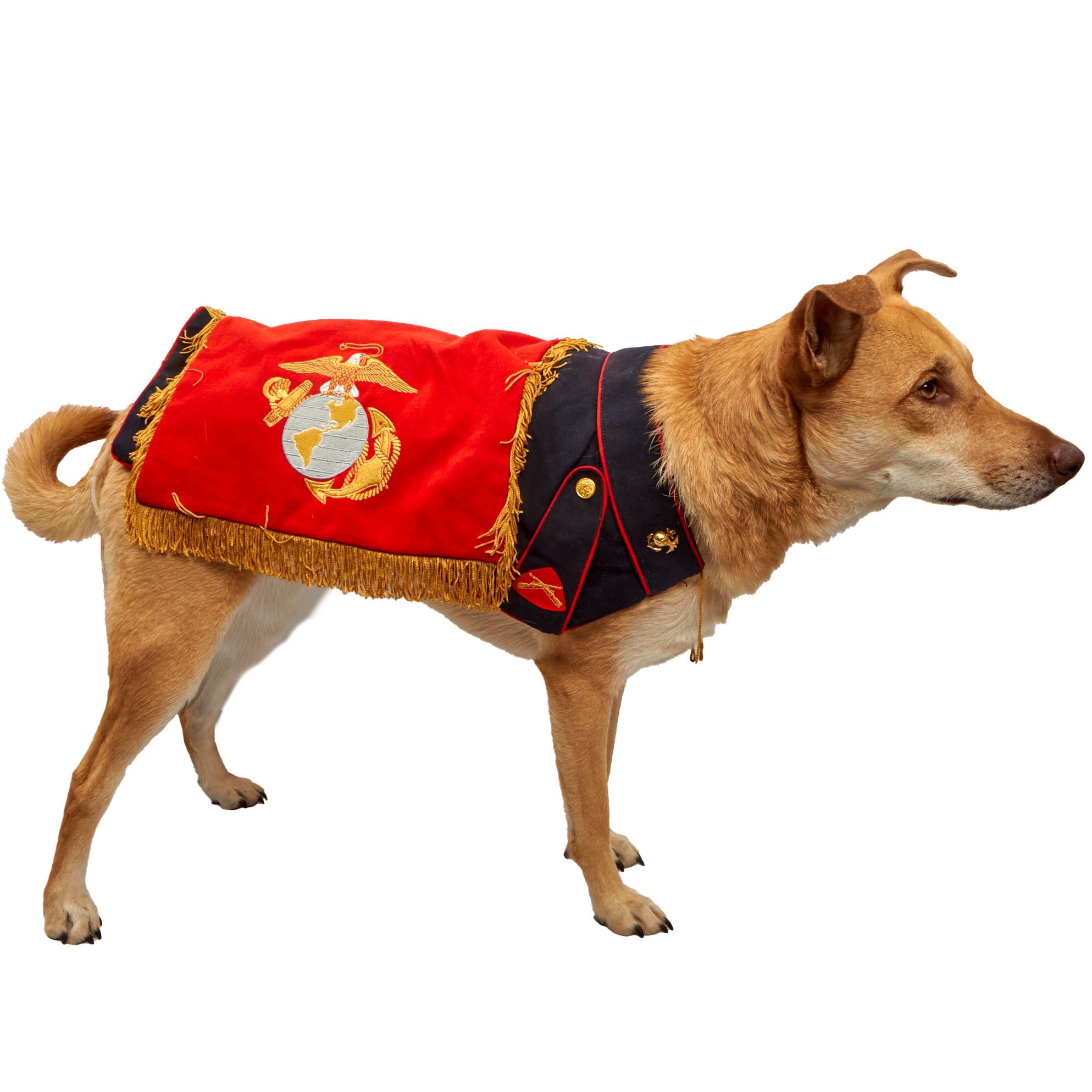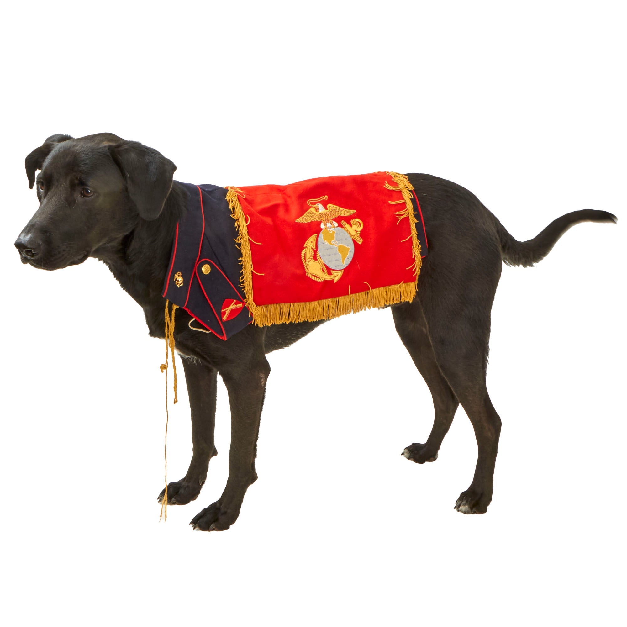 Original Item: Only One Set Available. As a company who has the opportunity to come across various unique items, it is not every day that we encounter something as historically significant as the USMC dog "blanket" uniform that we recently came across. This particular item belonged to the first-ever mascot bulldog to be named after Chesty Puller, known as "Lance Corporal Chesty I". It is a part of the US Marine Corps Mascot uniform collection and holds immense value in terms of history and legacy, especially for US Marines. This uniform is a testament to the longstanding tradition and pride that the Marine Corps holds towards our beloved mascots.