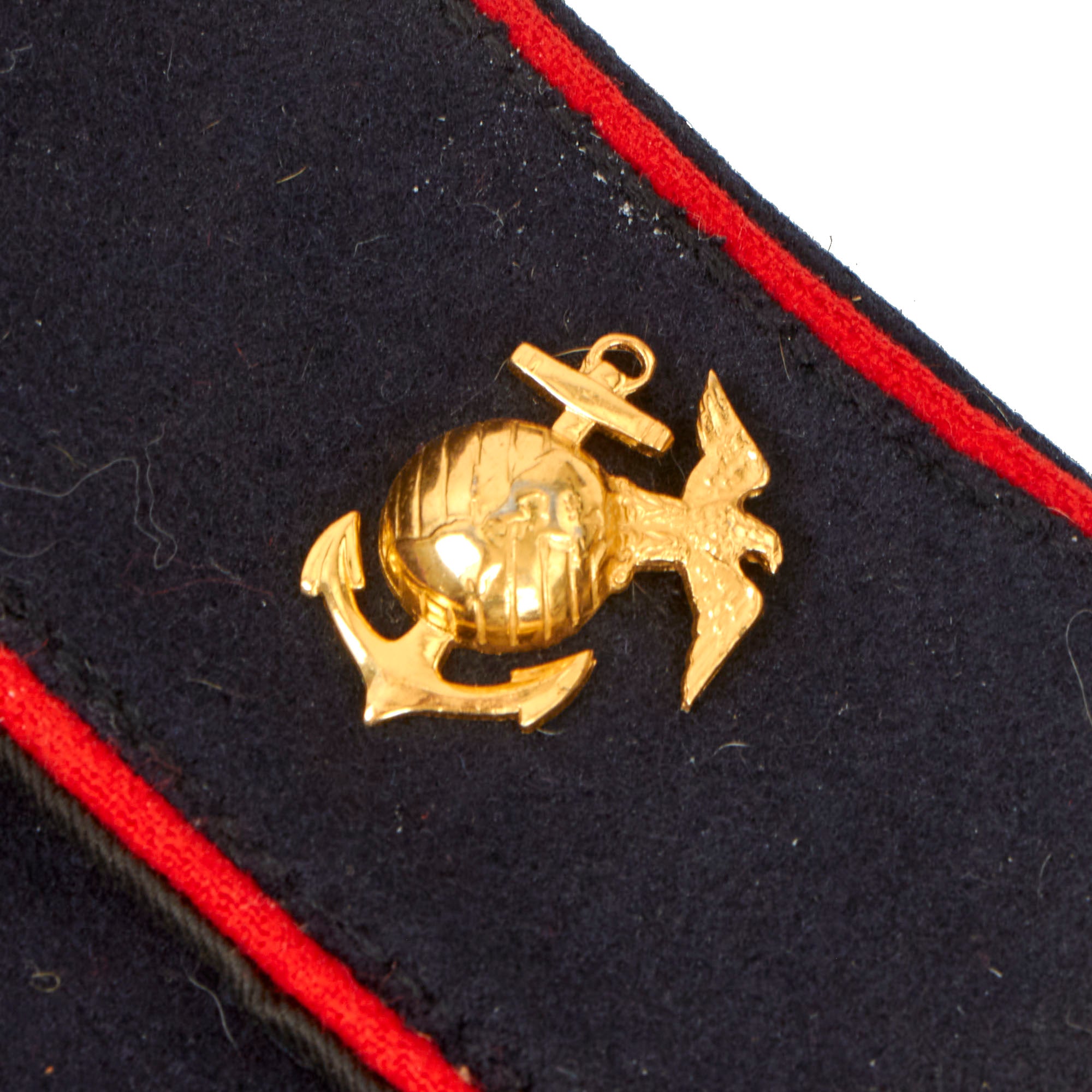 The Dress Blue uniform is in remarkable condition, with no noticeable signs of wear and tear. Like the US Marines, this uniform was reserved for special occasions, which perhaps explains why it is still in such an immaculate state. It was most likely worn by Chesty during events hosted by the Commandant or during parades and other formal events. The uniform is comprised of all its original components, which appear to be in perfect working condition. However, it is worth noting that there may be traces of dog fur on the uniform, though this does not detract from its overall excellence.