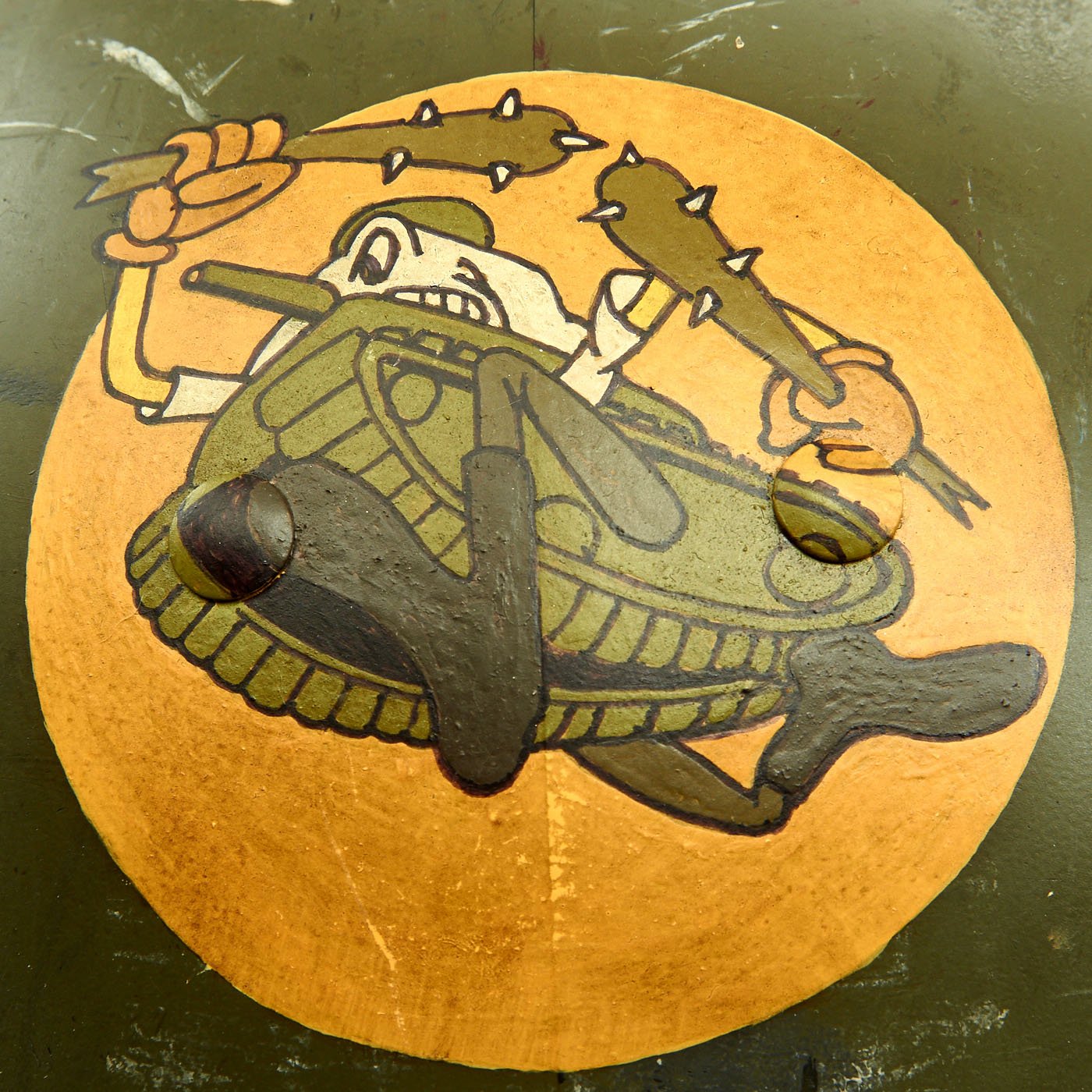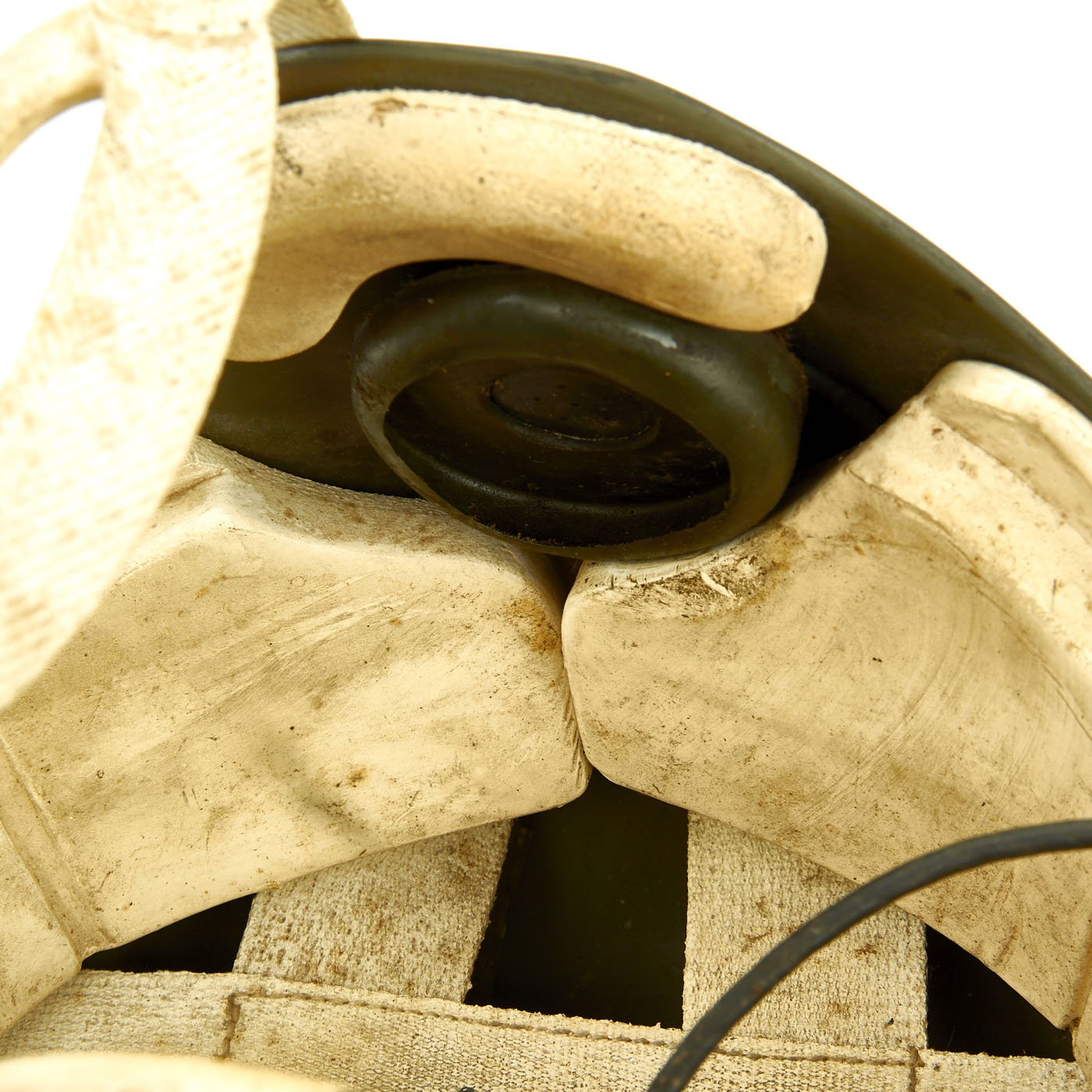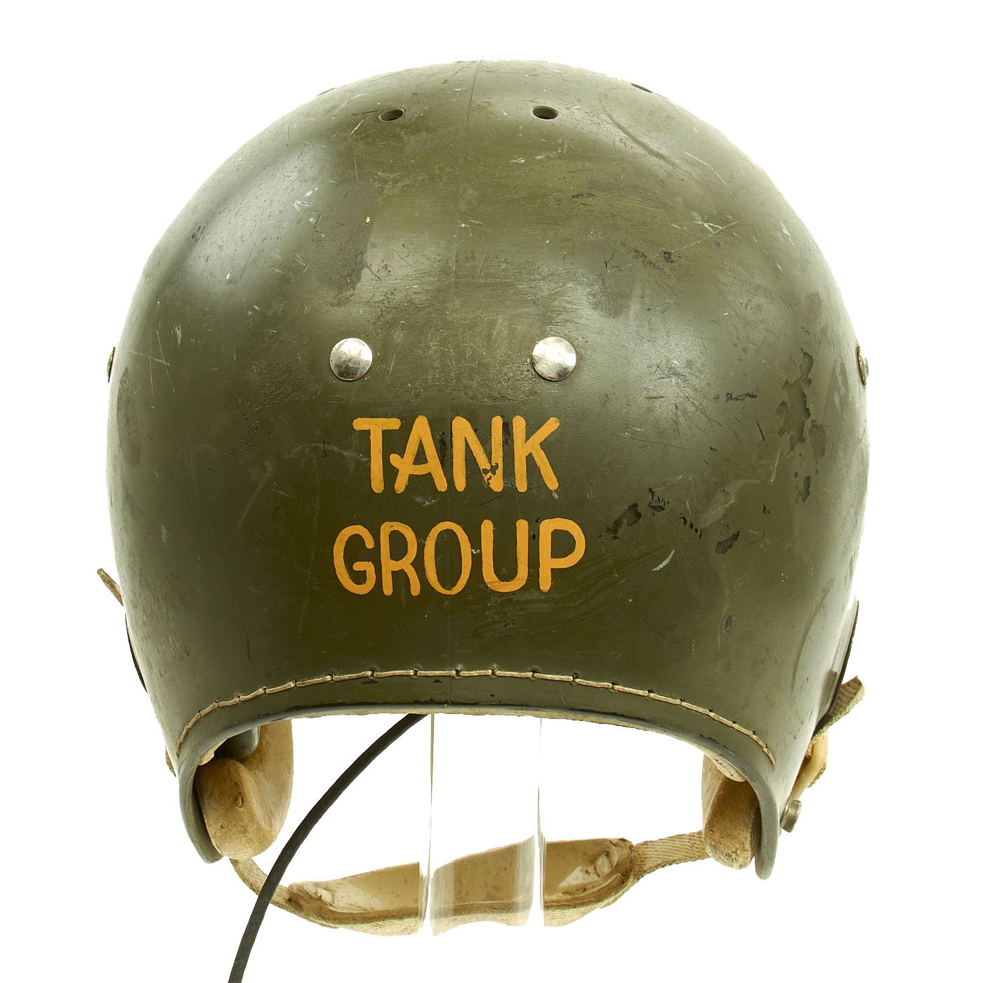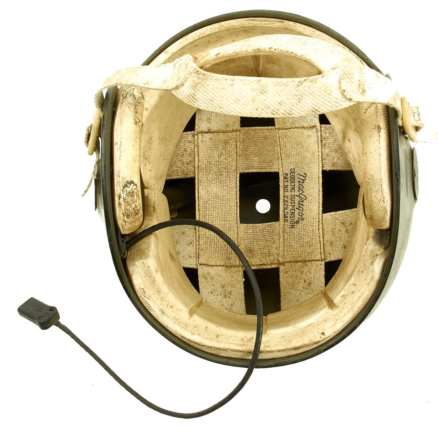 This helmet features original paint, a fantastic full color insignia to the front, TANK GROUP in paint on the reverse, MacGregor marked suspension liner, and wired ear phones. Offered in excellent condition.