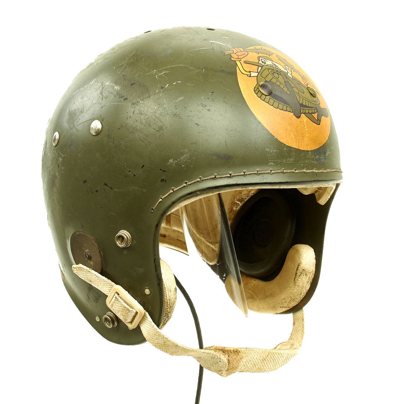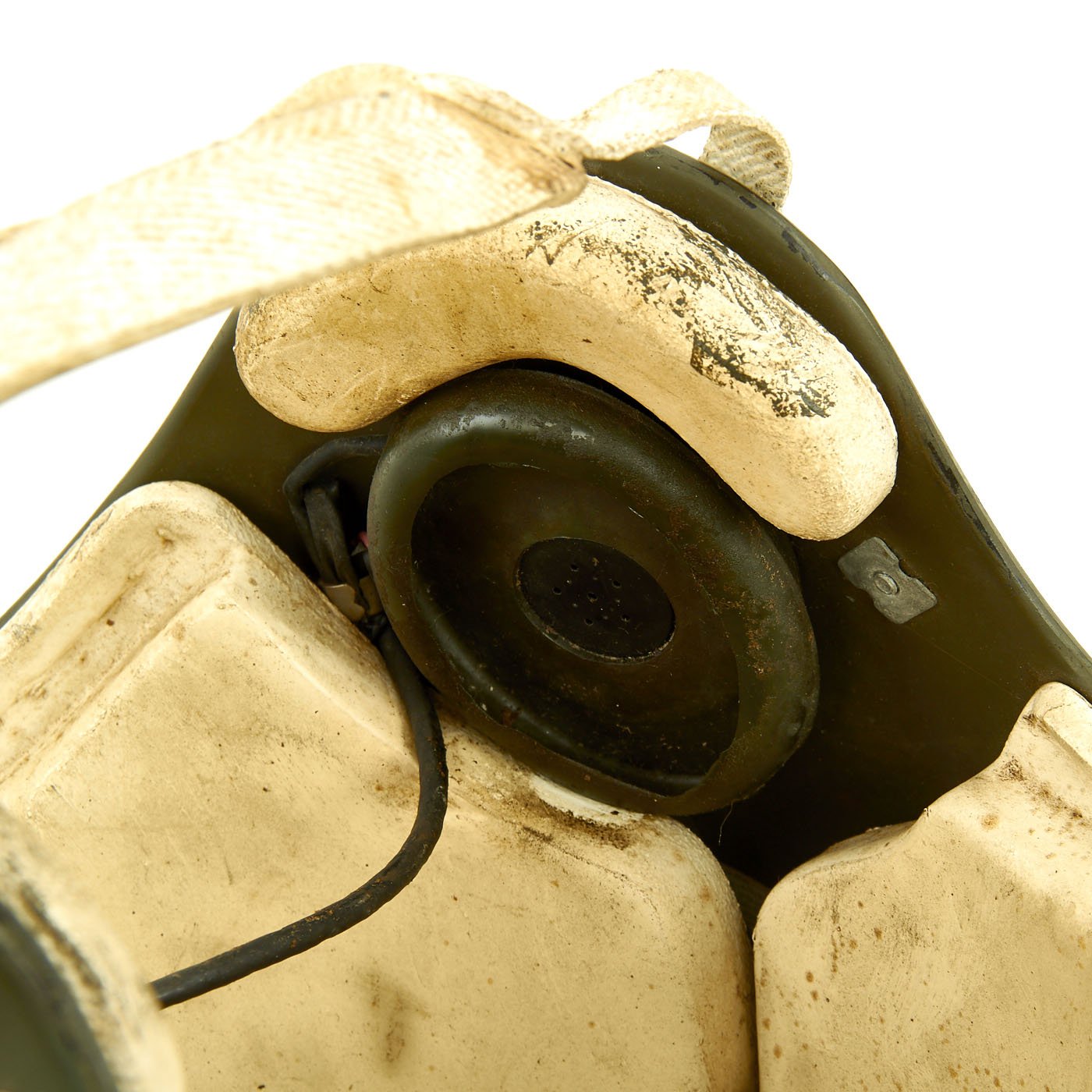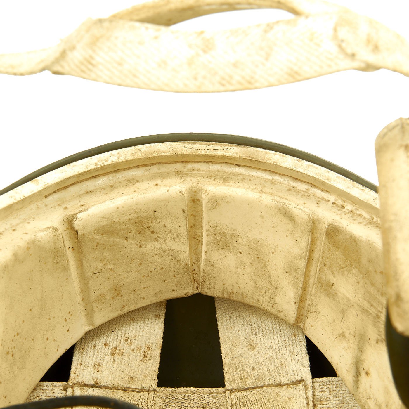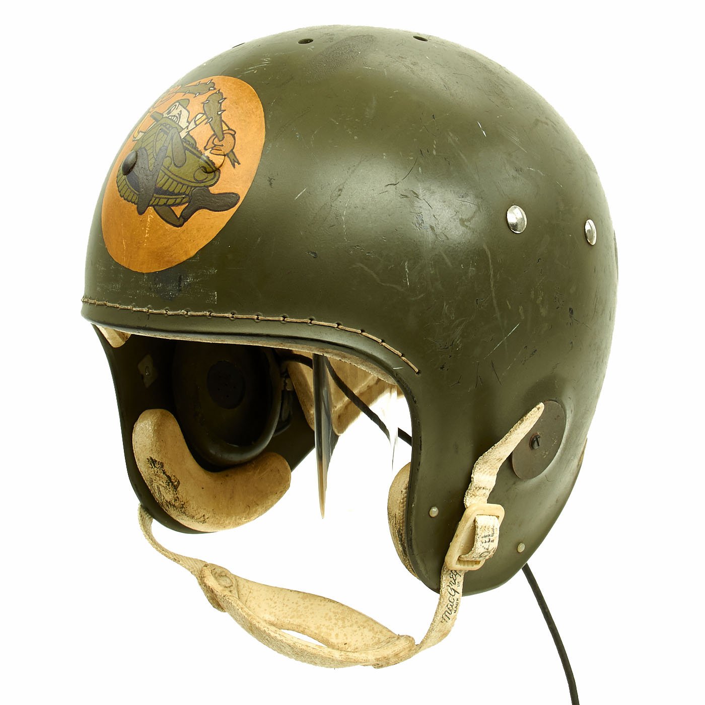 This helmet features original paint, a fantastic full color insignia to the front, TANK GROUP in paint on the reverse, MacGregor marked suspension liner, and wired ear phones. Offered in excellent condition.