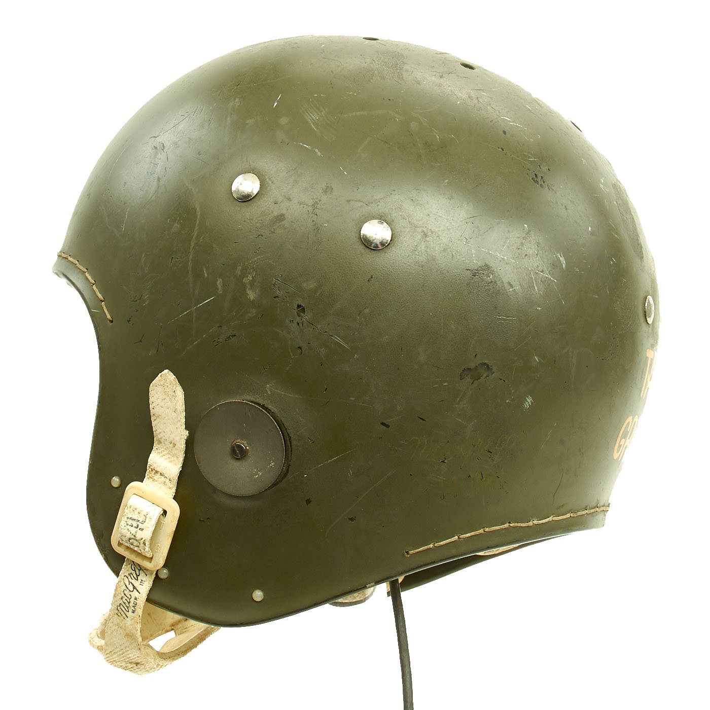 Original Item: Only One Available. Commercial football helmets were very popular with the Army for a variety of functions, through the 1950's and early 1960's. The airborne paratroopers used them in jump training and the Armored School used them for tank training as well. A wide variety of brand name helmets were widely used by active duty armor units due to the delays in testing and approving the T56-6 combat vehicle crewman's helmet. The T56-6 would not be fielded until 1961 so throughout the 50's the Army needed something to augment the dwindling stores of the WWII Rawlings Pattern tank helmet.