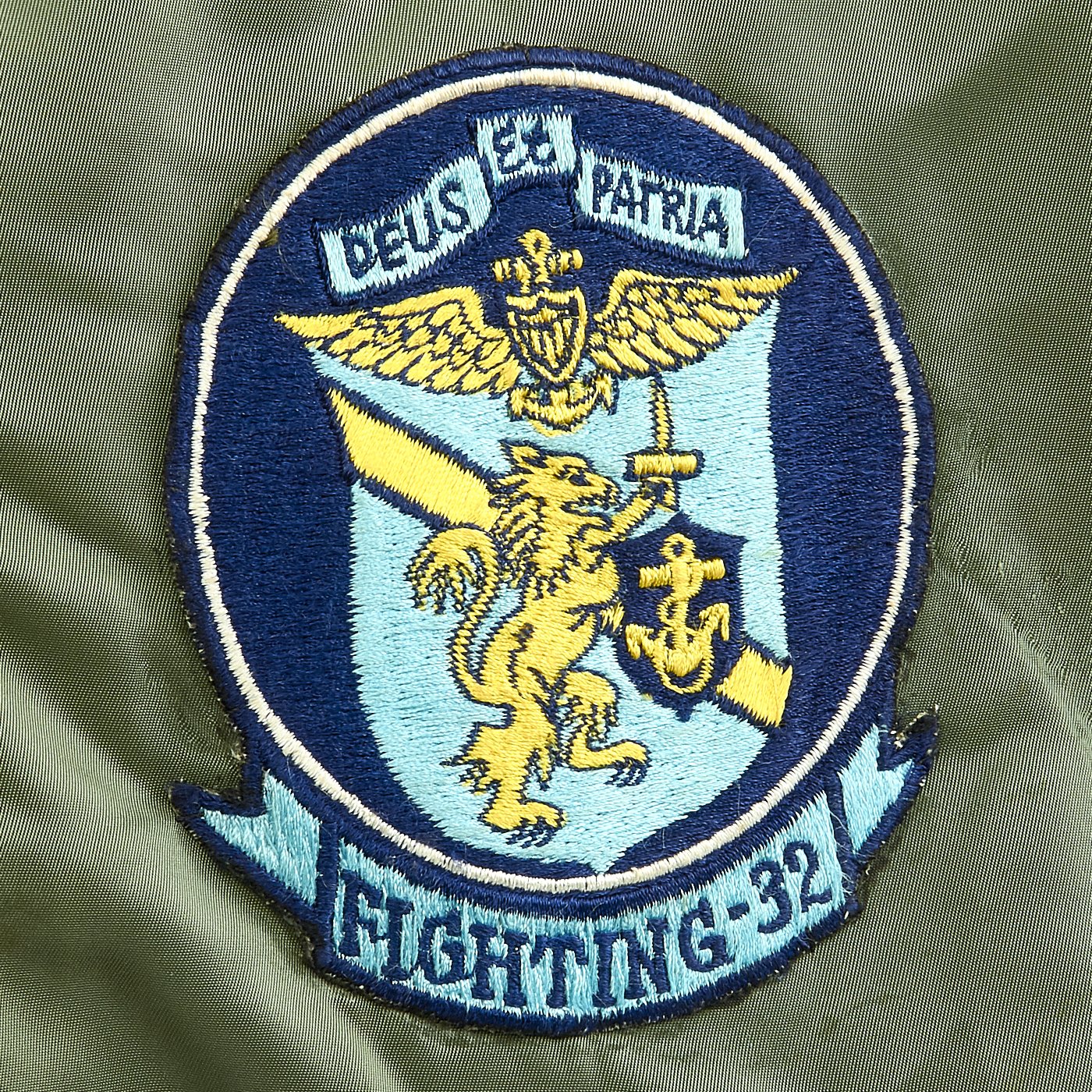 Originally, the squadron used the Fighting Three Felix the Cat symbol and called themselves the "Crazy Cats" because so many pilots were from Fighting Three. At one time, the squadron was known as the "White Lightning." In 1950, the squadron adopted the insignia of a traditional heraldry lion under Naval Aviation wings of gold and the motto "Deus et Patria" that has endured with only slight modernization through today. The VF-32 squadron radio callsign is "Gypsy" and most alumni refer to themselves as "Gypsies". The squadron picked up the nickname Swordsmen after it switched to the F-8 Crusader and added a sword to the lion's hand.