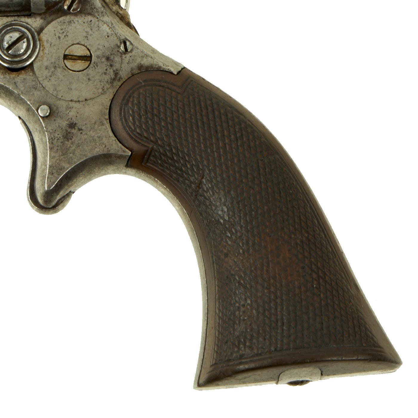 There were various different versions of the Model 3, with various finishes and types of grips. The "3C" has walnut grips, while this model 3A has what look to be brown "gutta percha" grips.