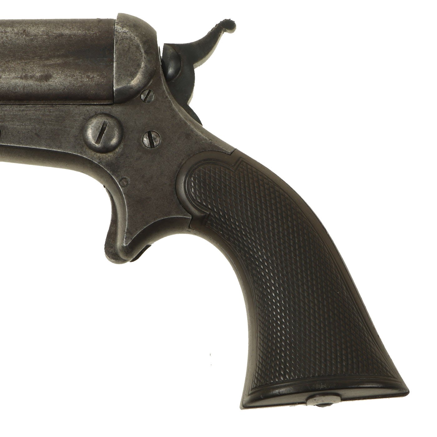 Original Item: Only One Available. This is exactly what the Mississippi gamblers carried on the River Boats after the Civil War for self protection. Featuring FOUR barrels, each in .32 Short Rimfire that fire individually by way of a single action hammer with a rotating internal firing pin. Easy to conceal due to the size and small "spur" style trigger, these were very popular.