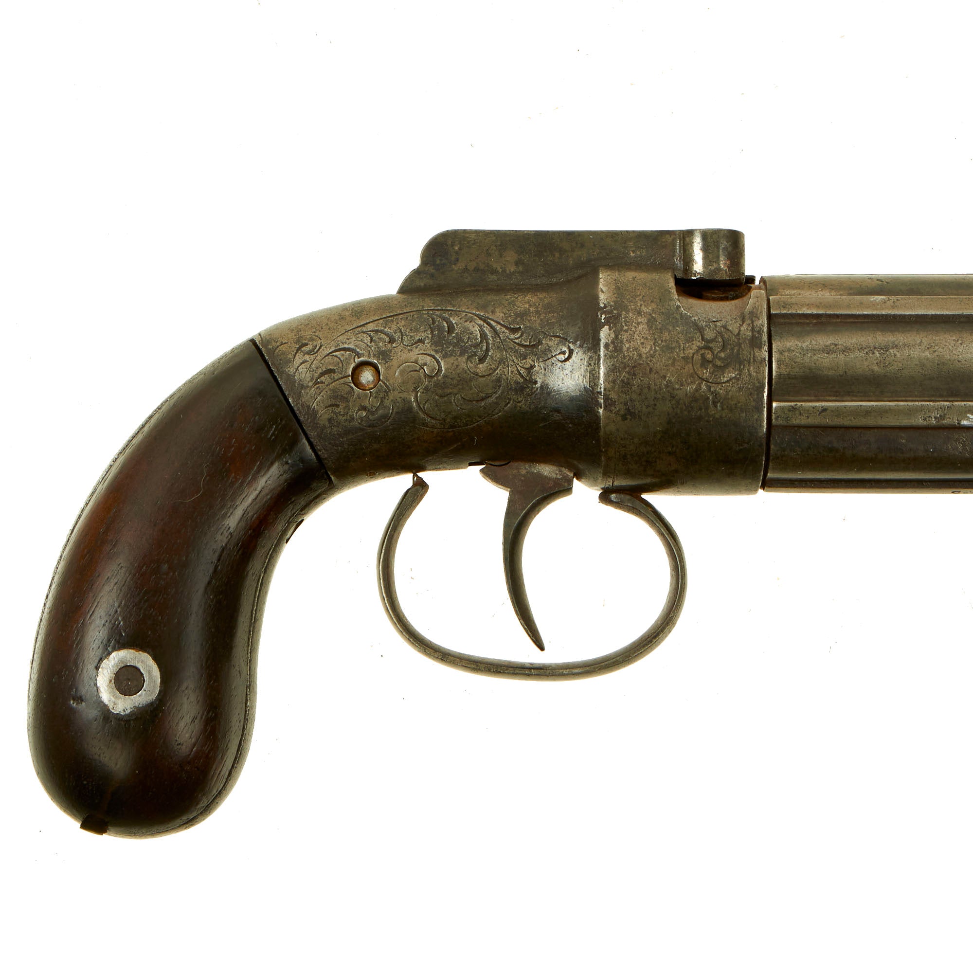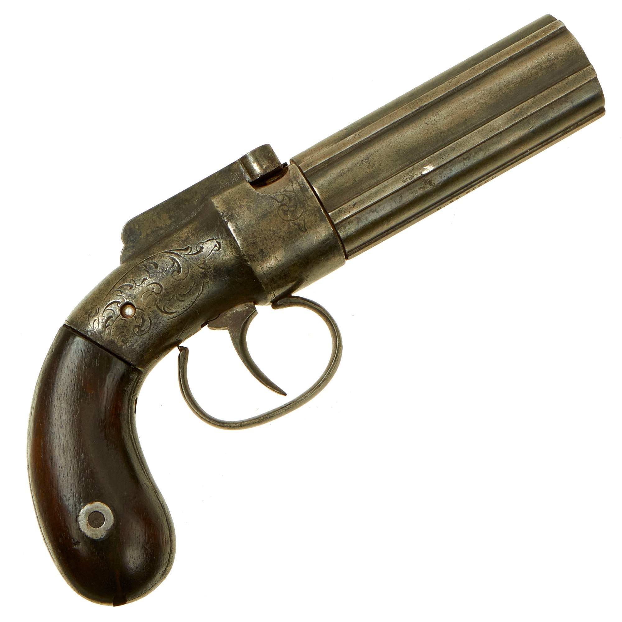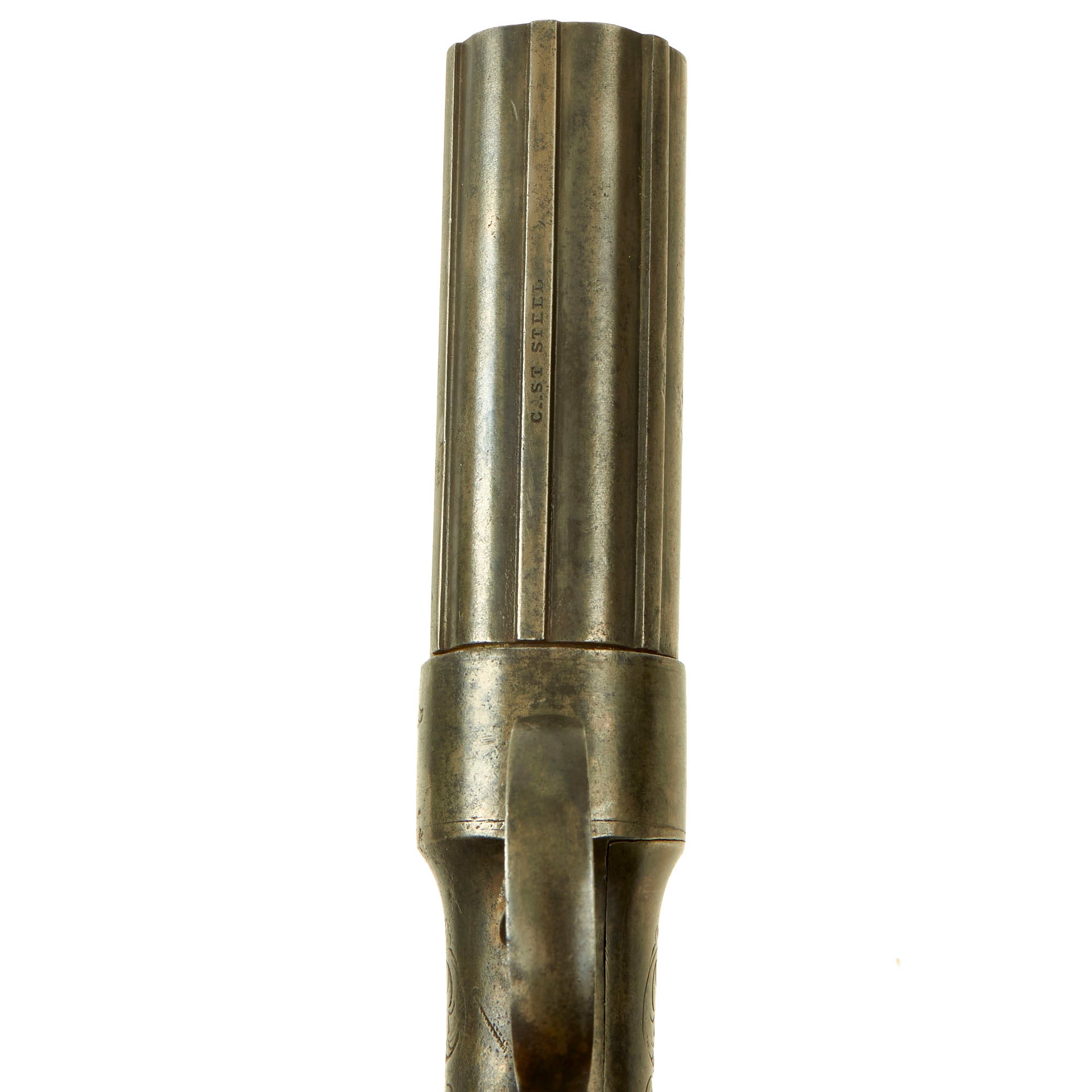 Original Item: Only One Available. Recently acquired at a military auction, this is a very nice condition American manufactured Pepperbox percussion pistol utilizing the 1849 patent of William W. Marston. Many similar guns were manufactured in New York by Sprague & Marston sometime between 1850 and 1859. However, W.W. Marston also produced guns under other trade names, including The Washington Arms Co. and others such as D.D. Cone, Union Arms, and Phoenix Armory.