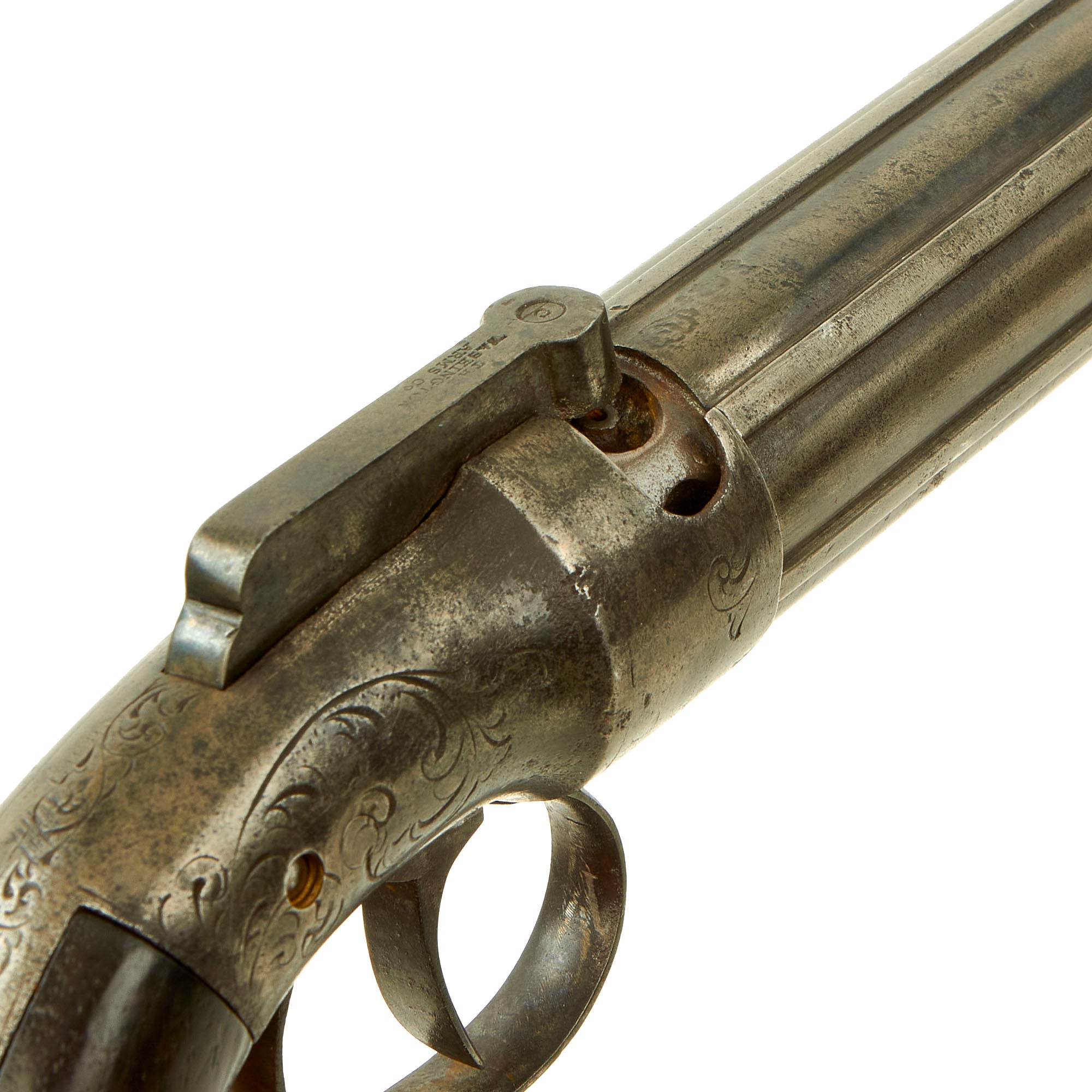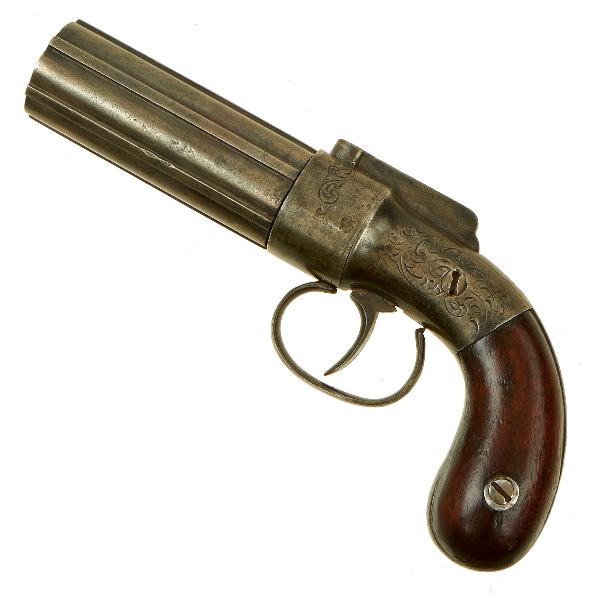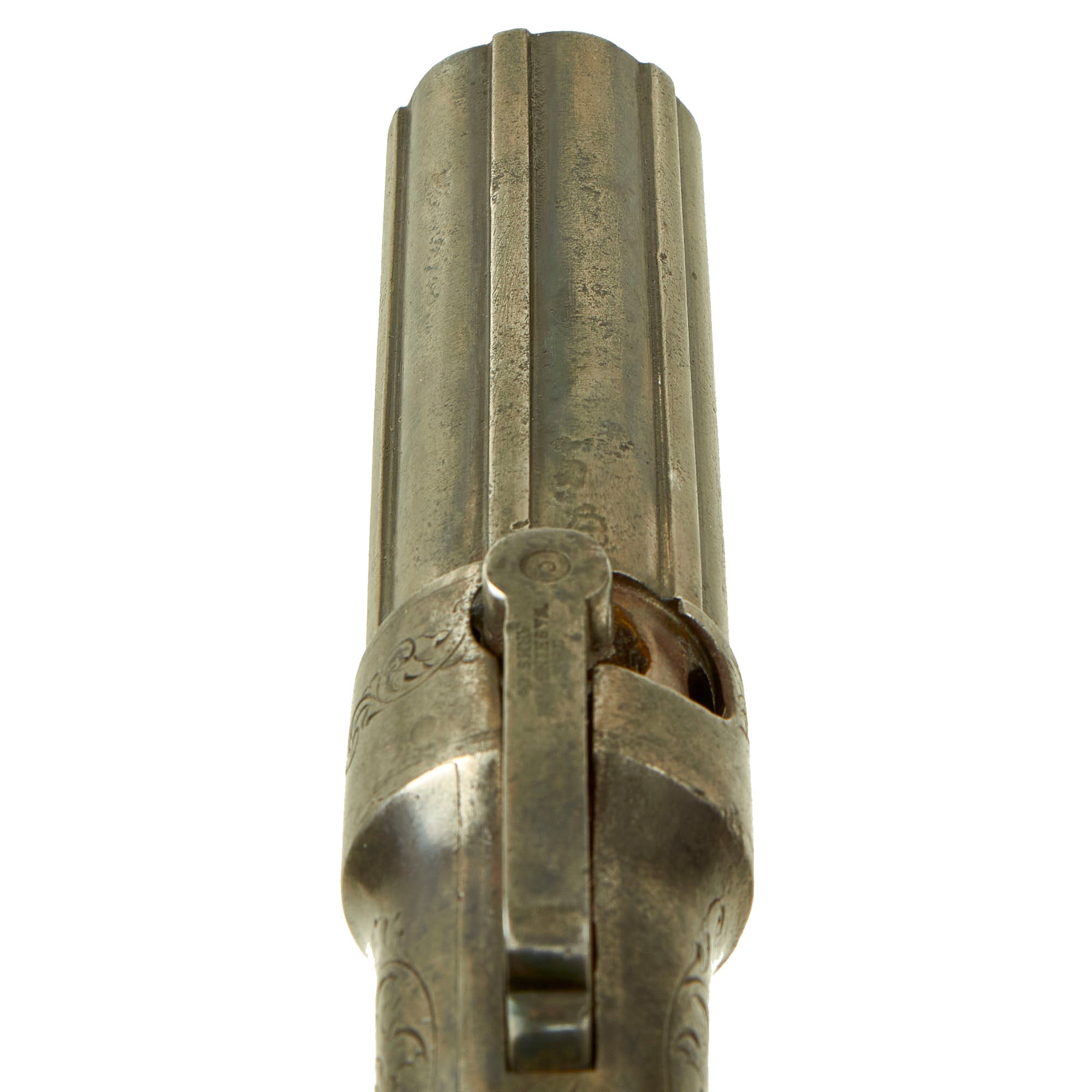 Original Item: Only One Available. Recently acquired at a military auction, this is a very nice condition American manufactured Pepperbox percussion pistol utilizing the 1849 patent of William W. Marston. Many similar guns were manufactured in New York by Sprague & Marston sometime between 1850 and 1859. However, W.W. Marston also produced guns under other trade names, including The Washington Arms Co. and others such as D.D. Cone, Union Arms, and Phoenix Armory.