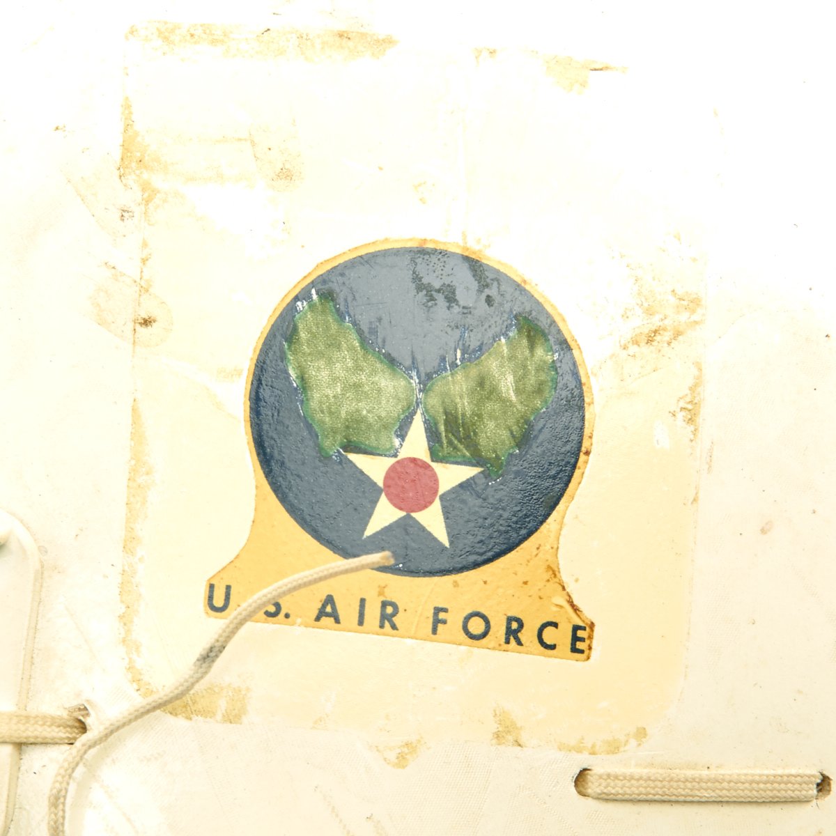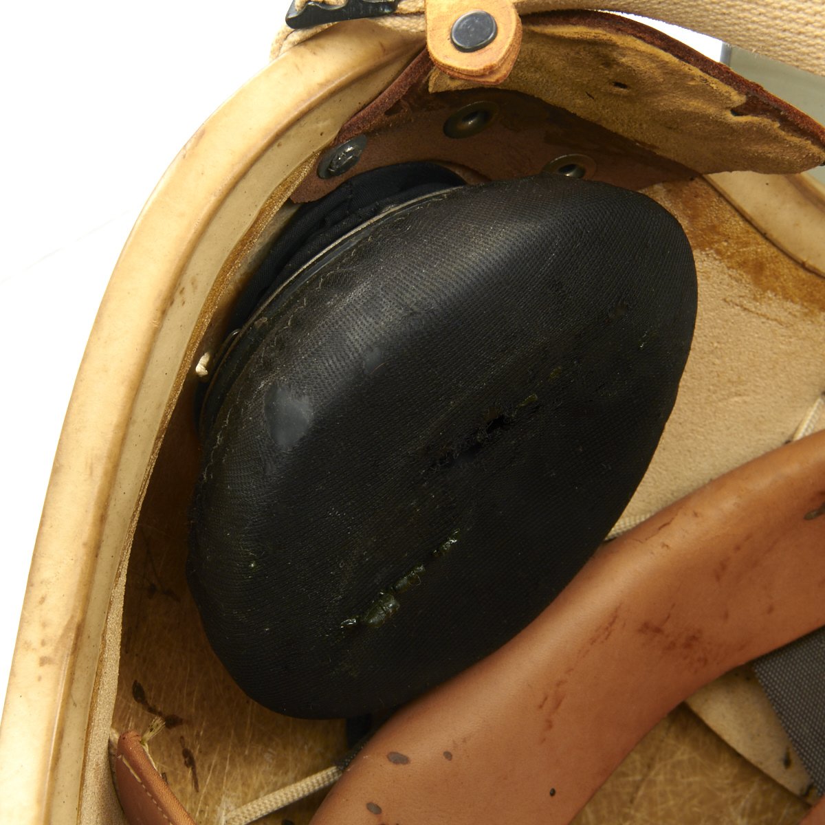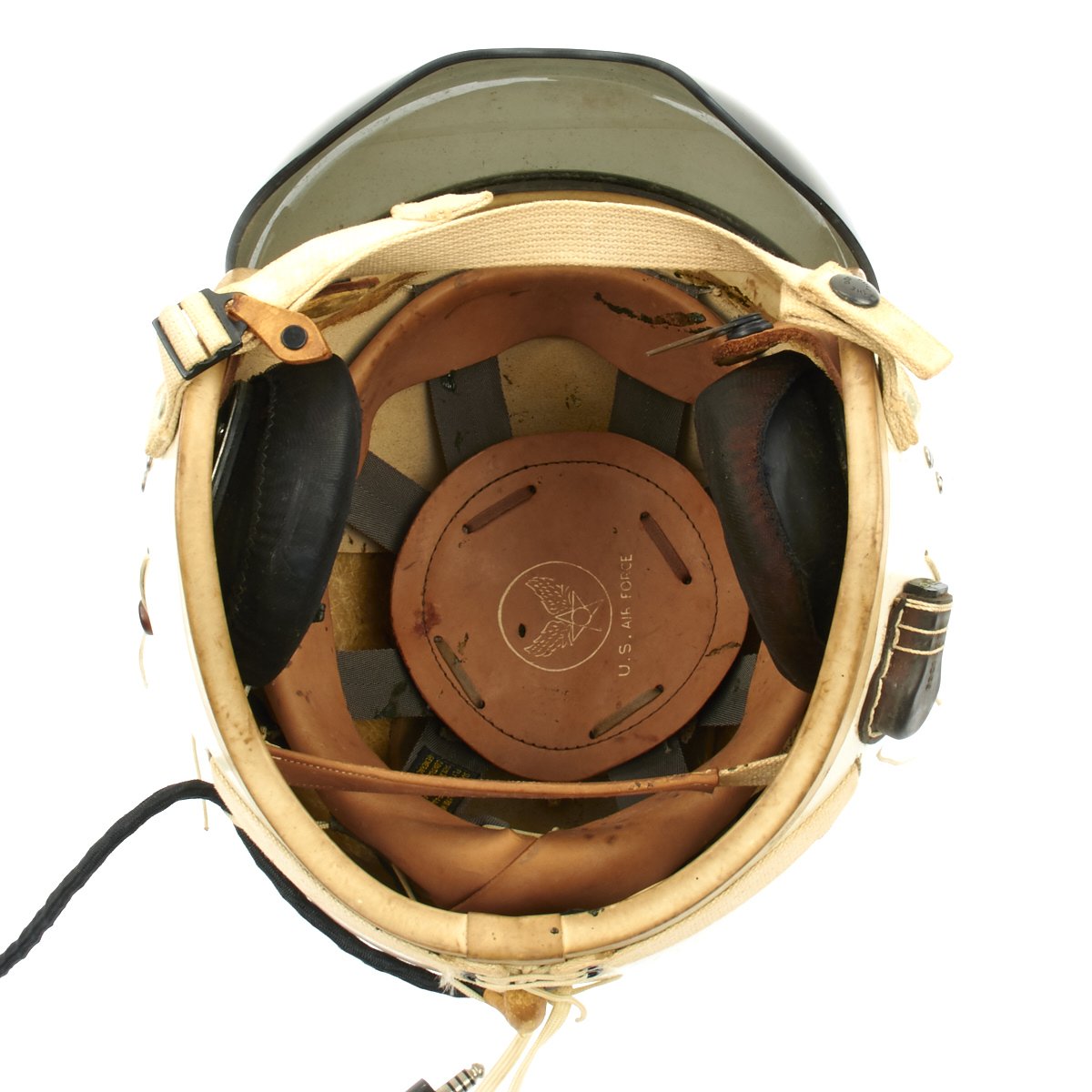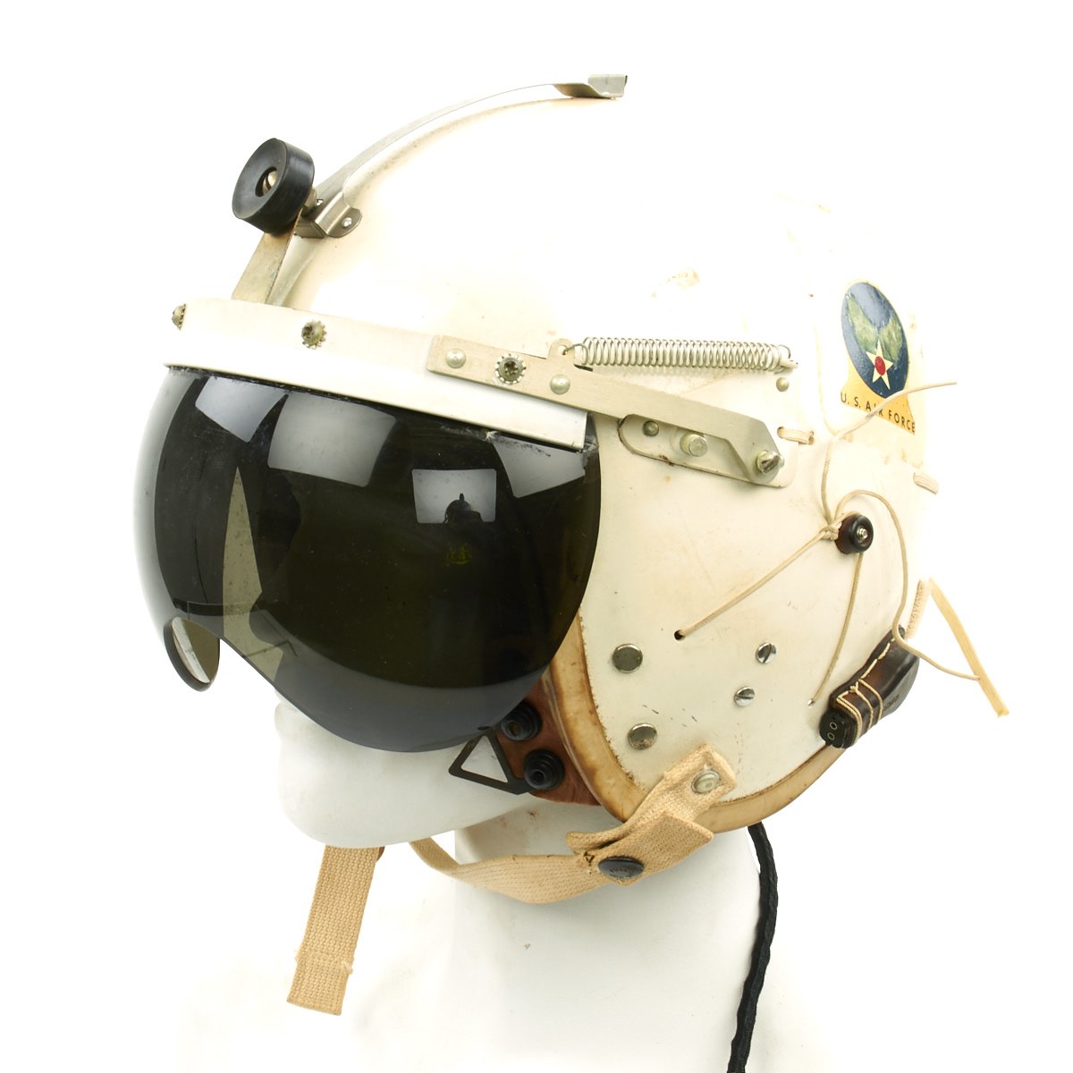 Original Items: Only One Available. This is an excellent condition complete 1957-1959 U.S. Air Force size extra large Gentex P-4A flight helmet that comes totally complete with internal receiver ear phones and pull down spring loaded tint visor. Helmet features original paint and with USAF wings insignia to side. All parts are in excellent condition. This is a rare complete helmet.