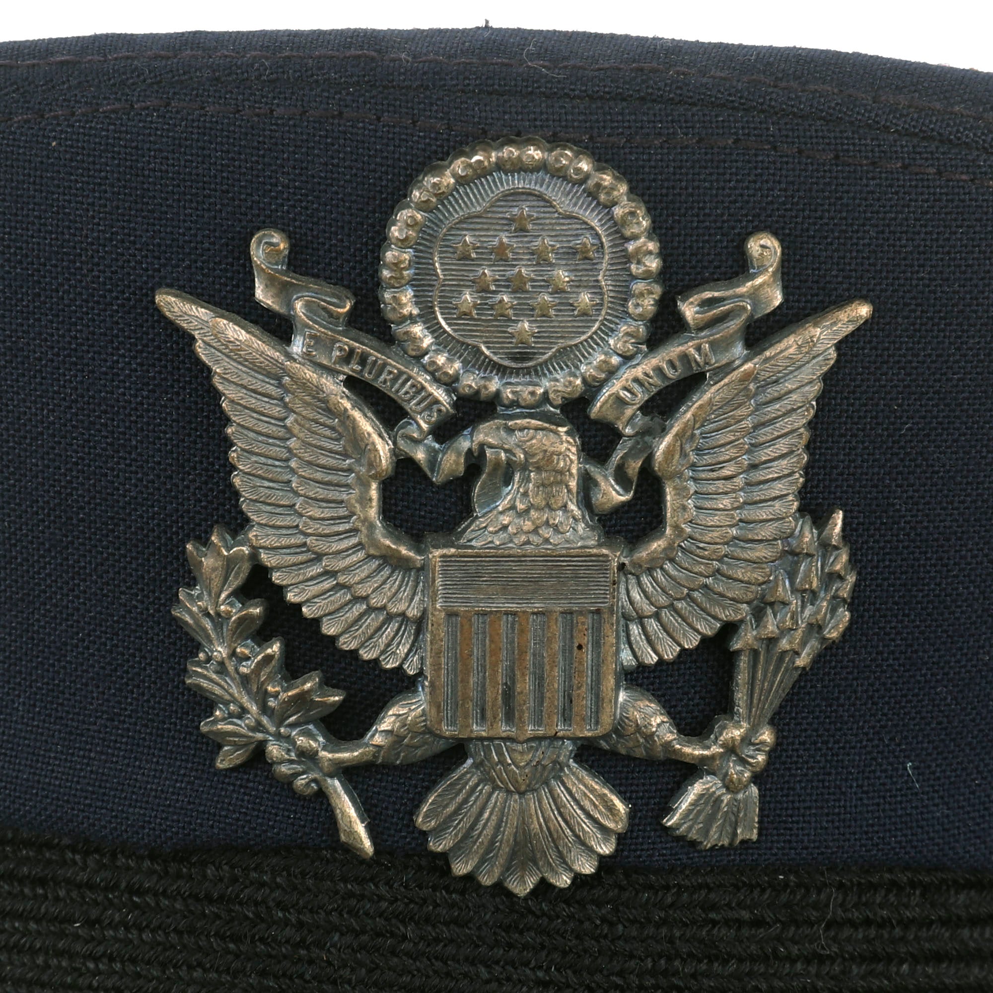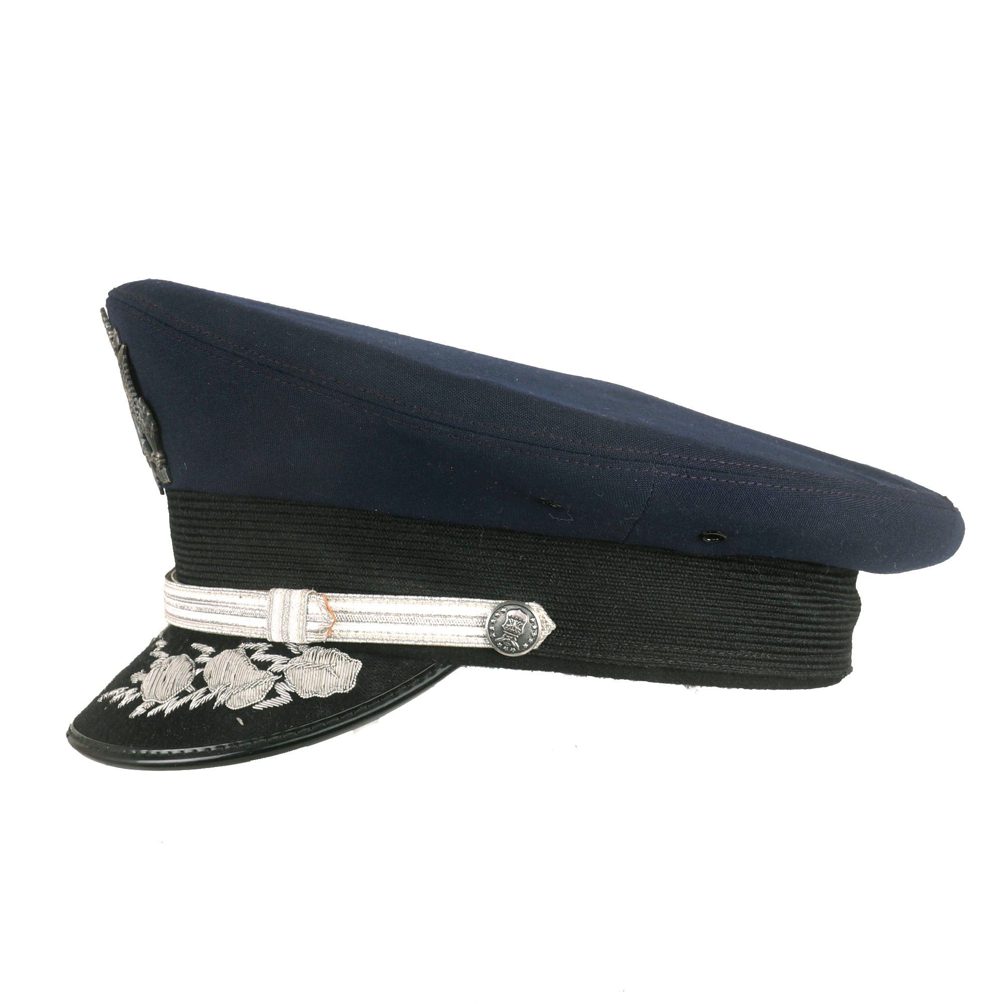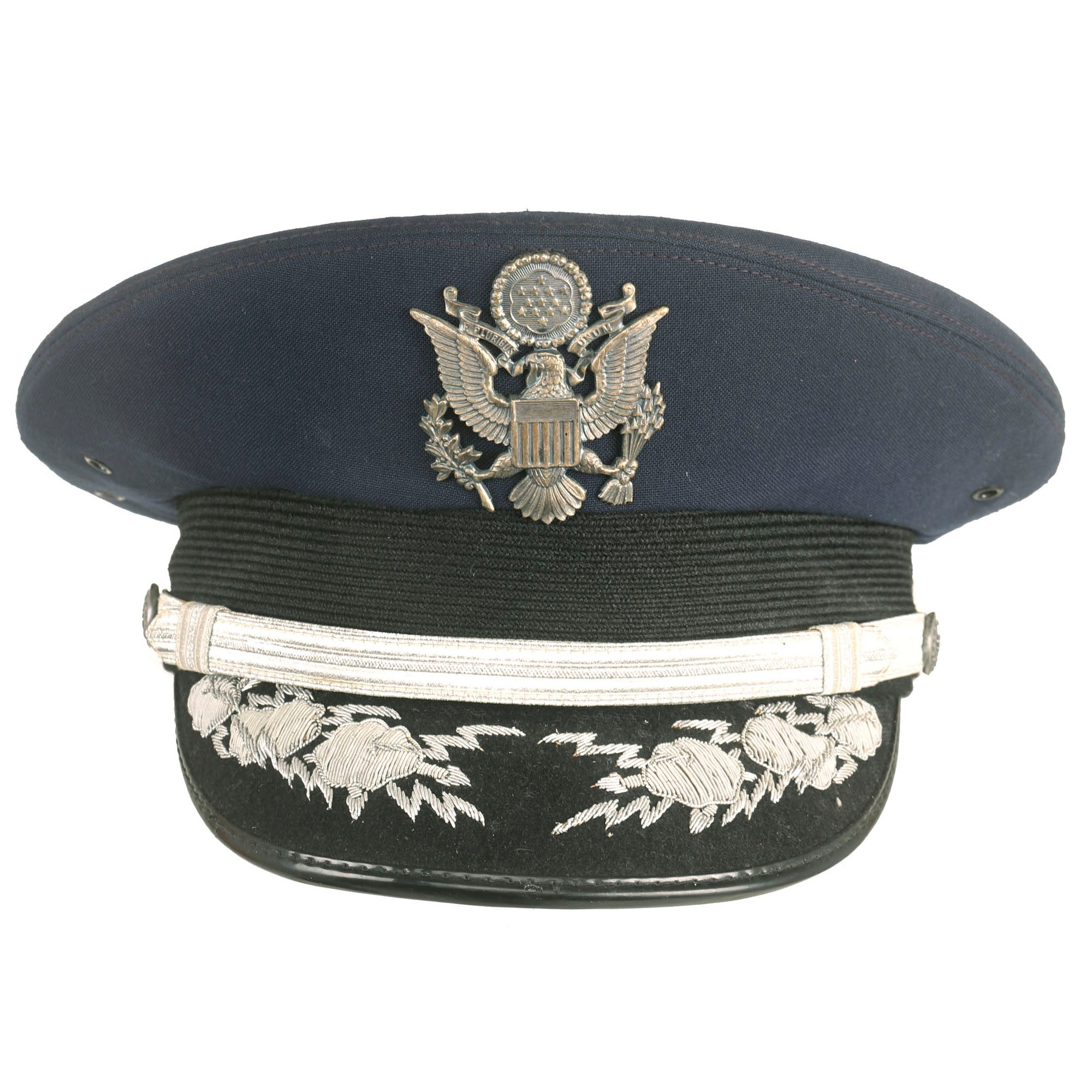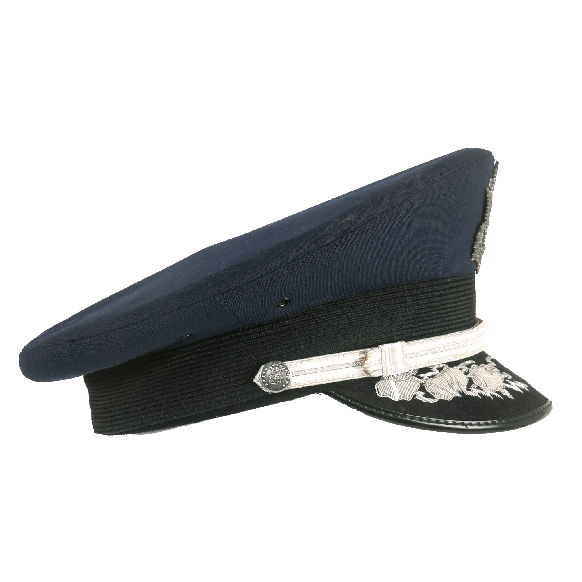 - Peaked Visor: Offered in a size 7 ⅛ and manufactured by Kingform Cap Deluxe of New York. Shows no signs of real wear and is not named to the General.