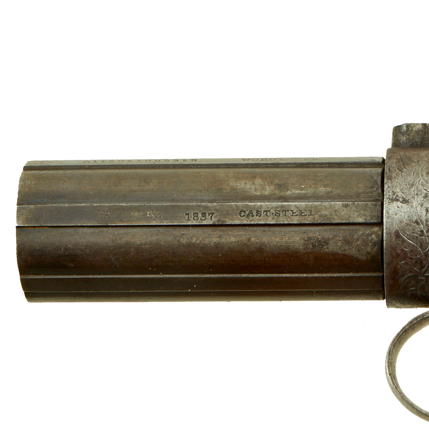 The company was known by various names over the years. From 1847 to 1854 it was known as Allen & Thurber (Worcester), so this pistol is from that period, before the patent renewal was granted. That probably puts production around 1847-48.