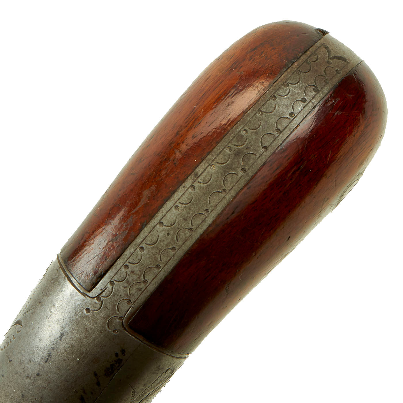 The frame has lovely decorative engraving throughout, on the flash guard as well as the side plates, and even the grip frame. The tube hammer is stamped: