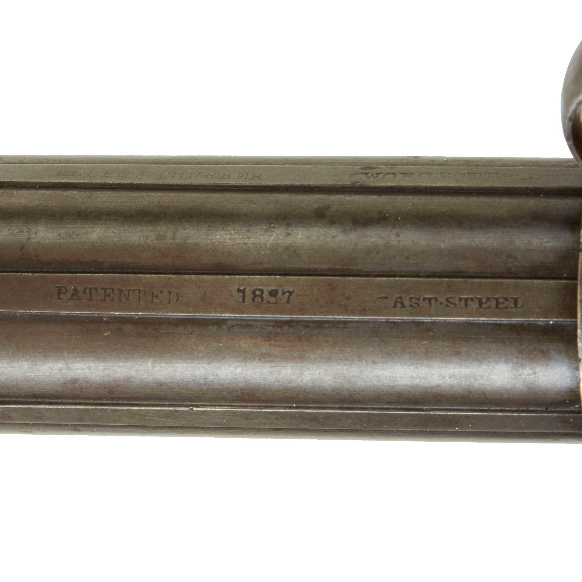 The company was known by various names over the years, and is identified by the markings on the cylinder. We estimate that this pistol was probably produced around 1843-1845, before the patent was renewed, early in the production after the move to Worcester. Ethan Allen later took into his business another brother-in-law, Thomas Wheelock, and later his two Sons-in-law, Sullivan Forehand and Henry Wadsworth, who continued the business after Ethan Allen's death in 1871. Most interesting that all these names have become an integral part of the U.S. arms industry.
