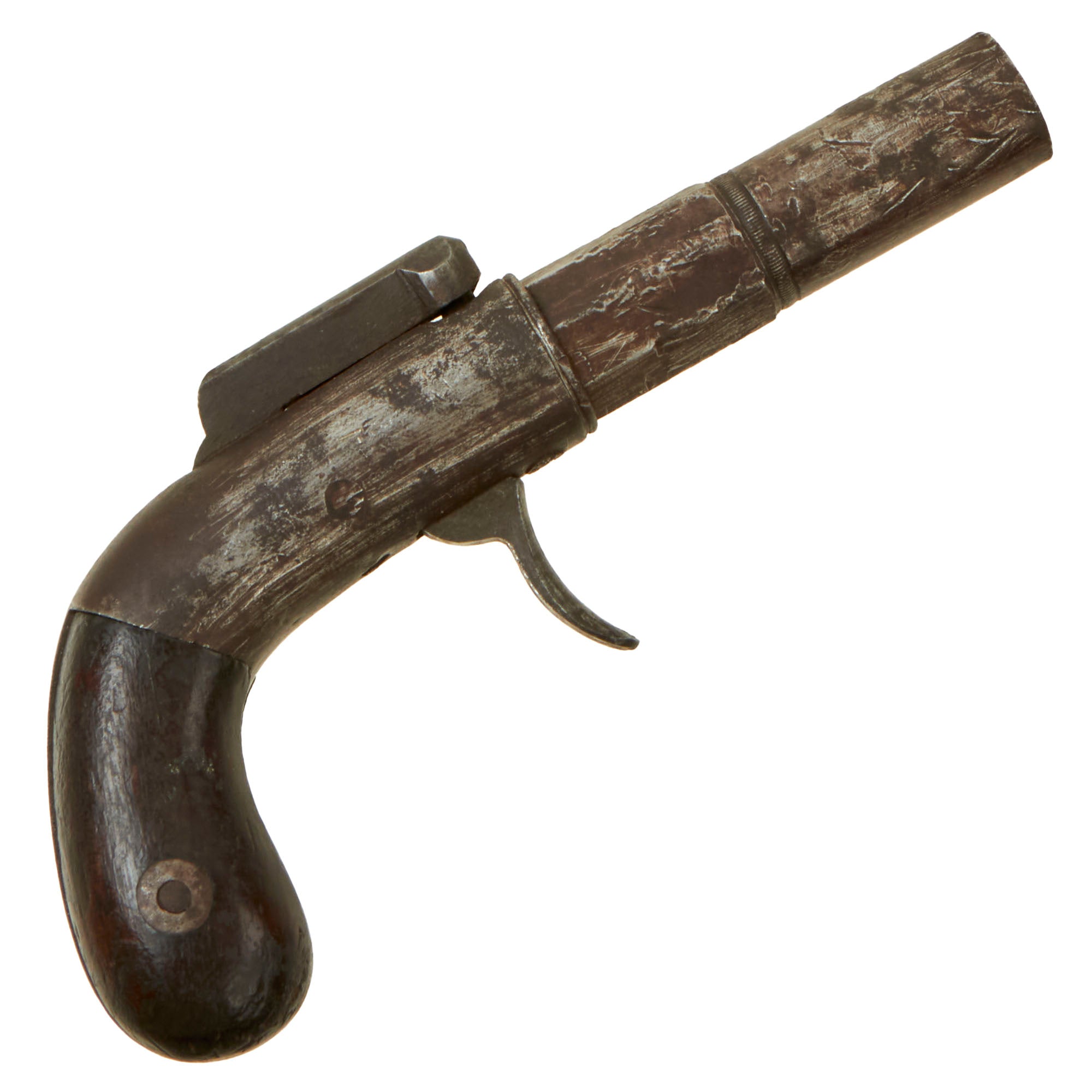 Original Items: Only Pair Available. This is a lovely single shot percussion "boot pistol", made circa 1840 for the U.S. Market by Ethan Allen of Massachusetts (1808-1871). Allen developed his Gun business by taking his brother-in-law Charles Thurber as his partner, originally setting up shop in Norwich, CT, which as a major gun making center at the time. They were one of the earliest makers of pistols in the city, and sources usually cite 1842 as when they began production, though some use 1835 as the start date. Ethan Allen, no relation to the Revolutionary Ethan Allen, had applied for various patents, most notably early on for a "TUBE HAMMER" ignition system in 1837, which was renewed in 1845 with significant improvements to the design. In 1847, the company moved the production plant to Worcester, Mass., and as before manufactured many quality pepperbox pistols.