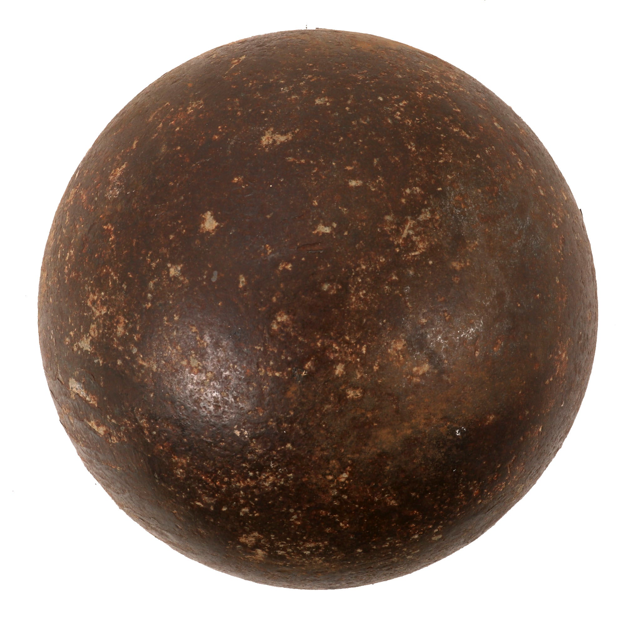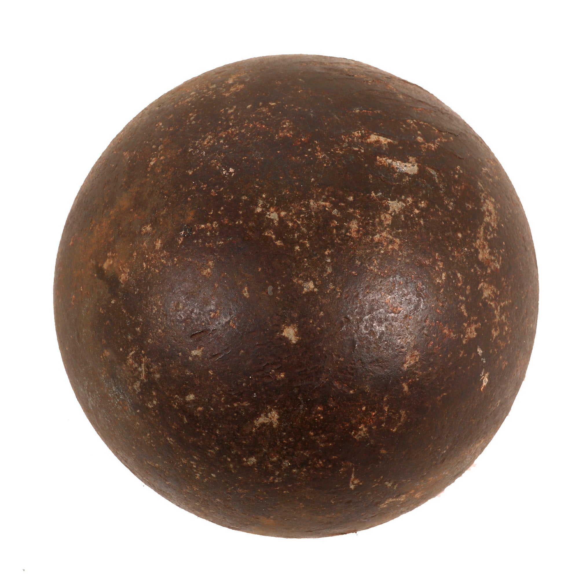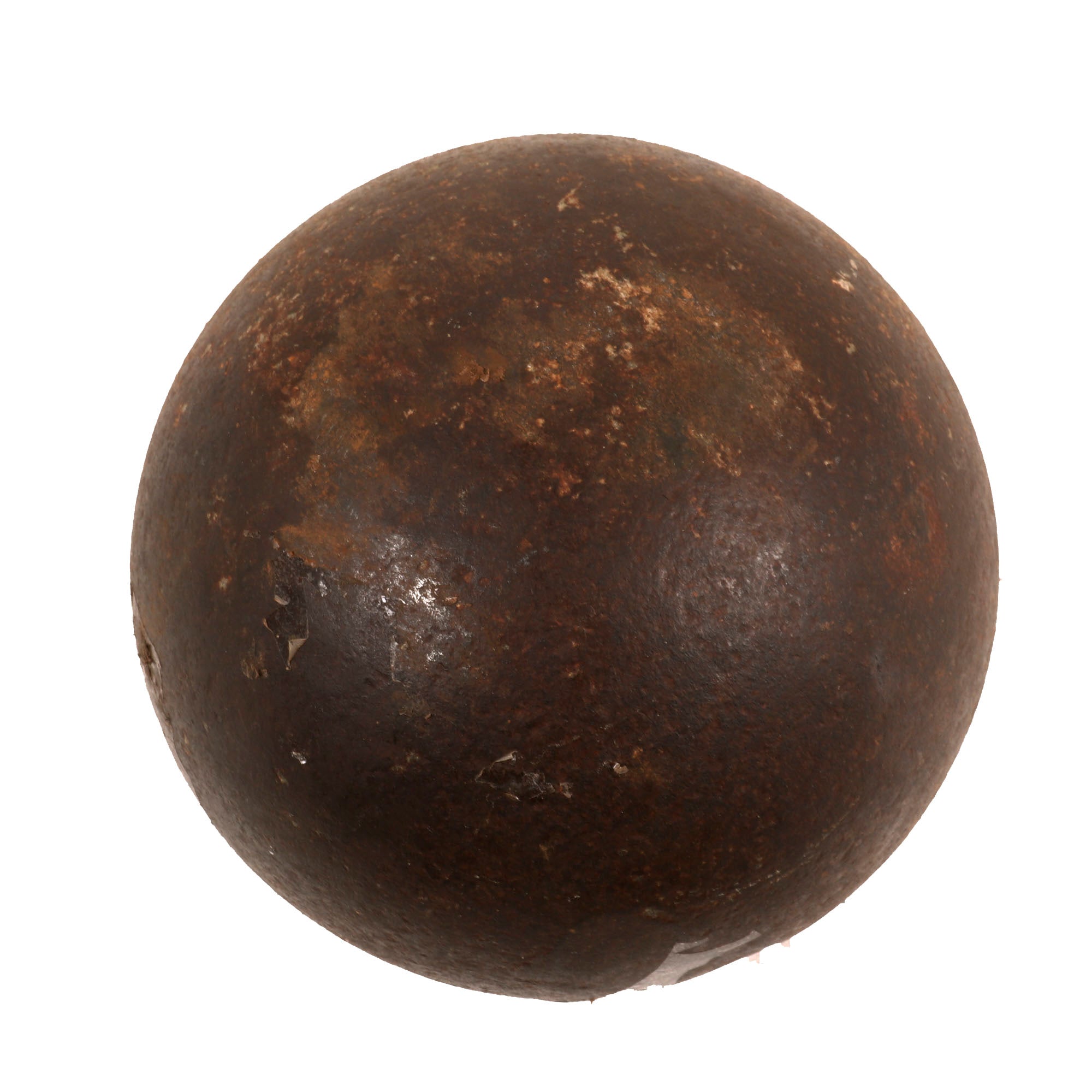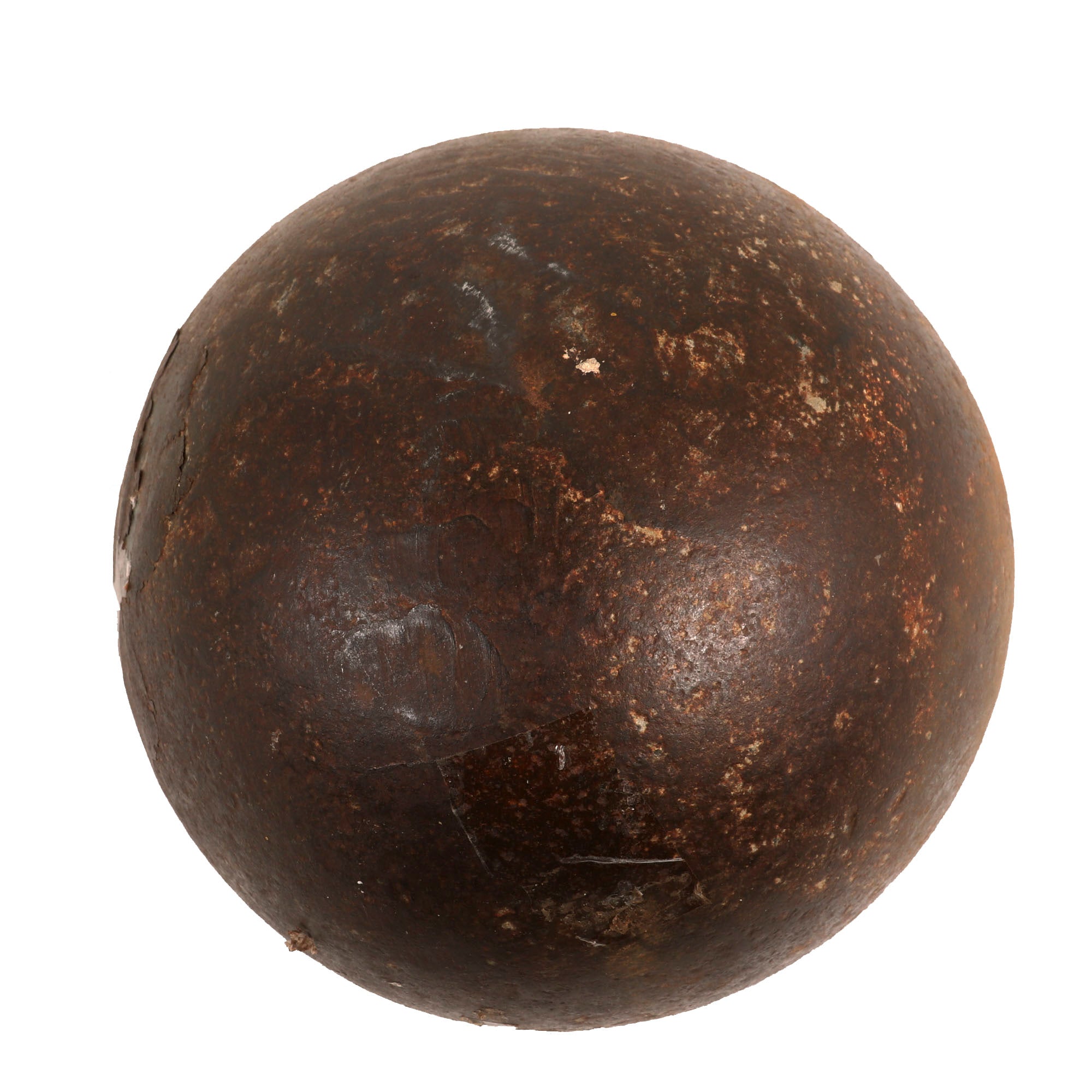 The cannonball is completely solid without any holes or fuzes. It is extraordinarily heavy and has some areas of material loss or what appear to be areas reinforced. A very interesting and oxidized example. Comes ready for further research and display.