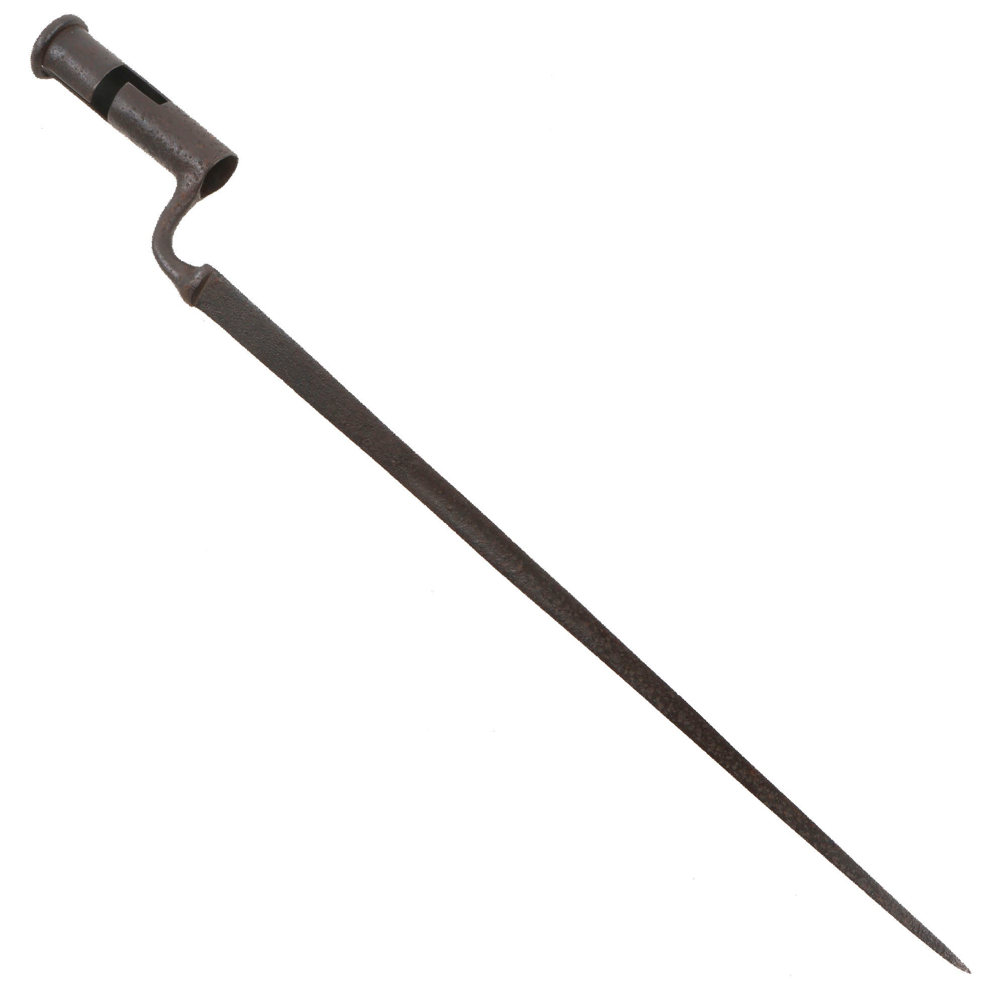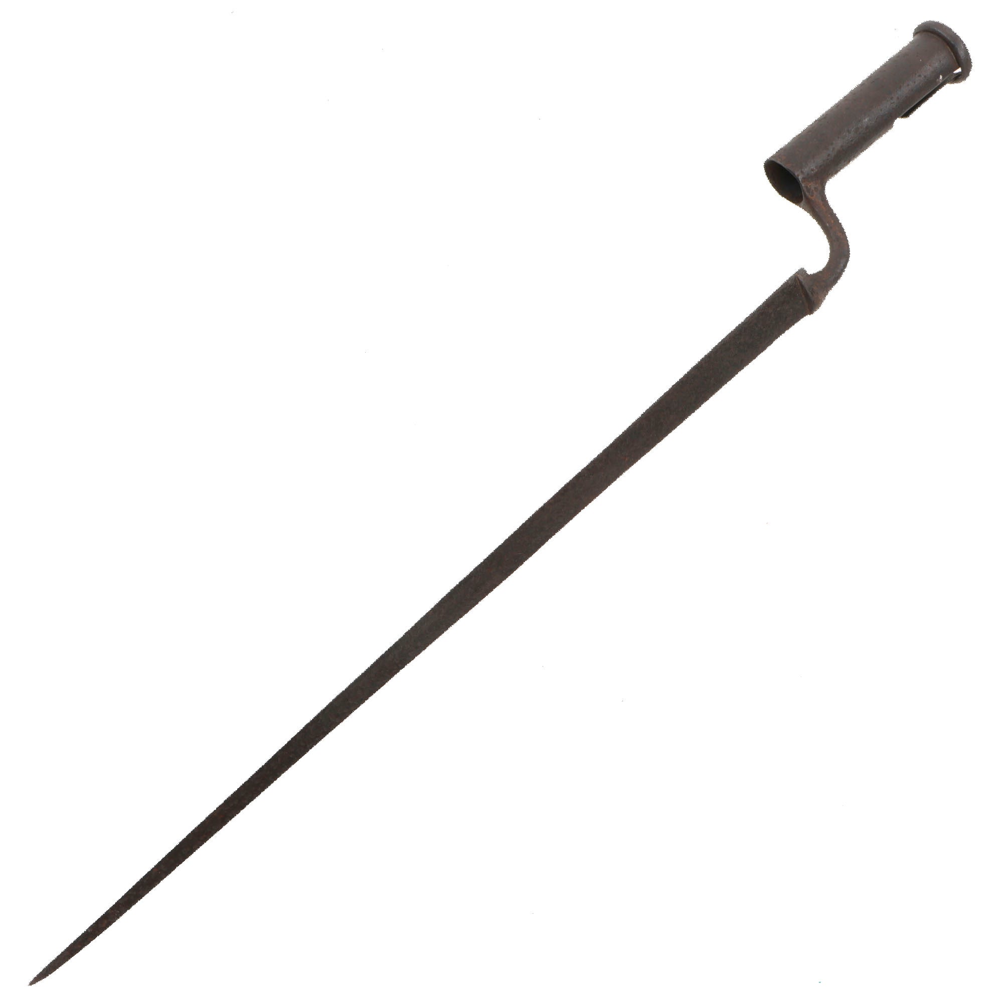 Original Item. Only One Available. This is a fine pitted example of a crude American-made socket bayonet in the Brown Bess style, dating to the 1770s. There are no existing markings and the construction is rather crude, perfect for this period and for early American manufacture. It was certainly American-made for a Brown Bess musket, which they used extensively during the war.