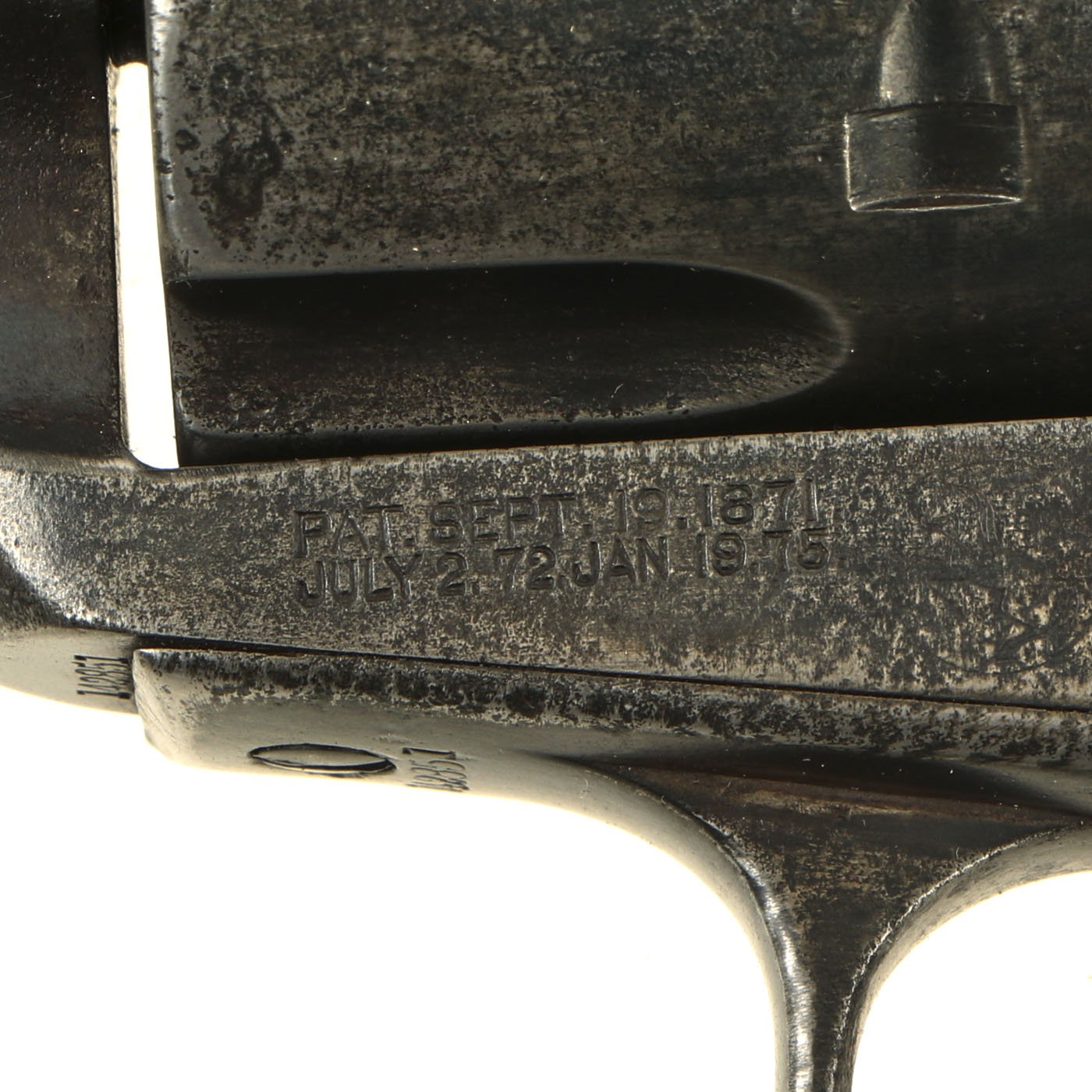 Colt considered these revolvers to be the same as the Single Action Army for record keeping, and they were grouped under the same serial number series. Between serial number 45000 and 65000, the "FRONTIER SIX SHOOTER" marking was etched onto the side of the barrel, but for many years it did not appear. This changed in 1889, when it returned, roll stamped onto all .44-40 versions of this revolver until the end of production.