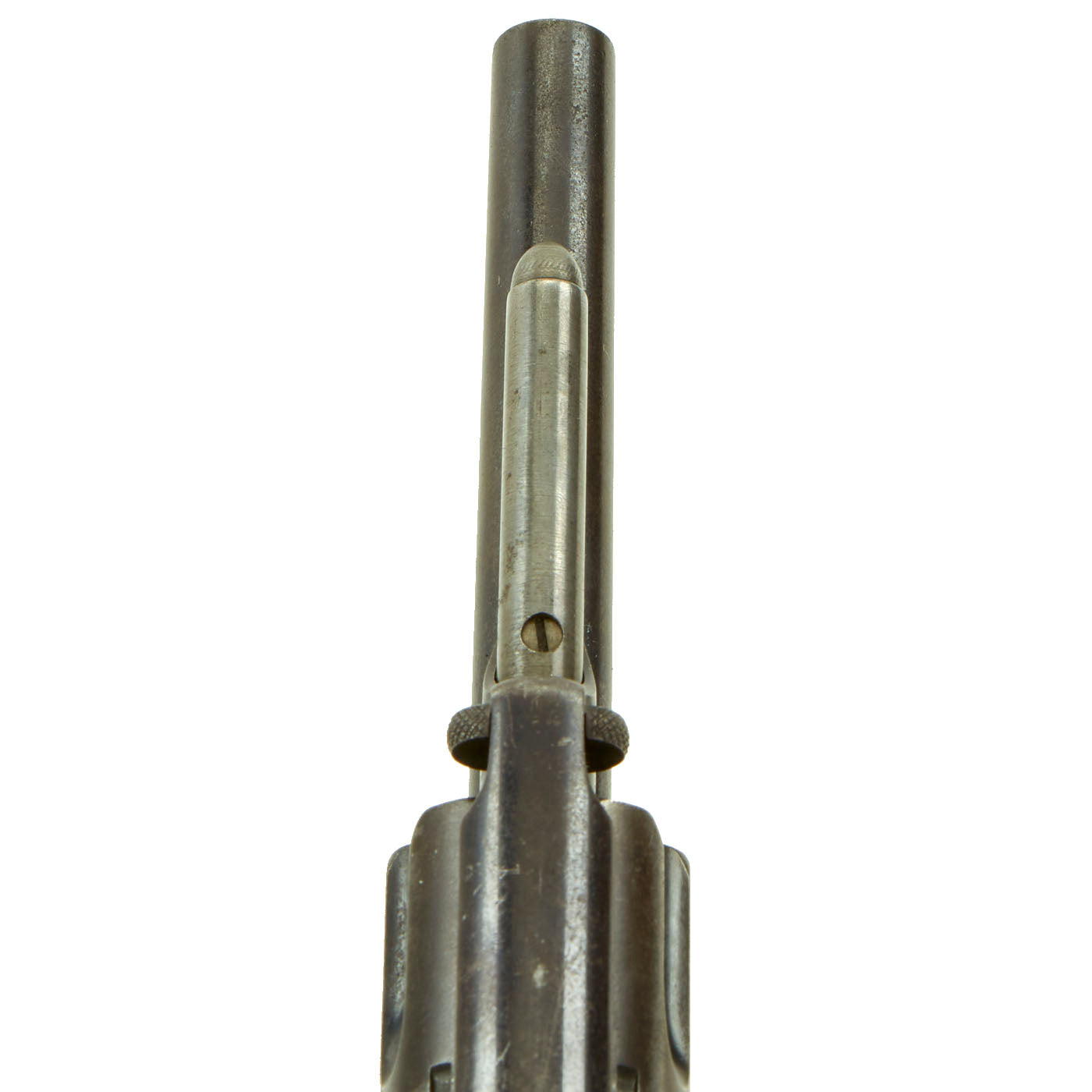 Overall condition is excellent, and honestly the best that we have ever seen. It must have spent a good time of its life in a desk drawer, unused for over 100 years. The barrel and frame have the bluing retained at 90%+, with a bit less on the cylinder due to wear. Most 1 1/2's lack much original blue across the barrel and cylinders. This is either due to heat expansion from firing which caused the blue to flake or uncleaned fingerprints from the owner grabbing hold of the barrel to tip-up and reload the cylinder. Either way, very few have survived with this much original finish still intact.