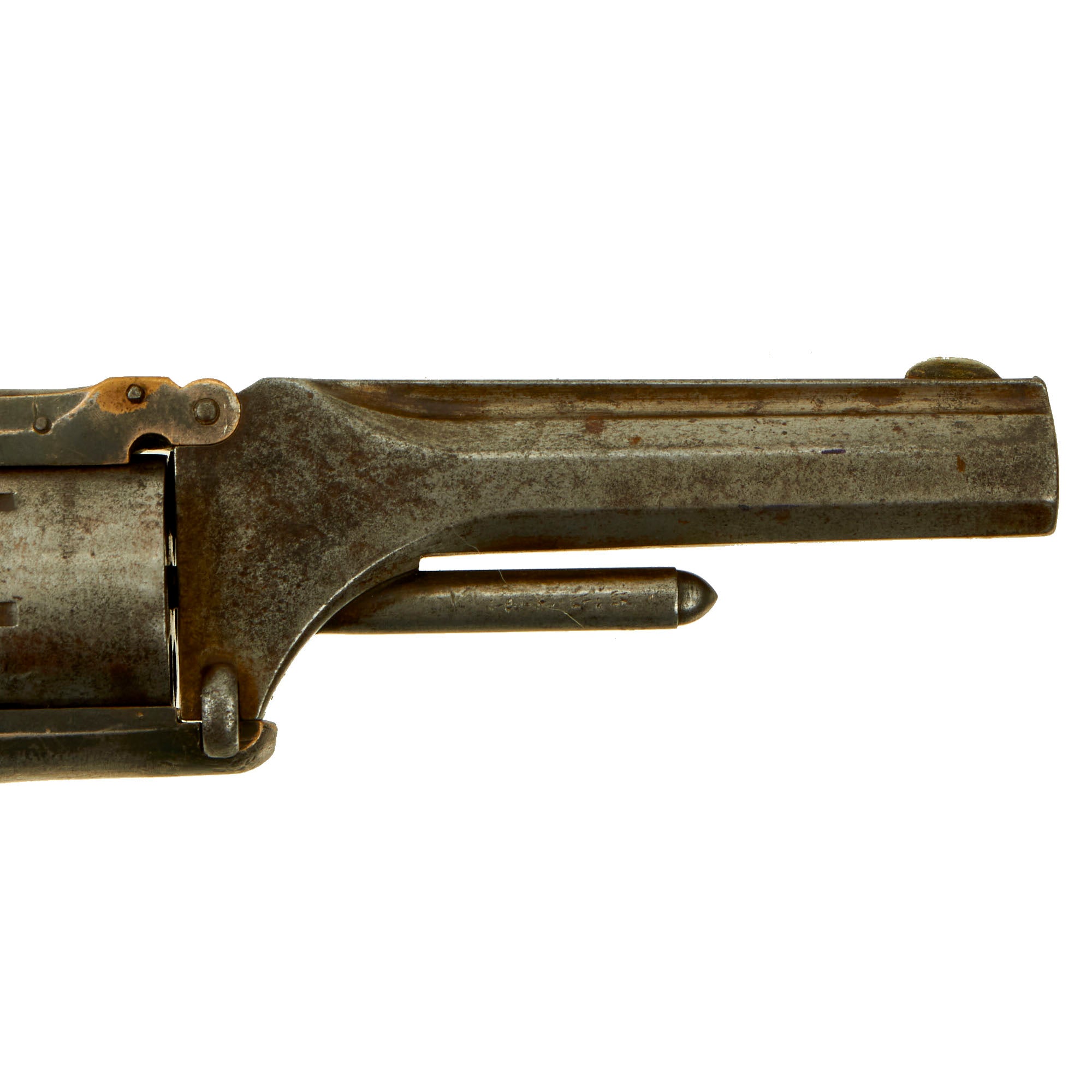 Original Item: Only One Available. The Smith & Wesson Model 1 was the first firearm manufactured by Smith & Wesson, with production spanning the years 1857 through 1882. It was the first commercially successful revolver to use rimfire cartridges instead of loose powder, musket ball, and percussion caps. It is a single-action, tip-up revolver holding seven .22 Short black powder cartridges. During the production run it was issued 3 times, with significant changes to each revision.