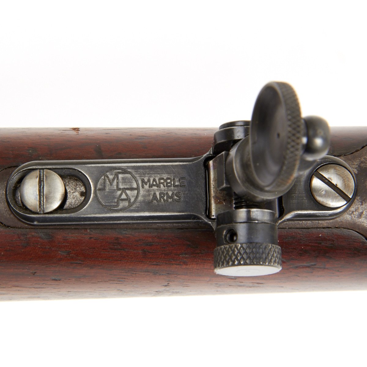 Features an octagonal barrel of 25 3/8" with an absolutely beautiful bore. Fitted with "MARBLE'S" folding tang sight with regular rear sight slot properly blocked off.