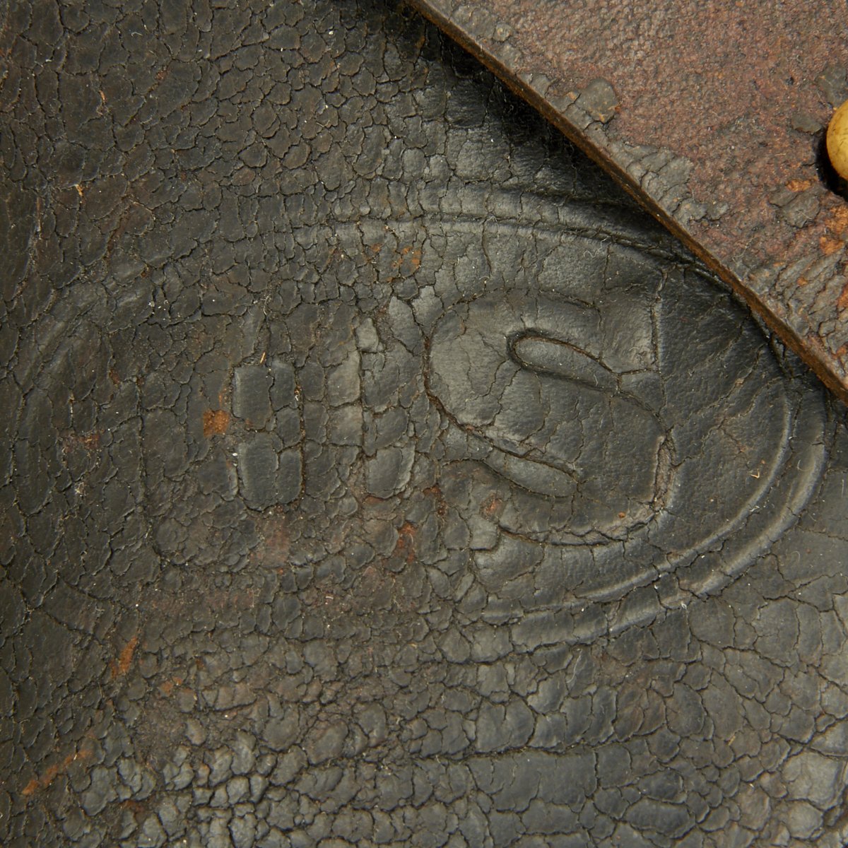 The body of the heavy stitched leather holster is clearly stamped with U.S, in an oval indicating government ownership. The holster is "left handed" in that it is designed to be carried on the right hip butt forward for easy access by the left hand. Your right hand was reserved for your Cavalry saber.