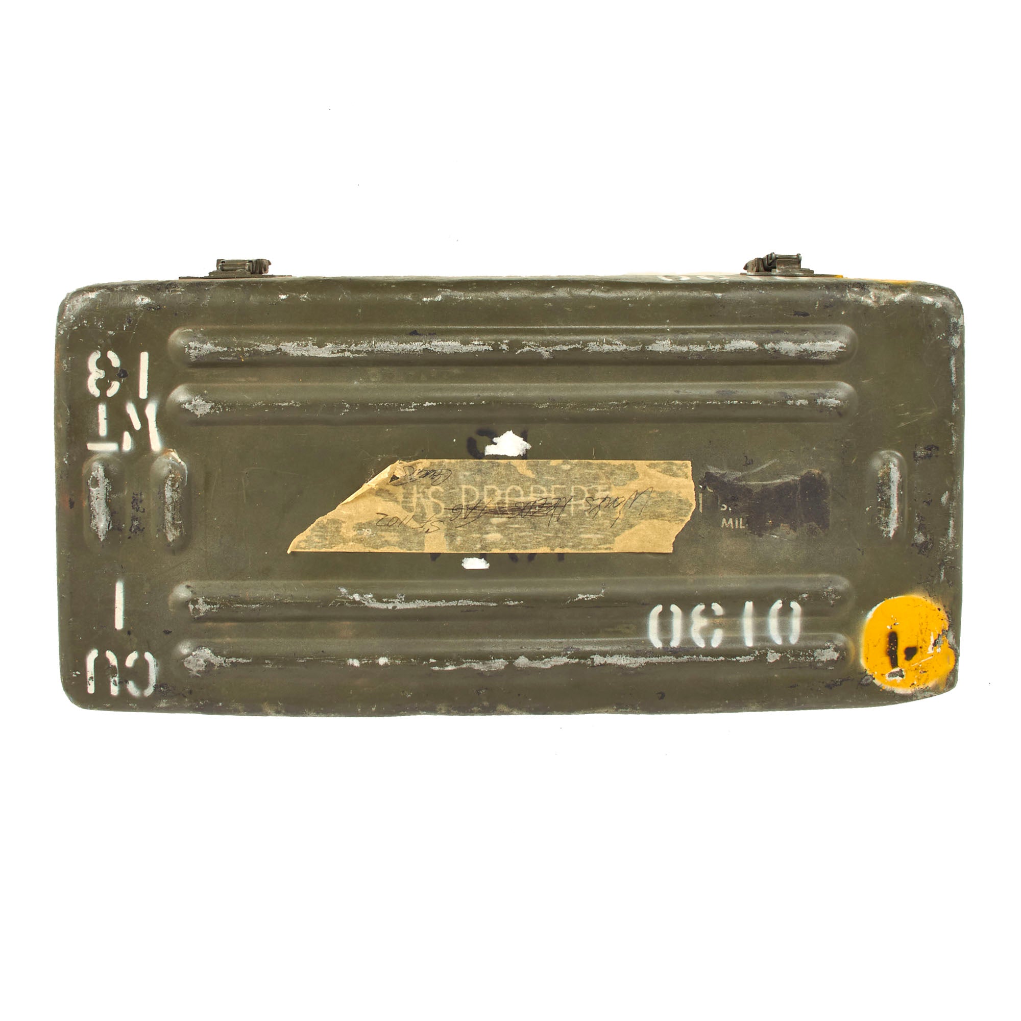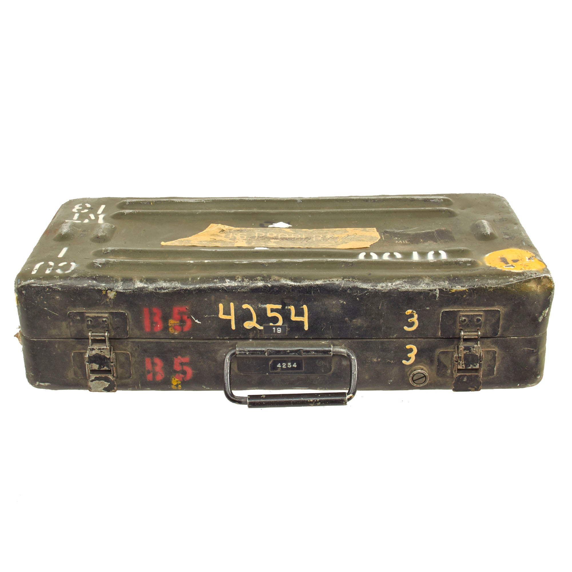 The original transit chest measures approximately 21" x 10" x 5", and is in very good condition with all present latches working, and the internal foam padding in worn condition.