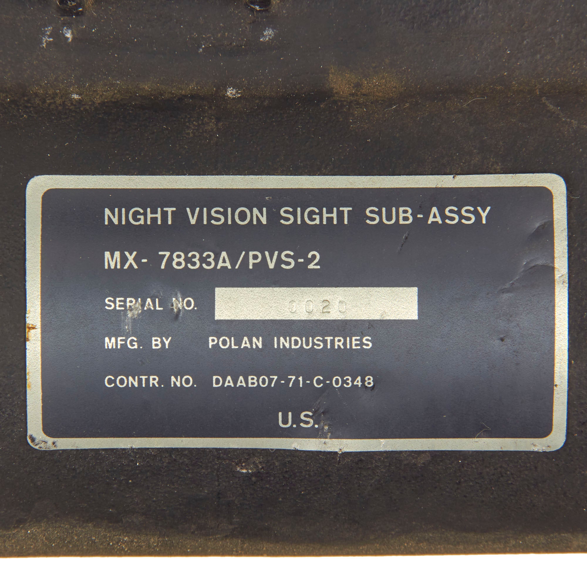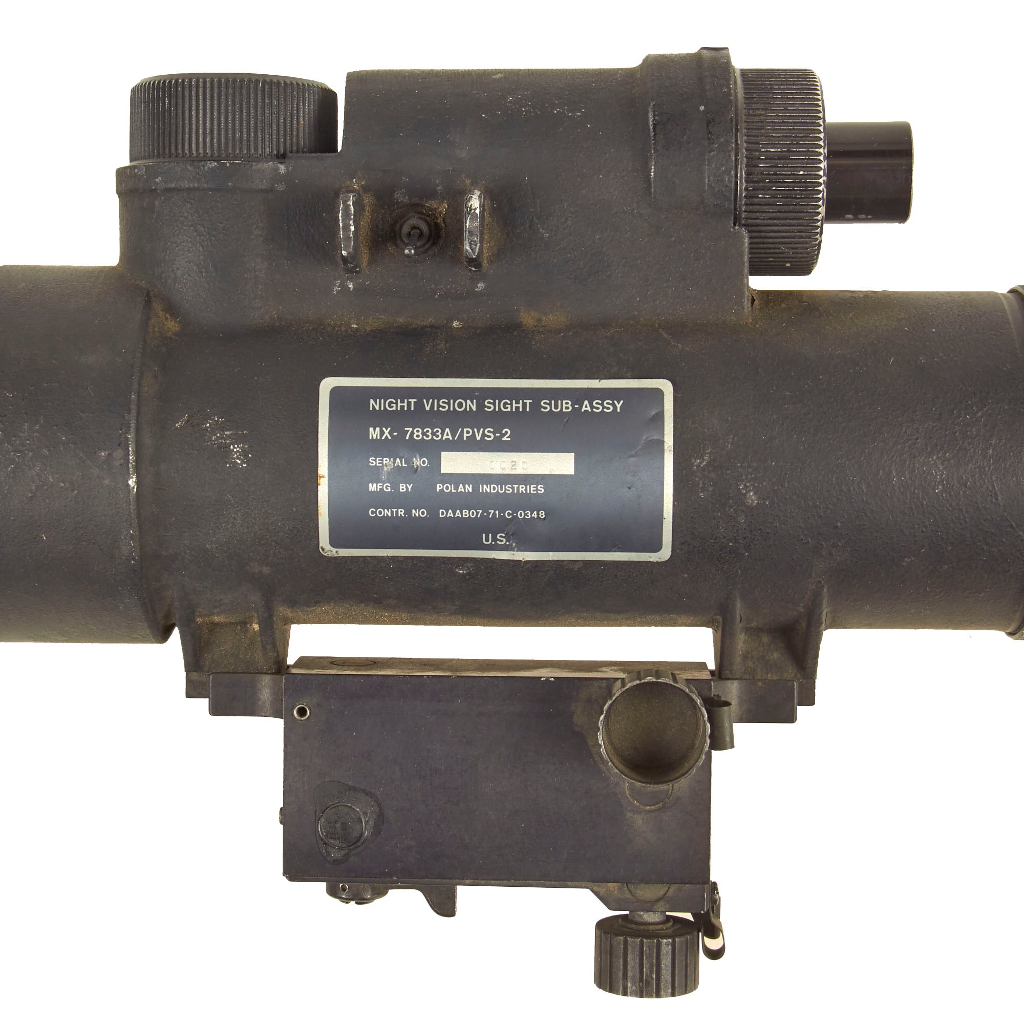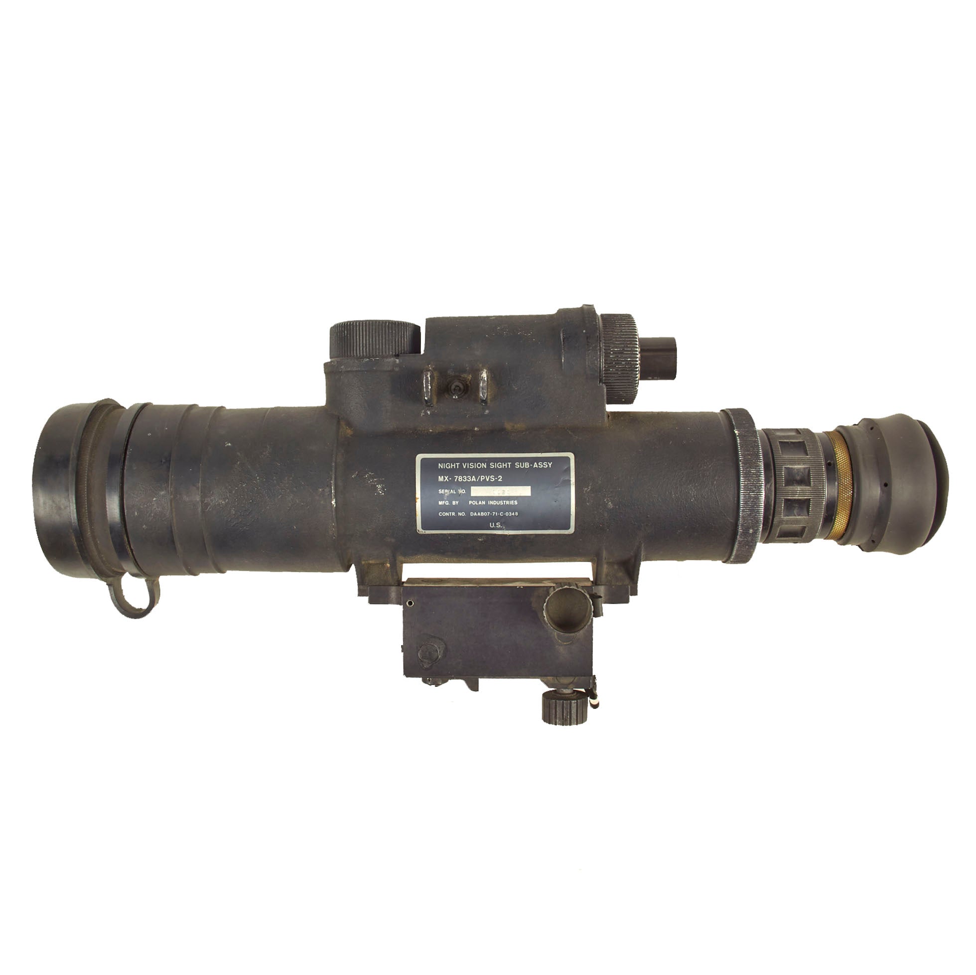 Original Item: Only One Available. The U.S. Army AN/PVS-2 is a first generation night vision device, first developed during the Vietnam war era, which quickly went through several different revisions. While very large and heavy by "modern" standards, the 6 pound passive starlight PVS 2s were considered state of the art when it came to the capabilities of U.S. troops fighting at night.