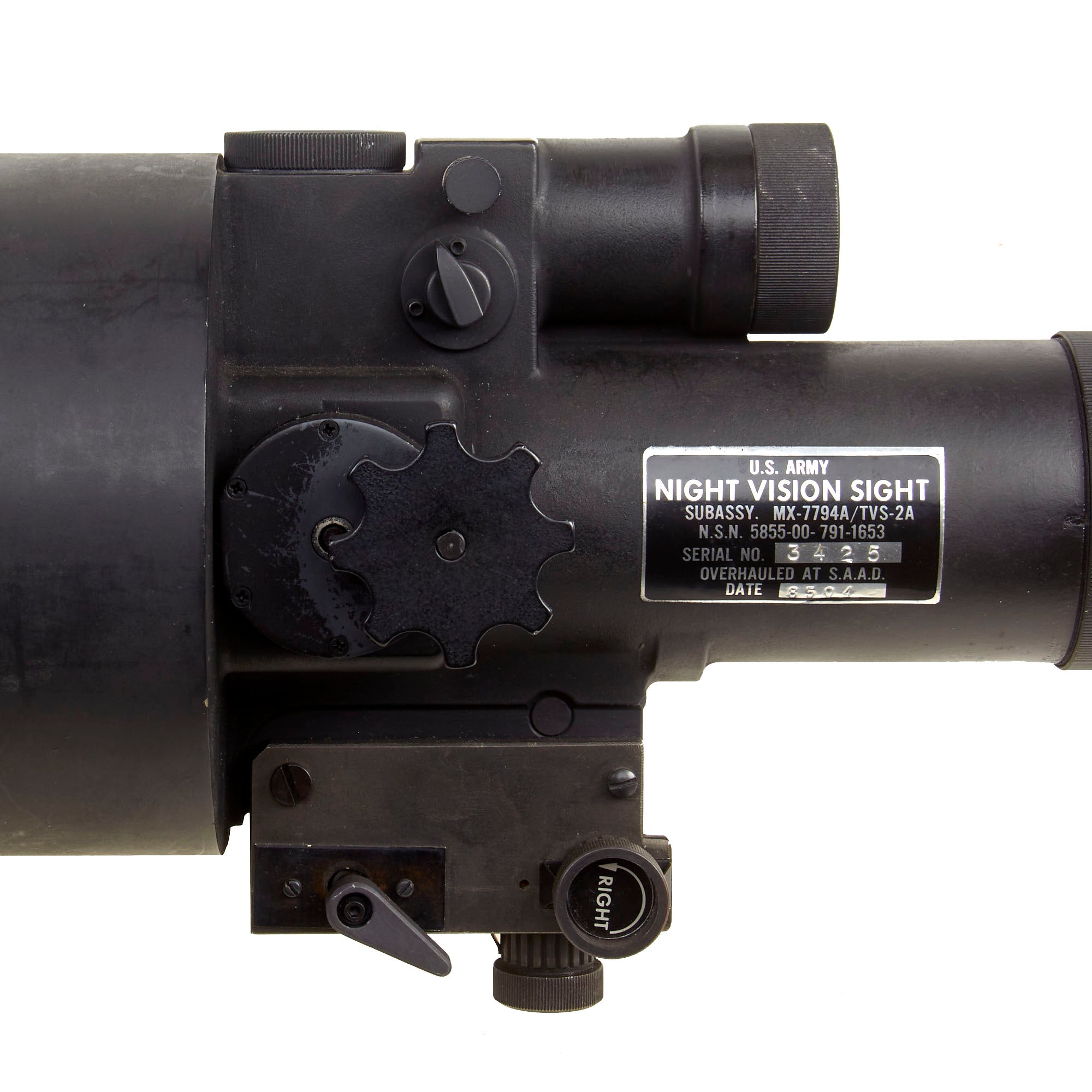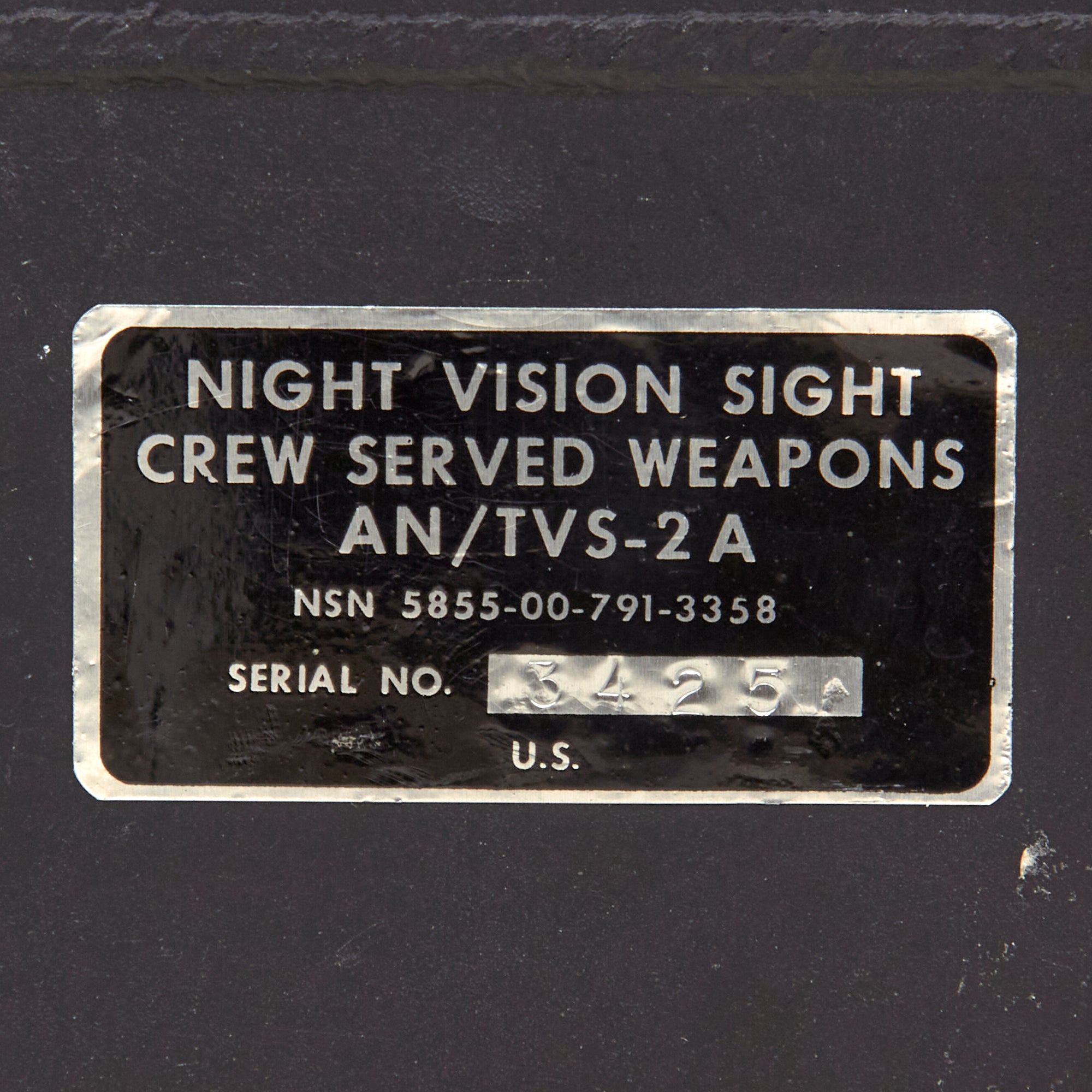 • Original Item: Only One Item Available. The U.S. Army AN/PVS-2A is a first generation night vision device, first developed during the Vietnam war era, which quickly went through several different revisions. This particular scope is version 2B. While very large and heavy by "modern" standards, the 6 pound passive starlight PVS 2 were considered state of the art when it came to the capabilities of U.S. troops fighting at night.